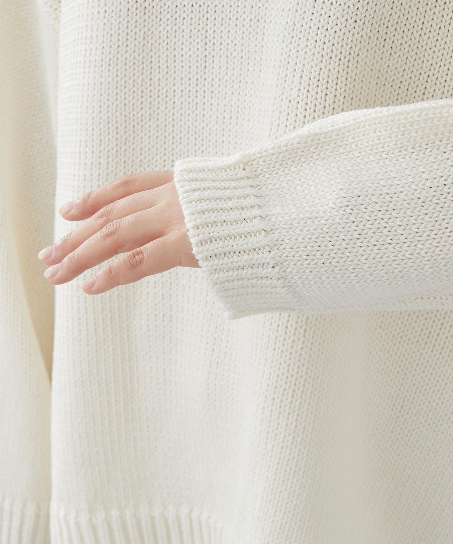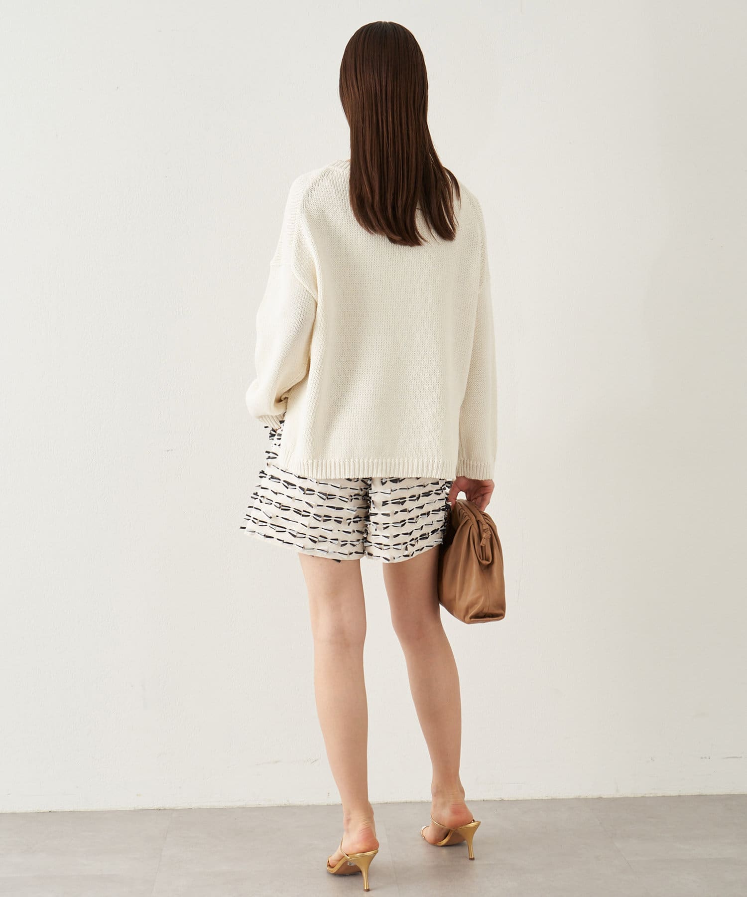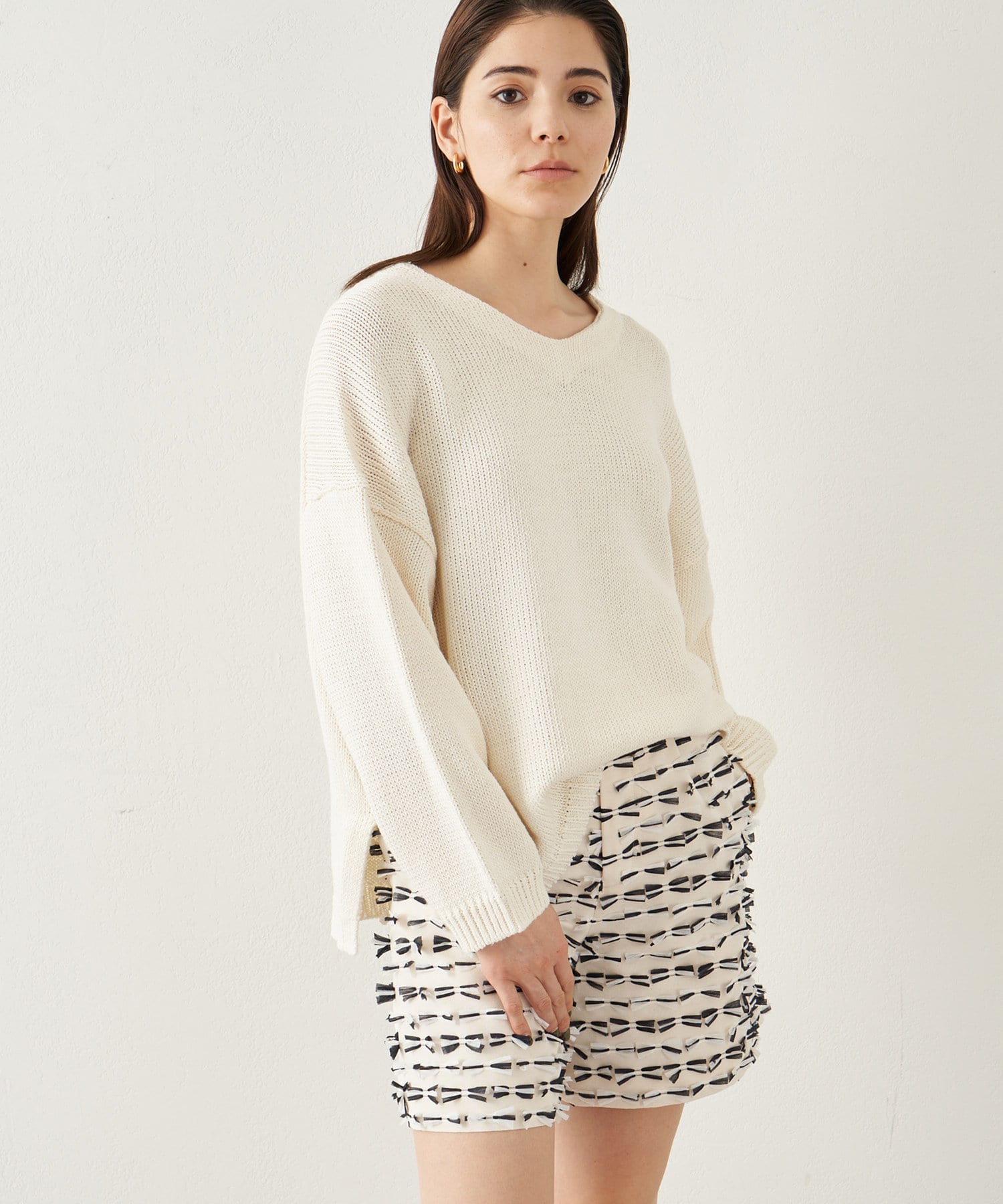 ■すっきりとしたパンツや細身のスカートに合わせてニットの緩さを引き立てるスタイリングもおすすめ。