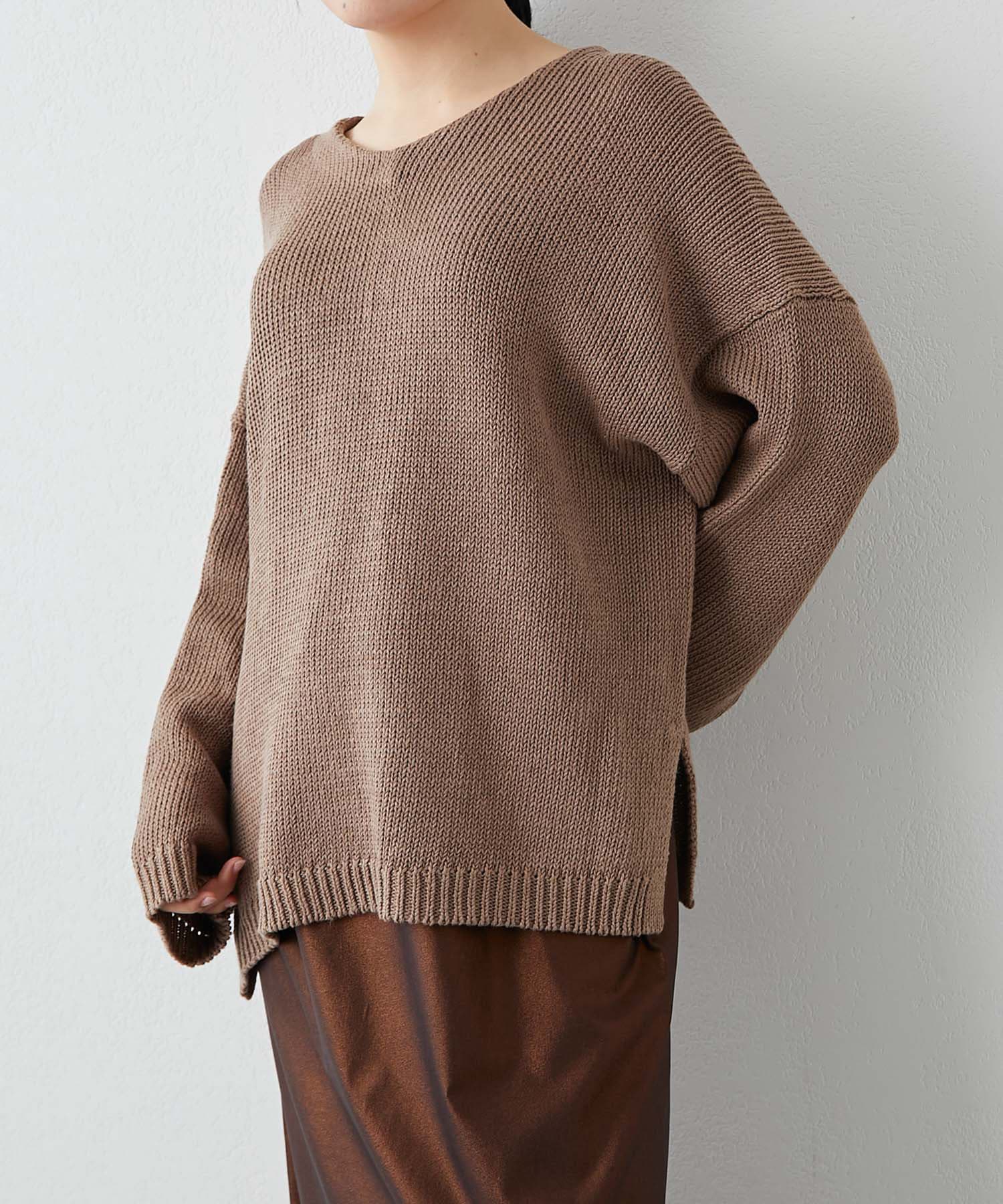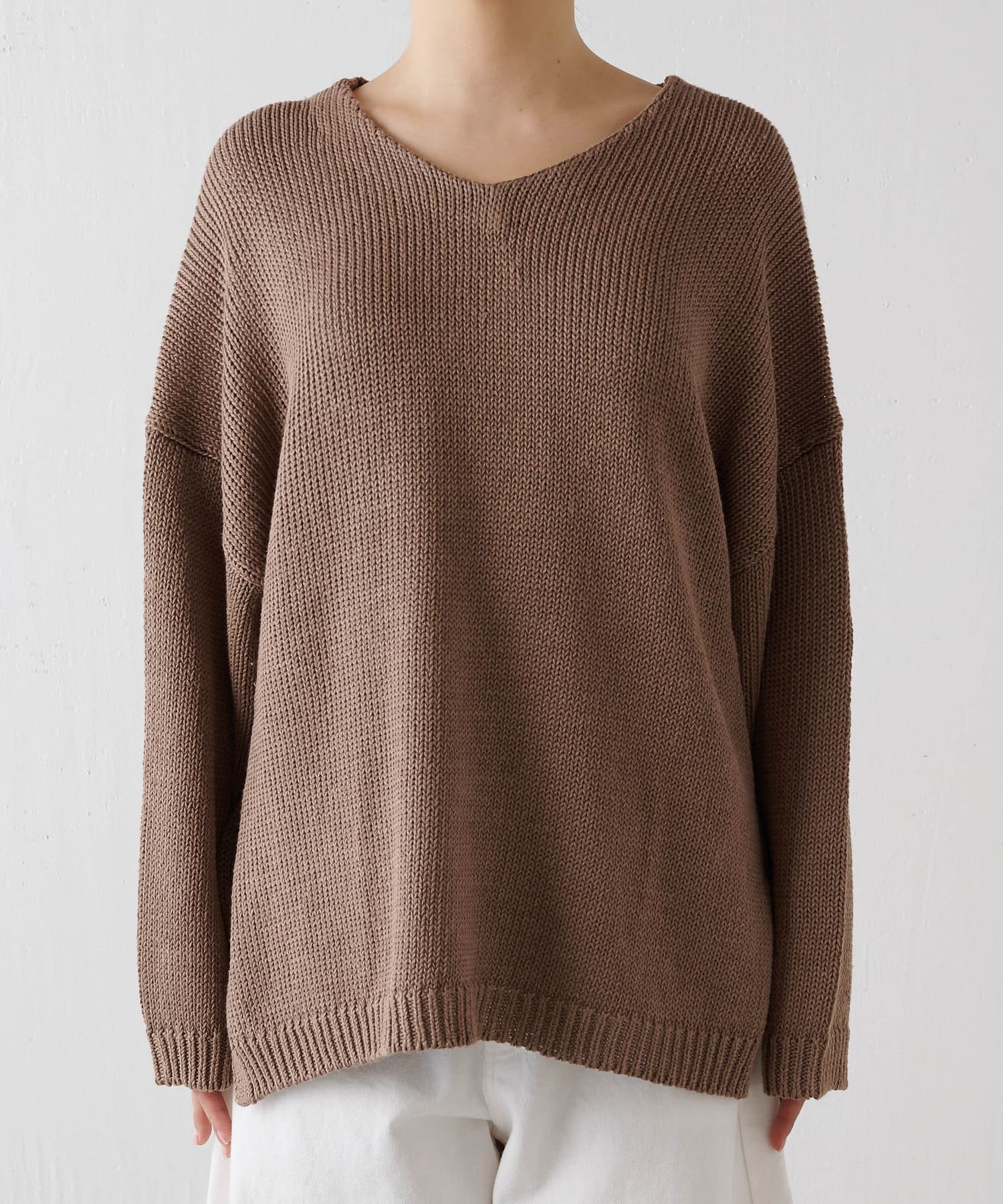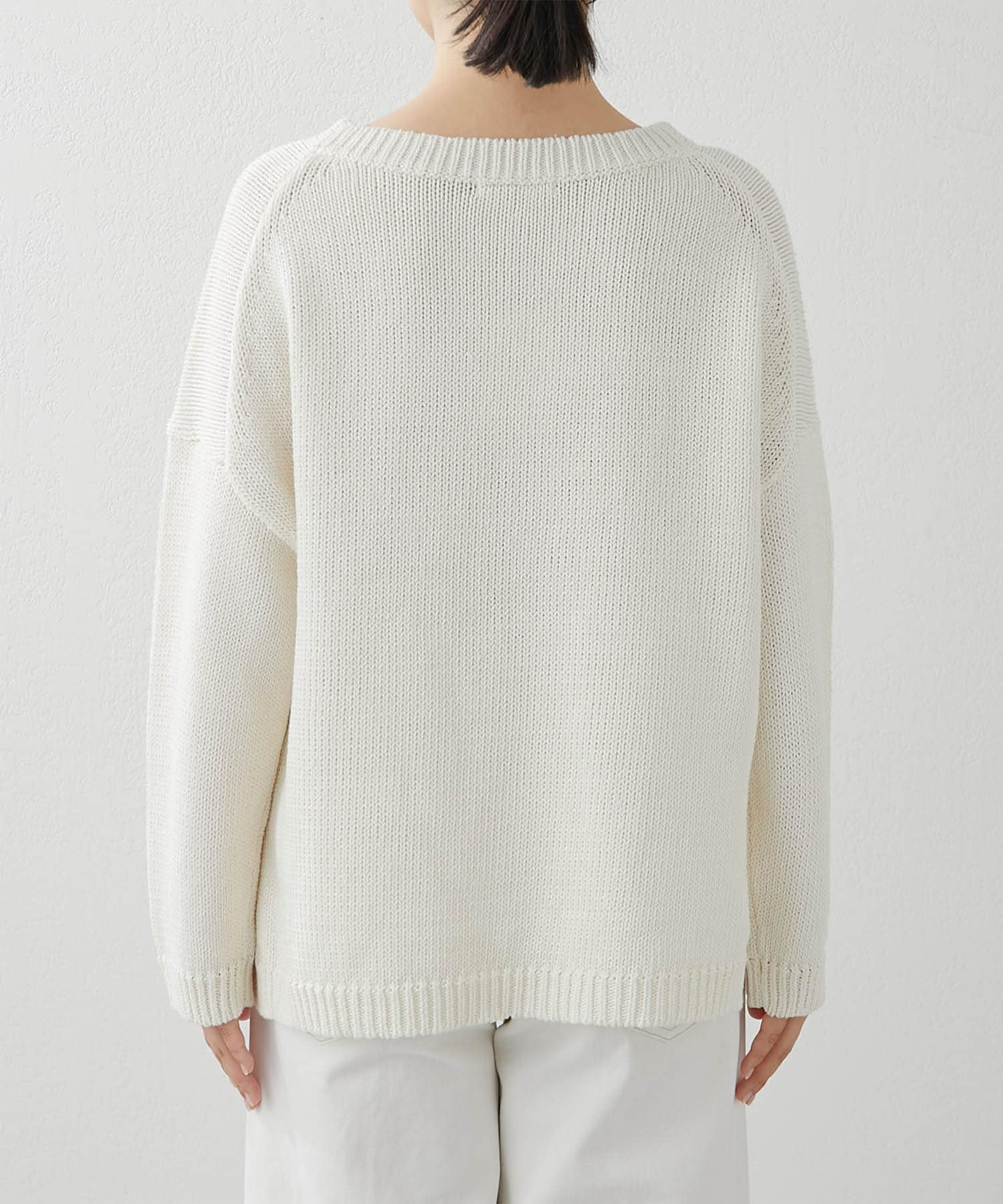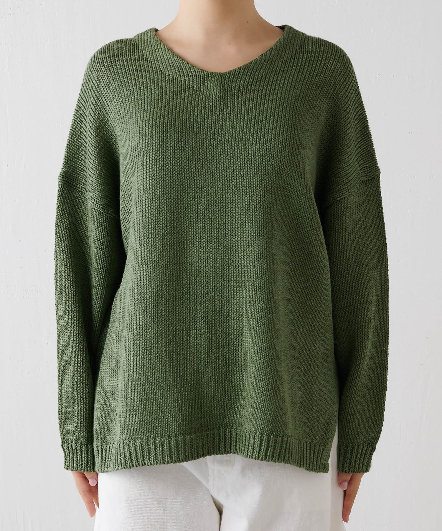 ■ゆったりとしたシルエットながら、浅めのVネックがネックラインをきれいに演出。