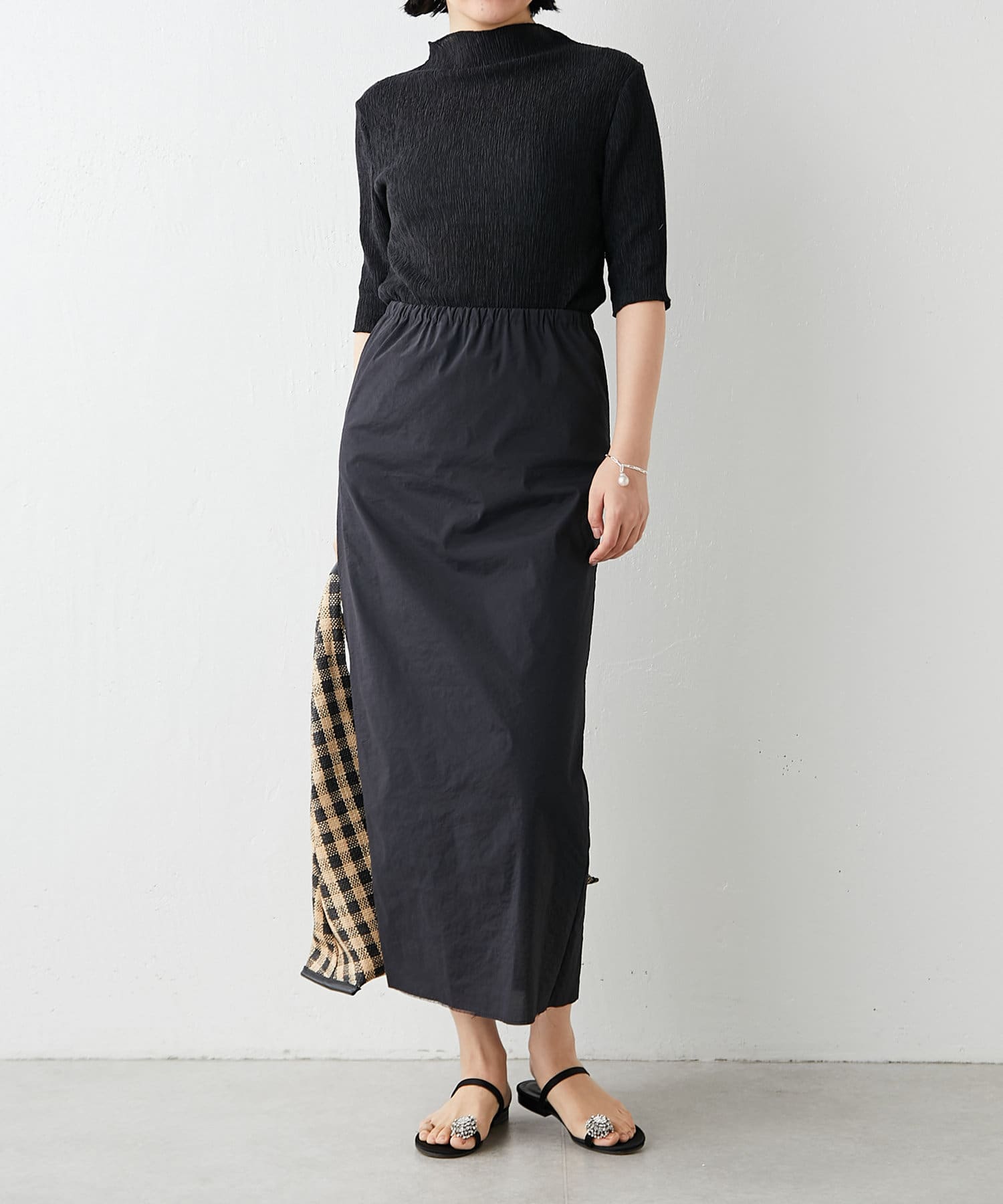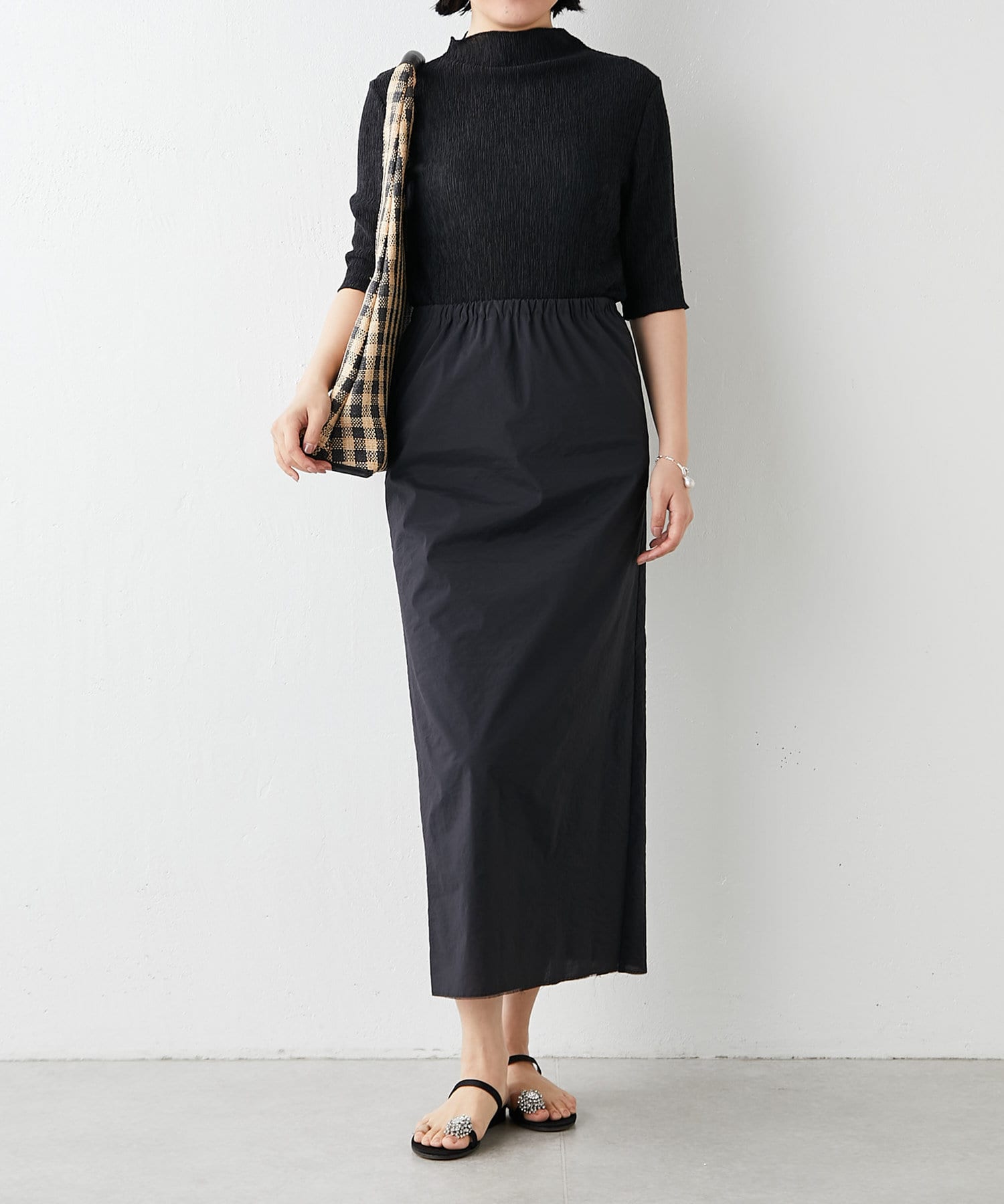 ■身体のラインを拾いすぎずにすっきりと仕上げた上品なシルエット。