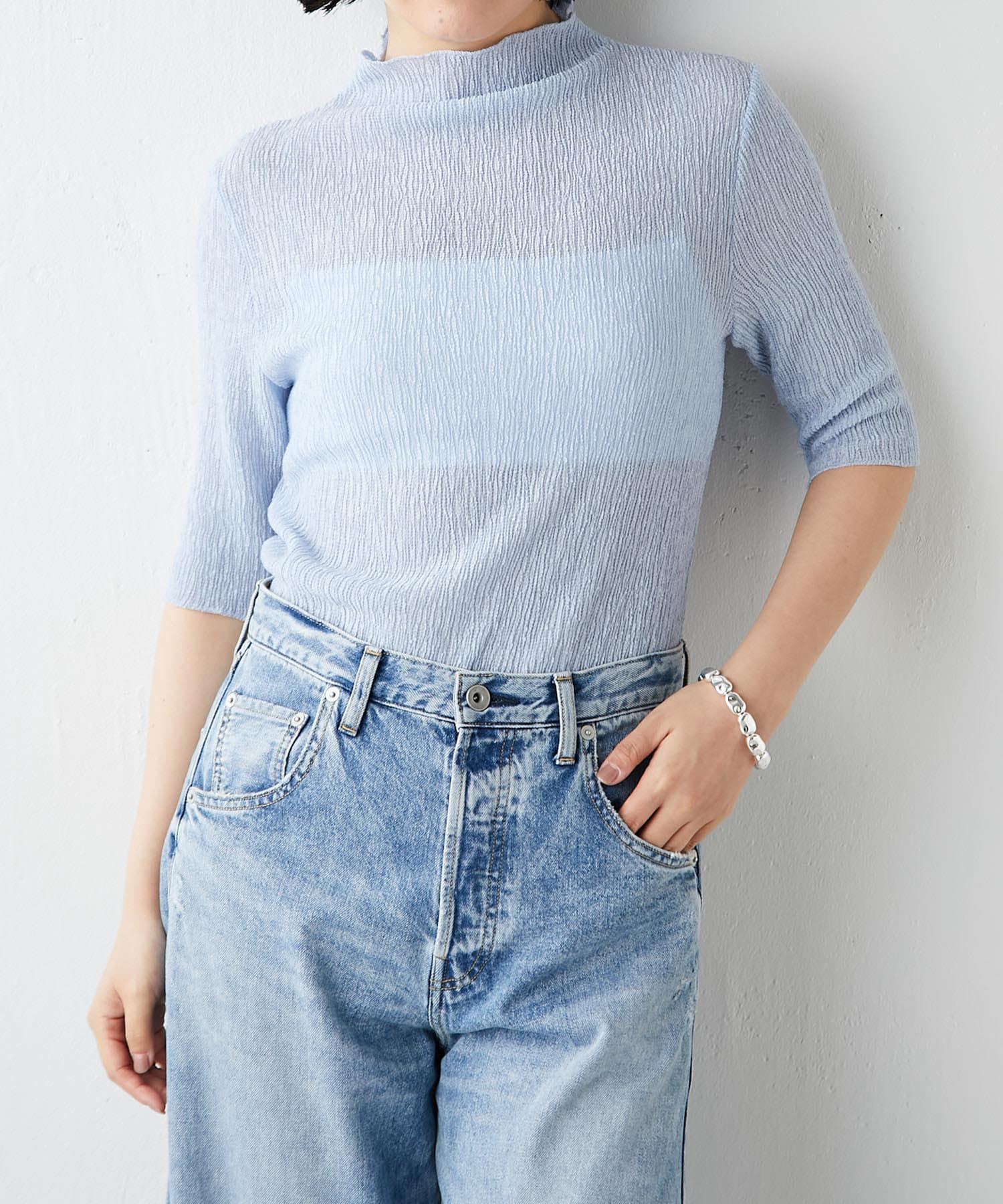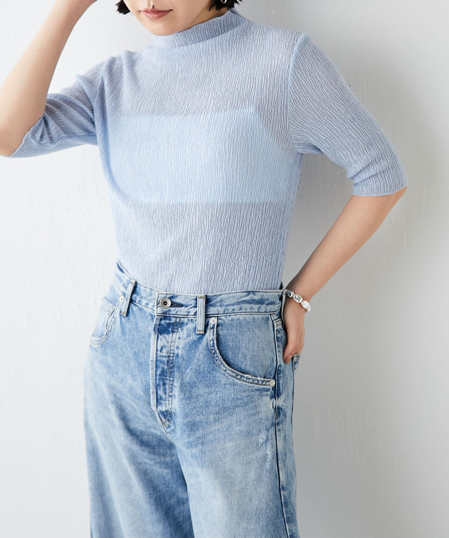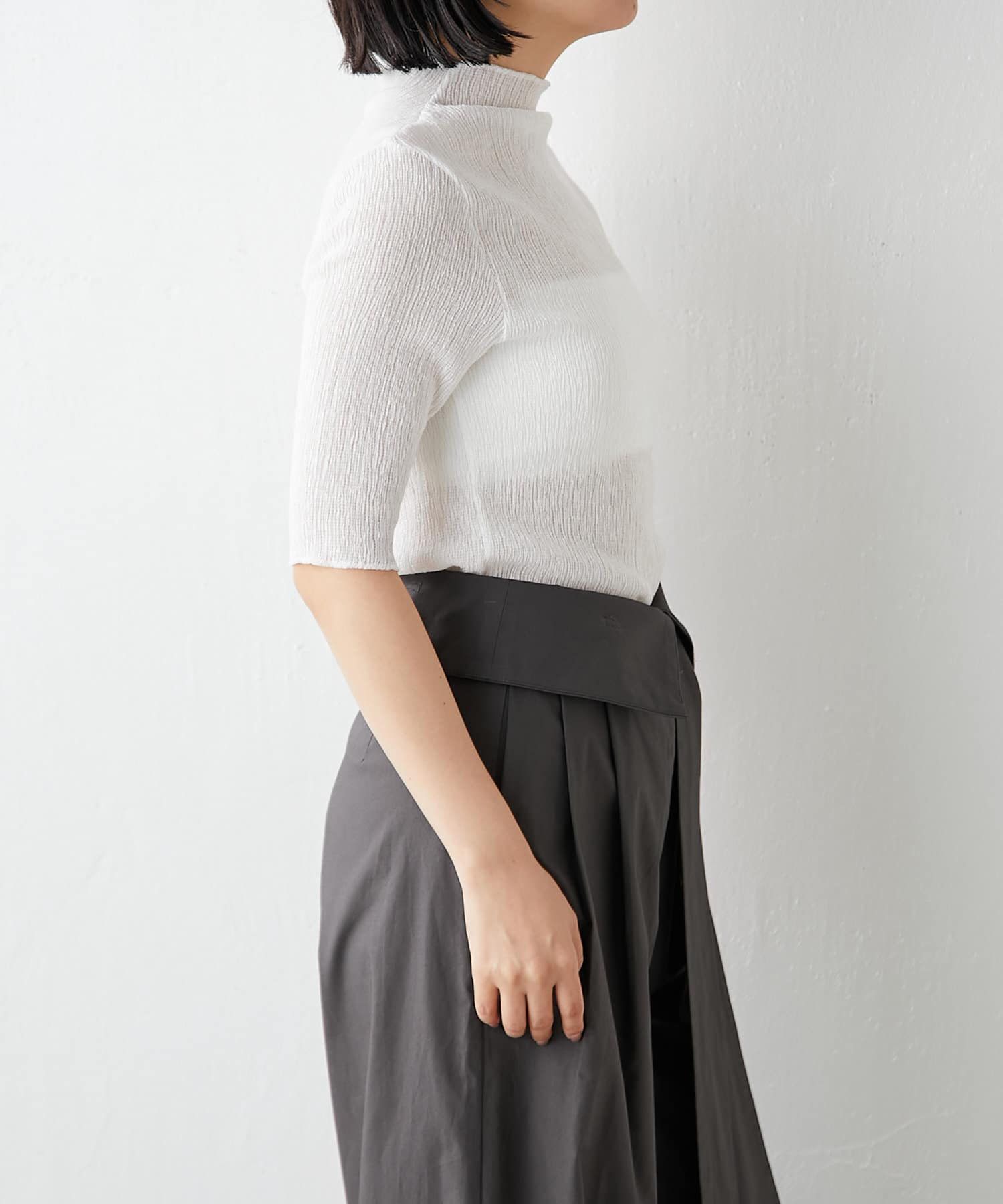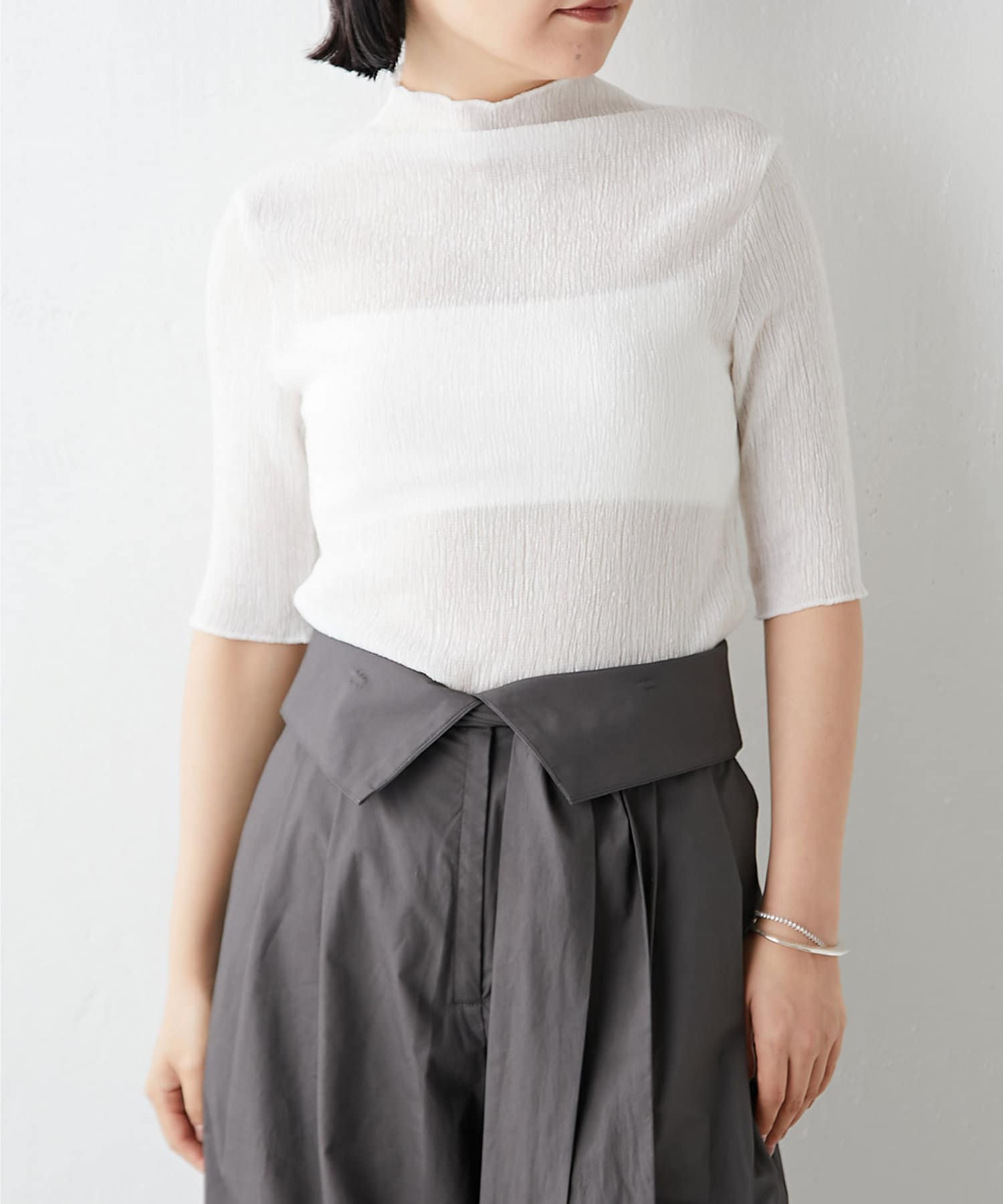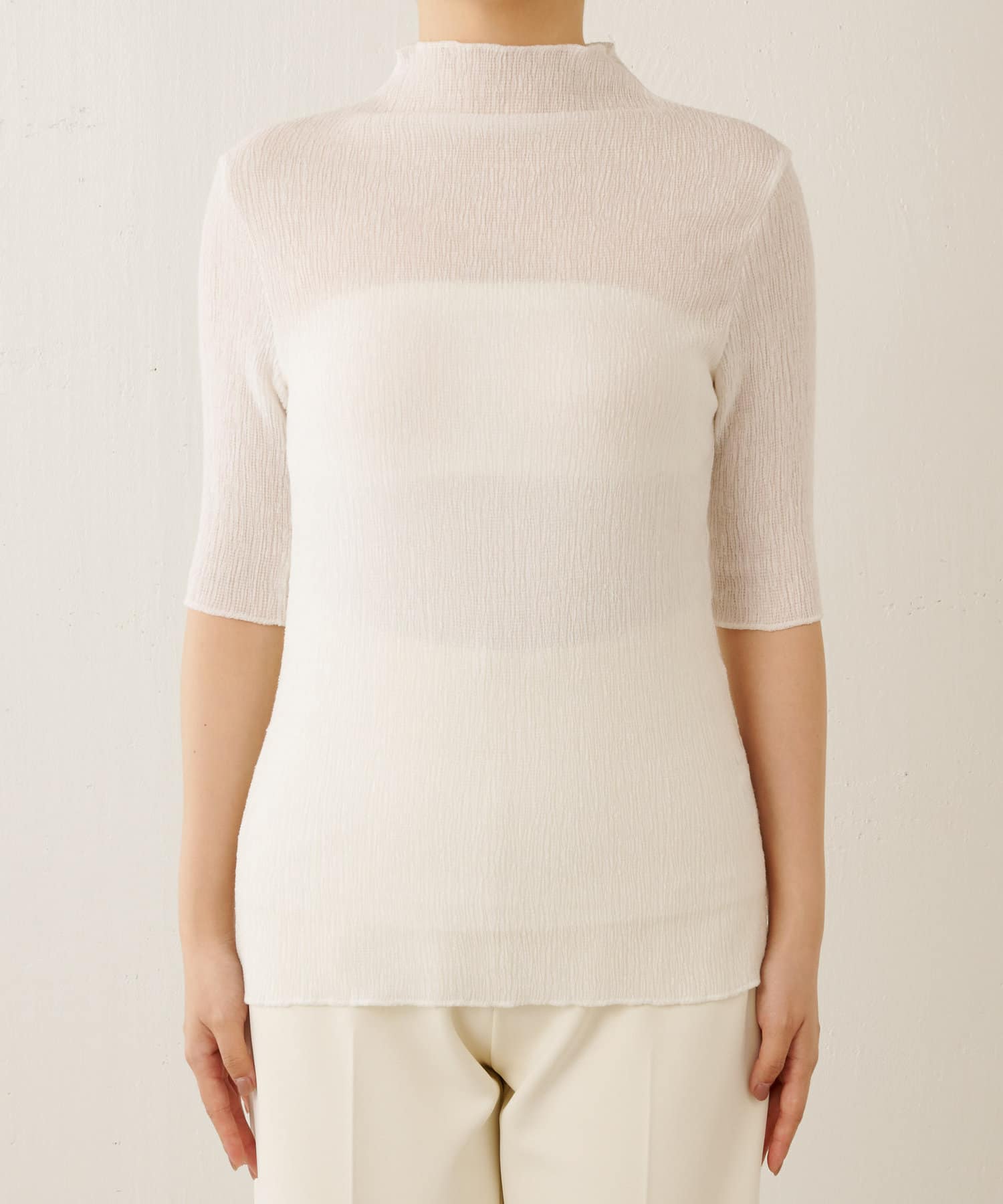 旬の着こなしを上品に楽しめる、大人の半袖シアートップス