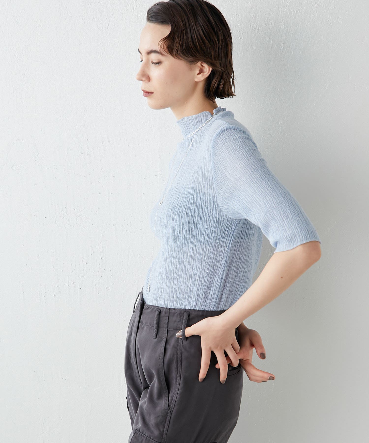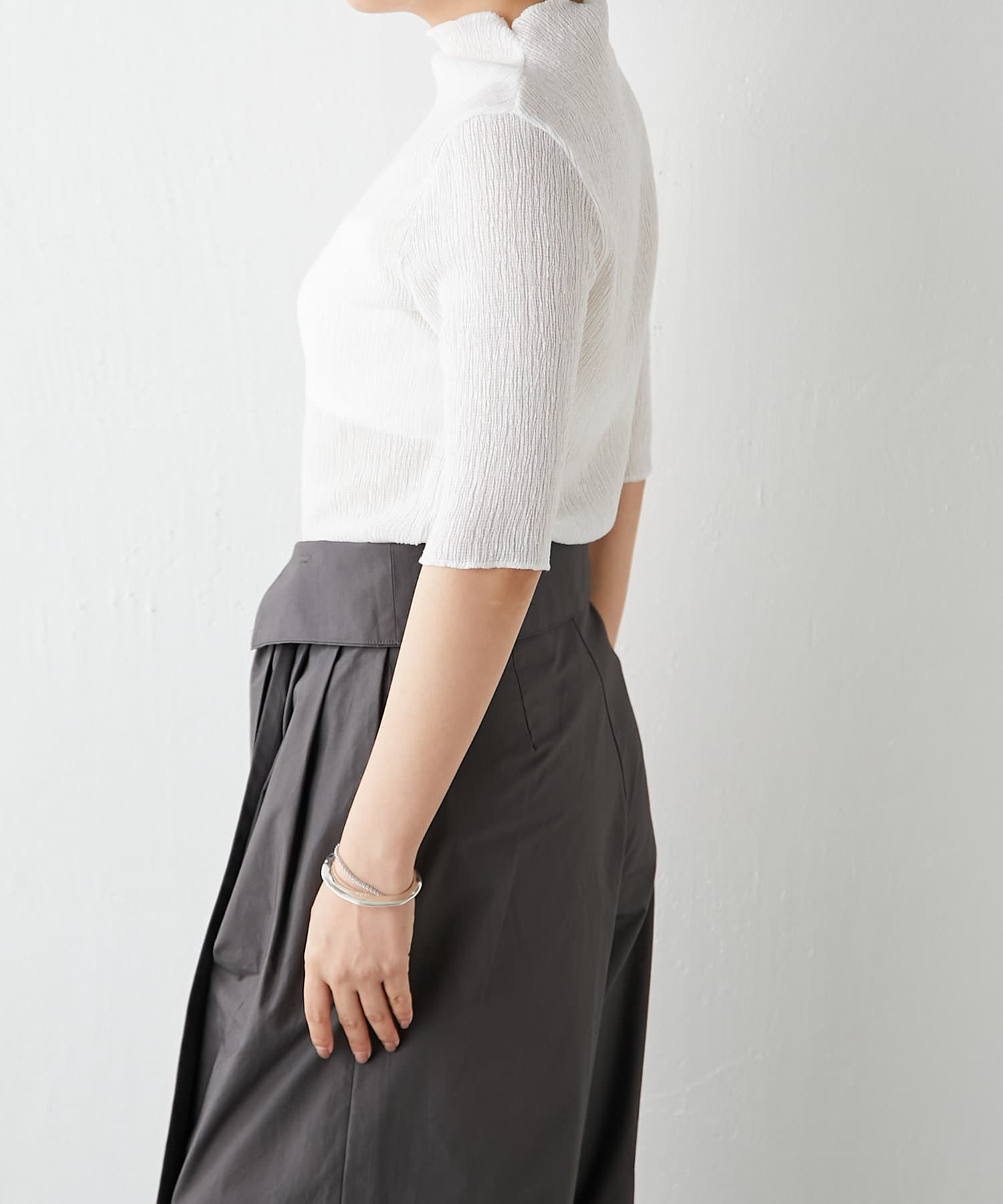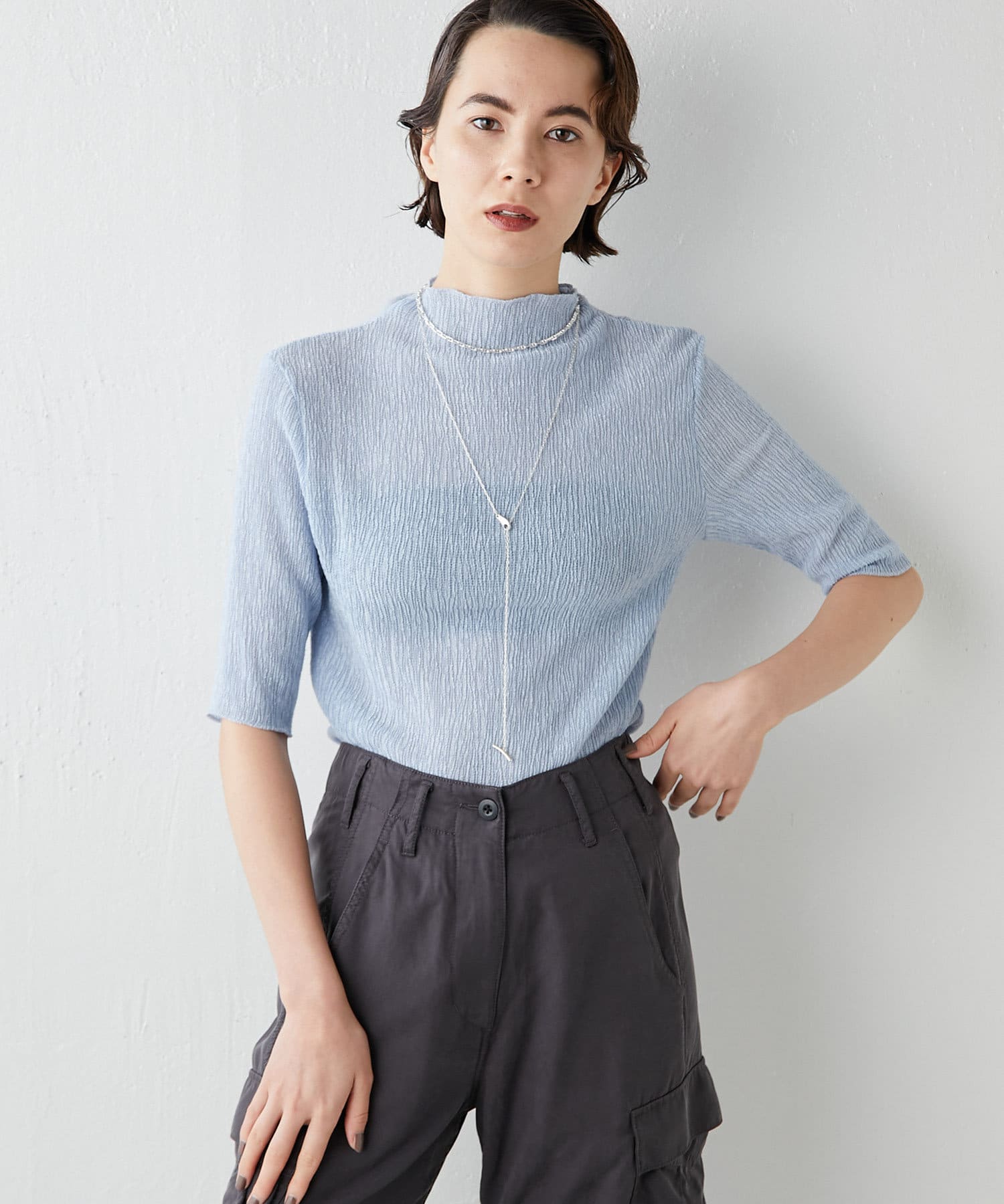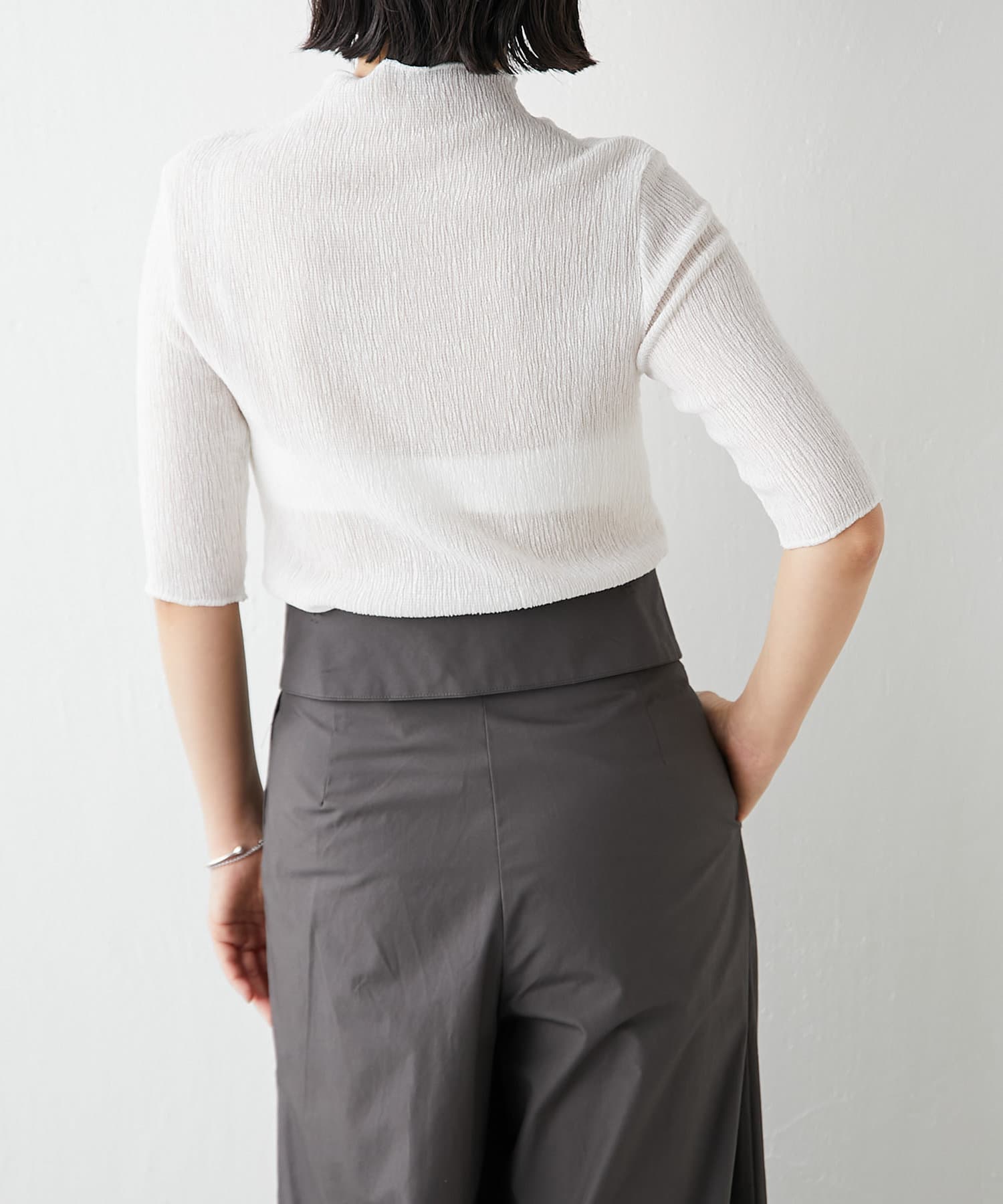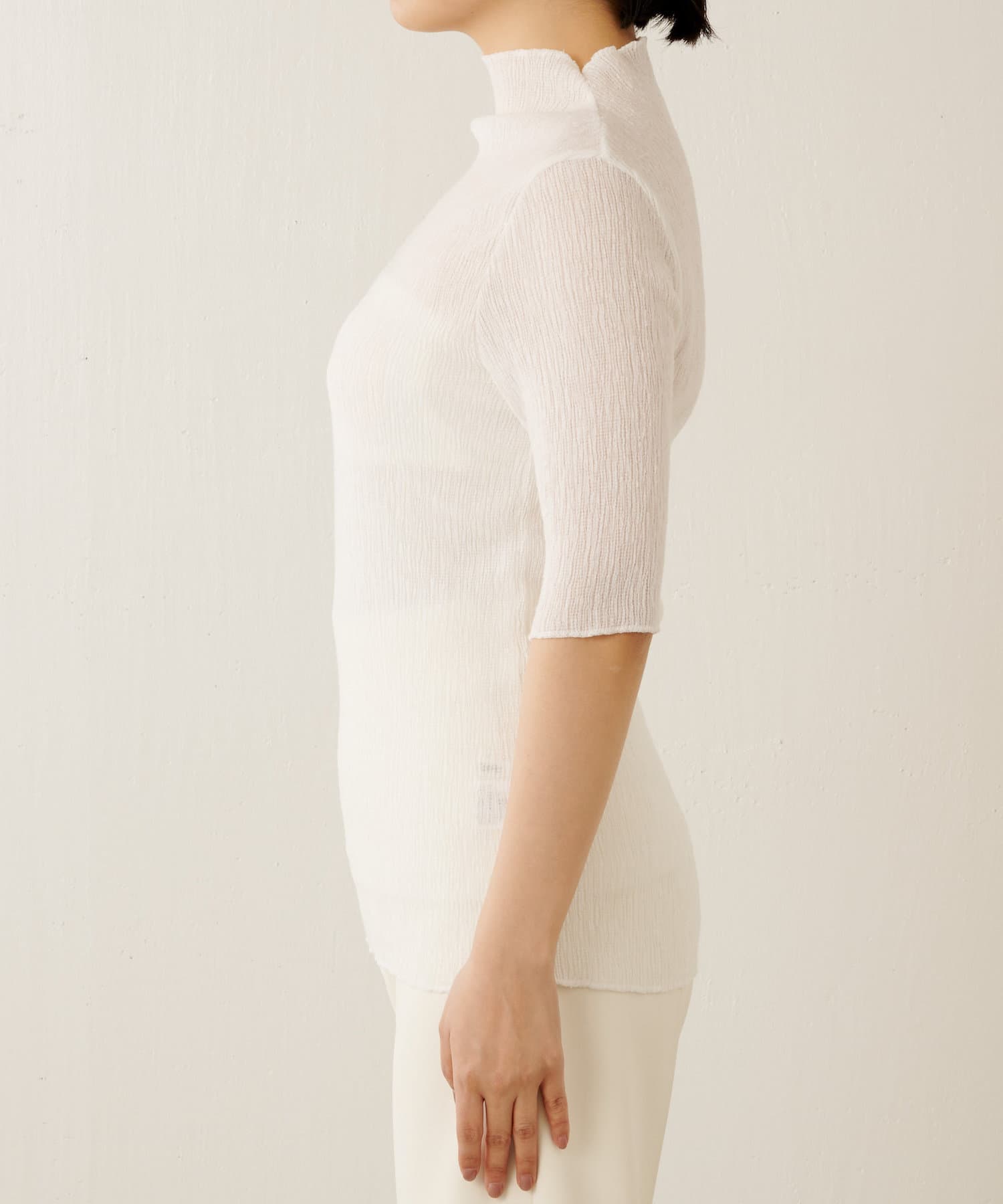 旬の着こなしを上品に楽しめる、大人の半袖シアートップス