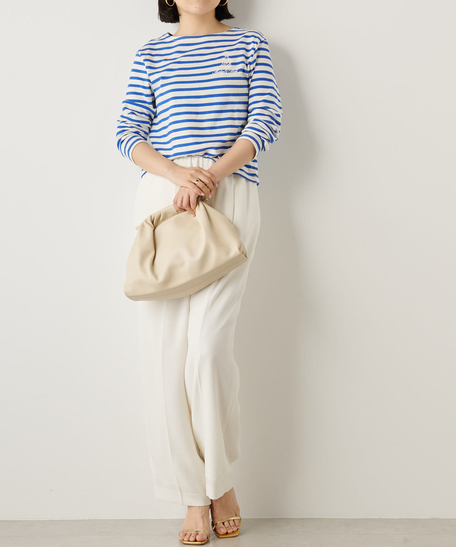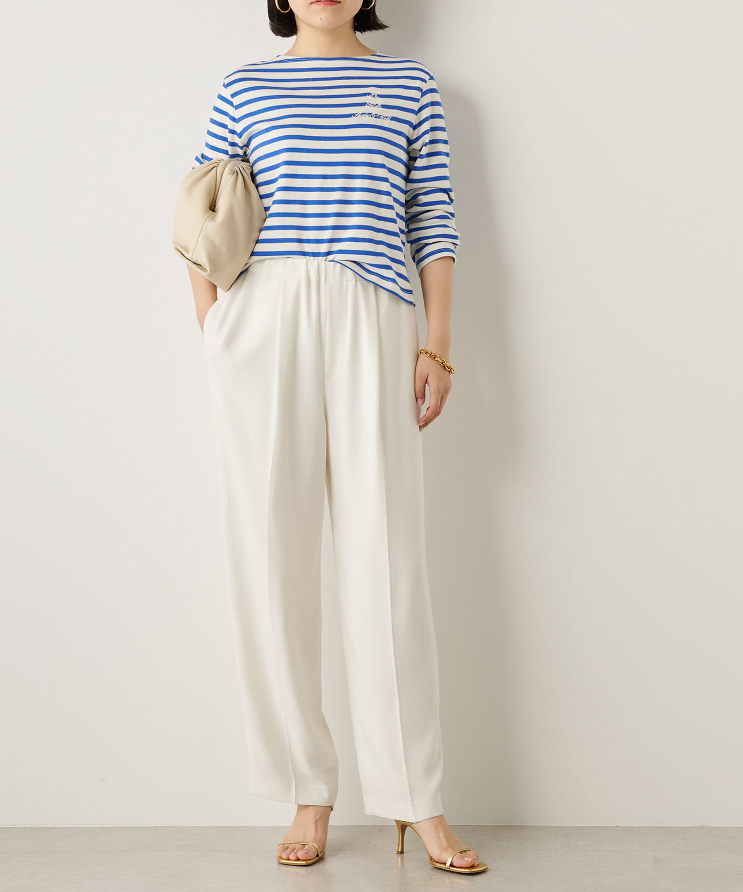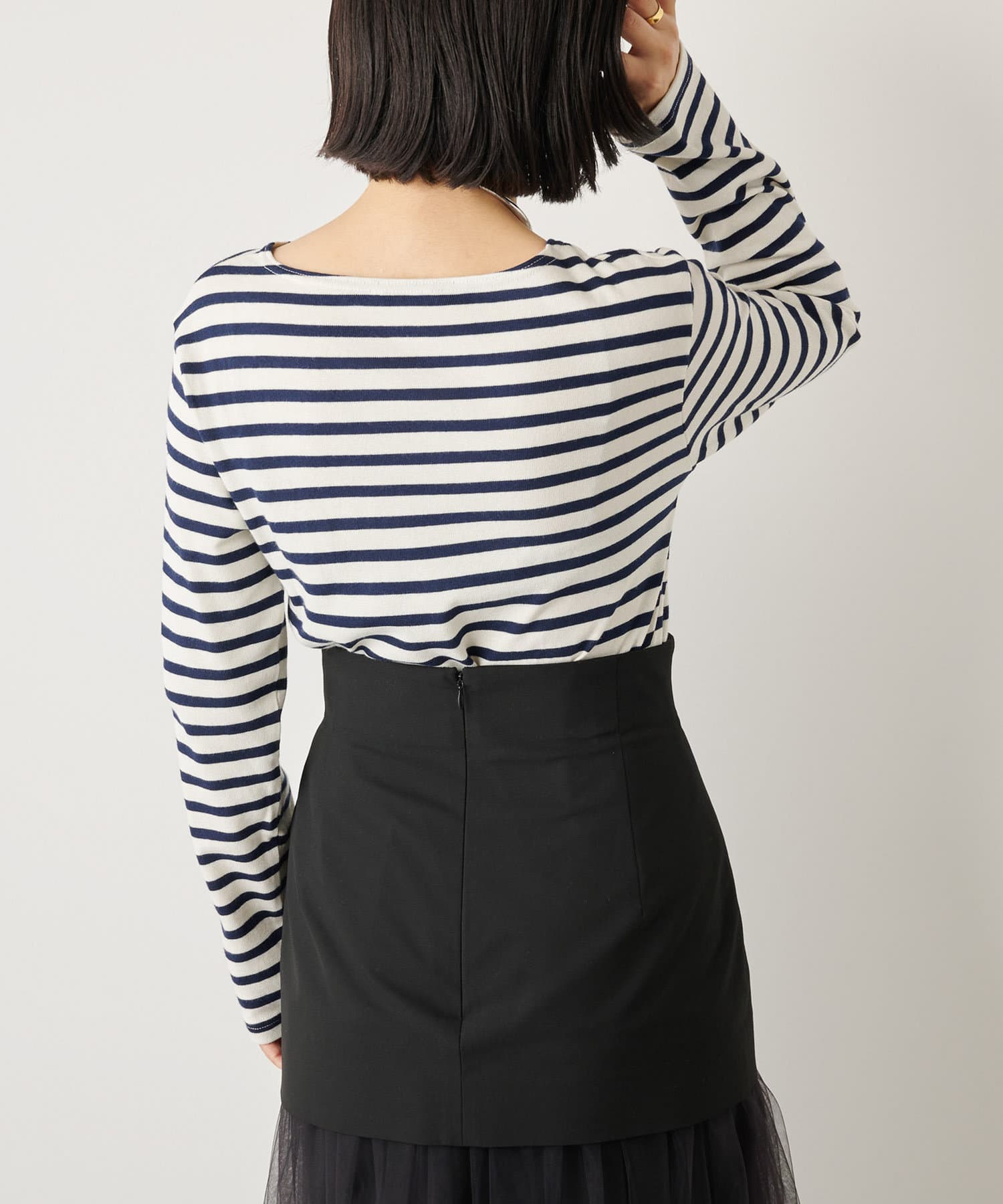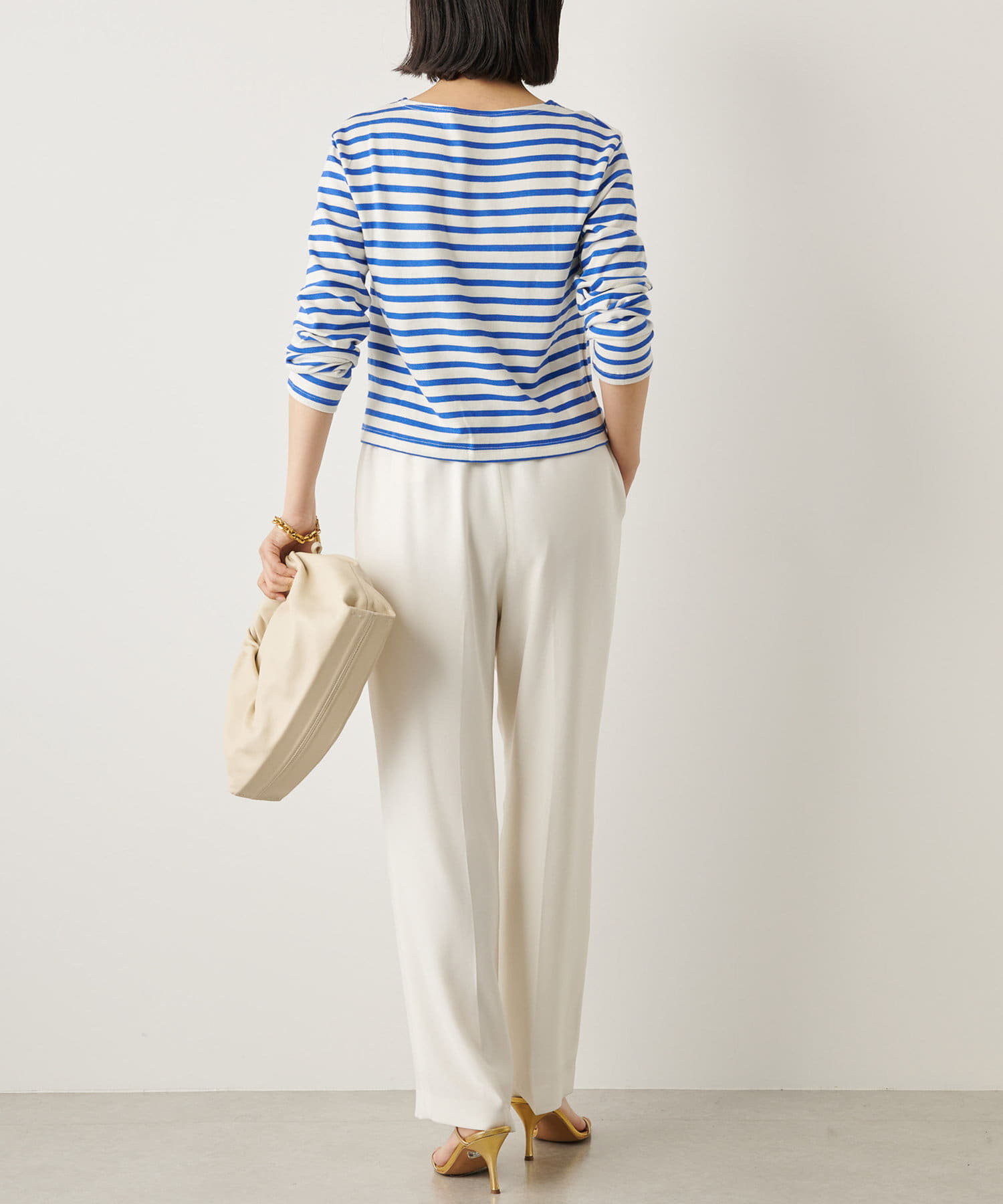 ■やや横に開いたネックラインが顔回りをすっきりと見せ、軽やかな抜け感を演出。