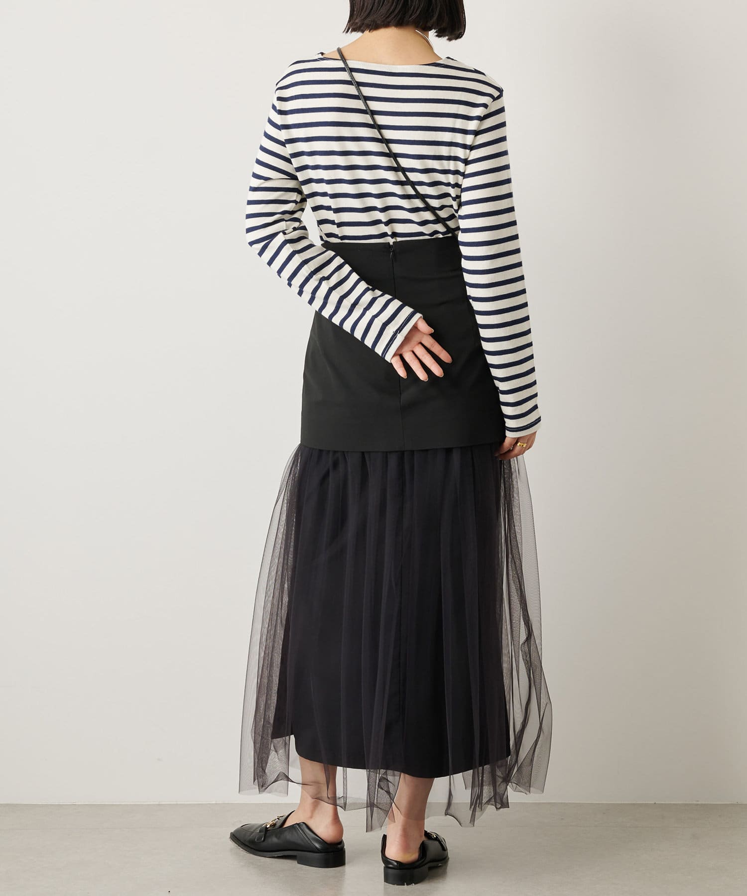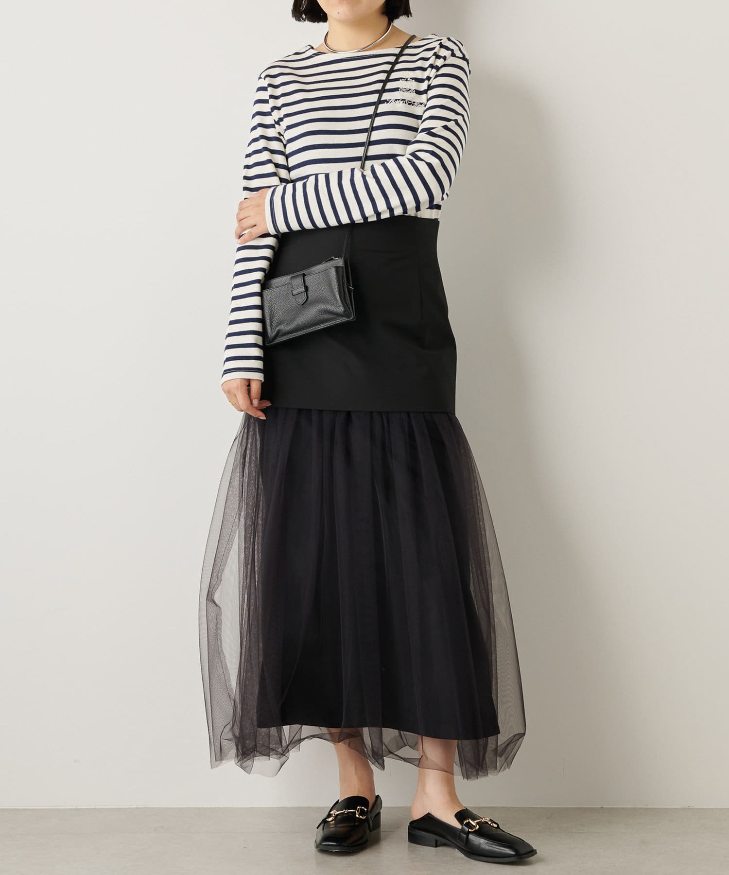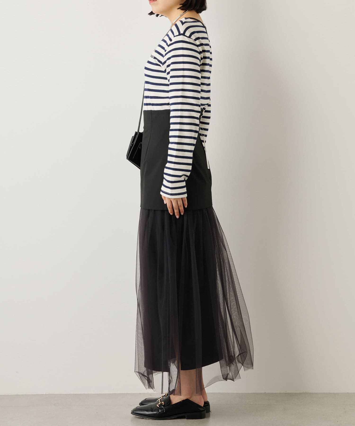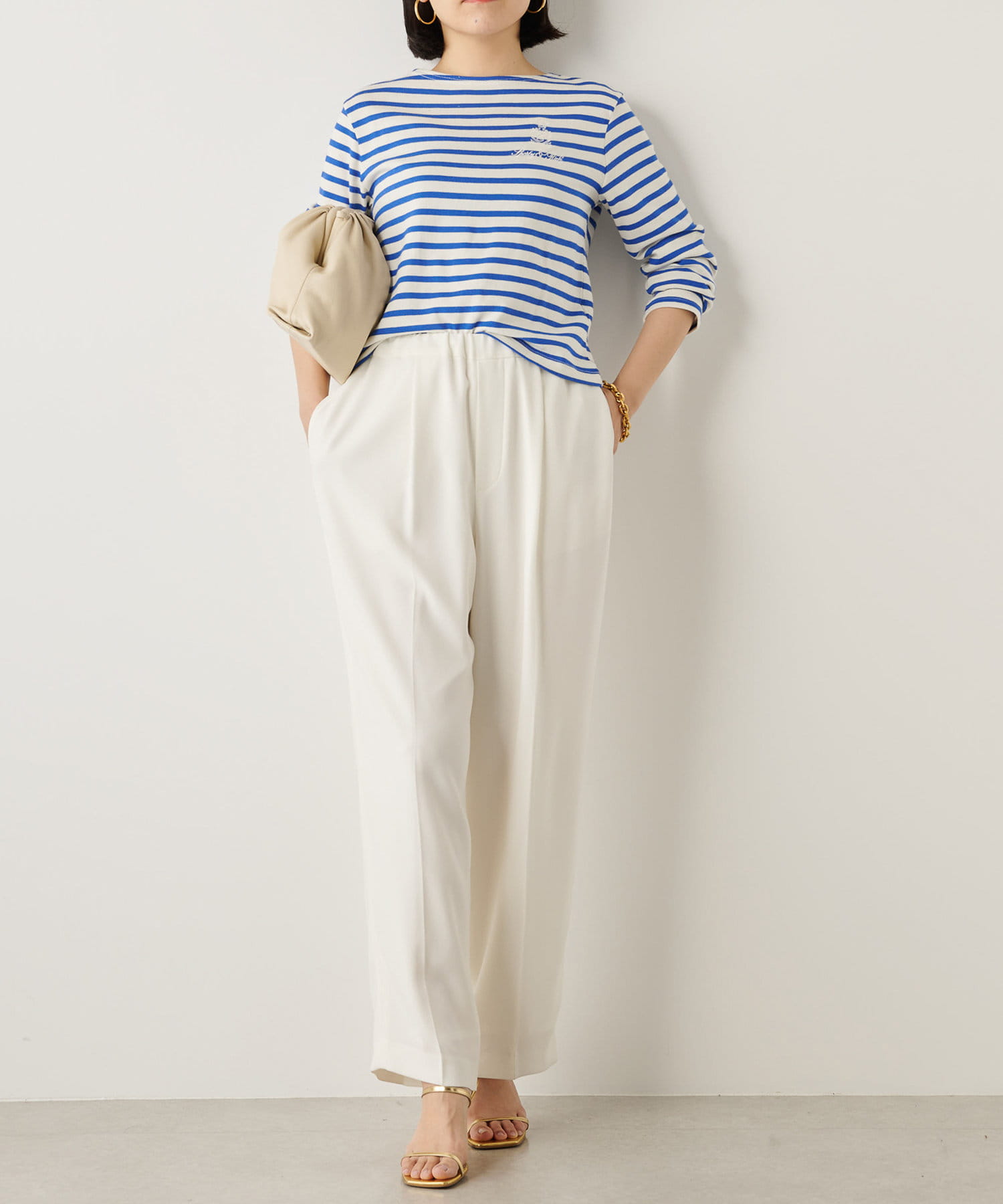 ■やや横に開いたネックラインが顔回りをすっきりと見せ、軽やかな抜け感を演出。