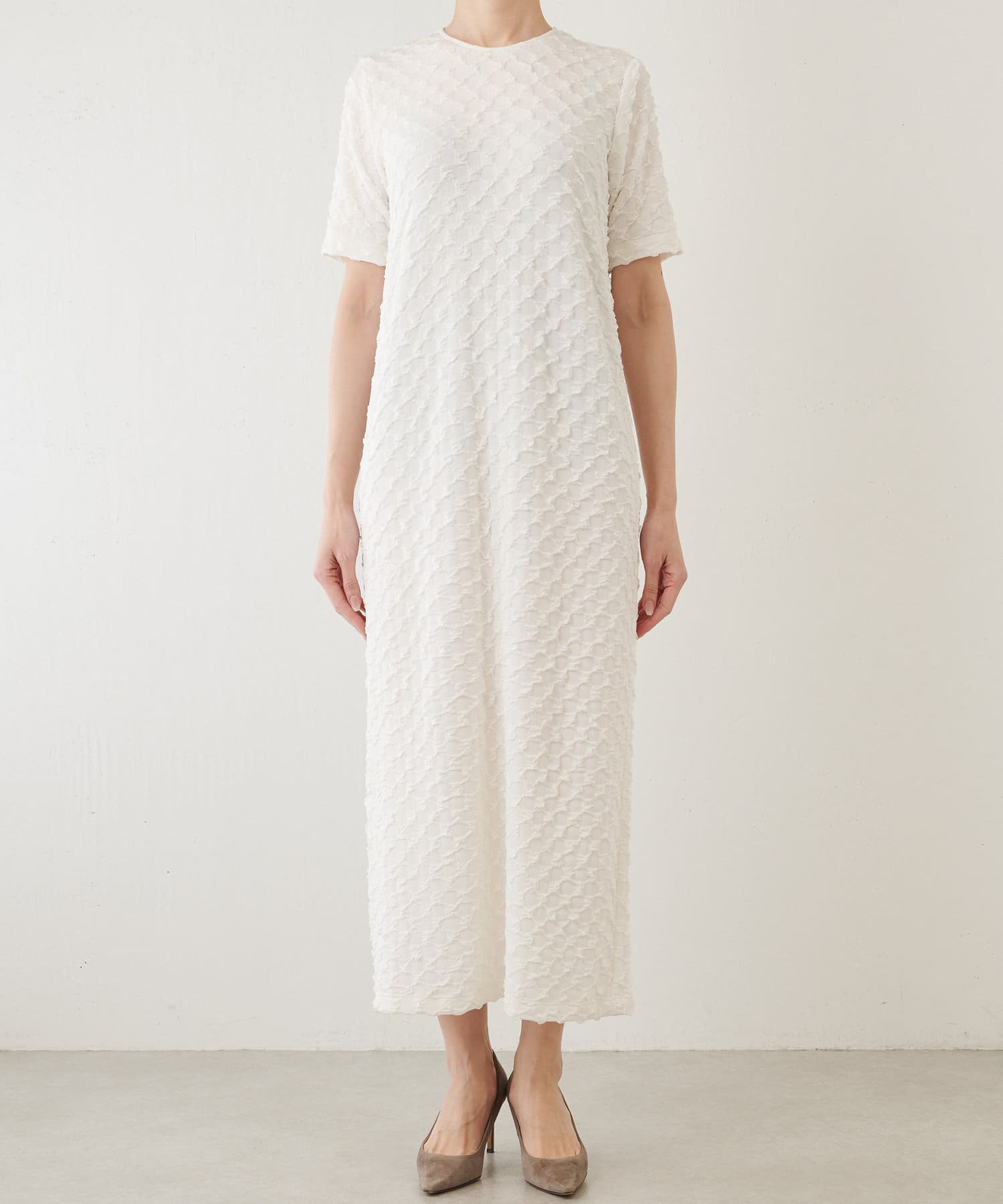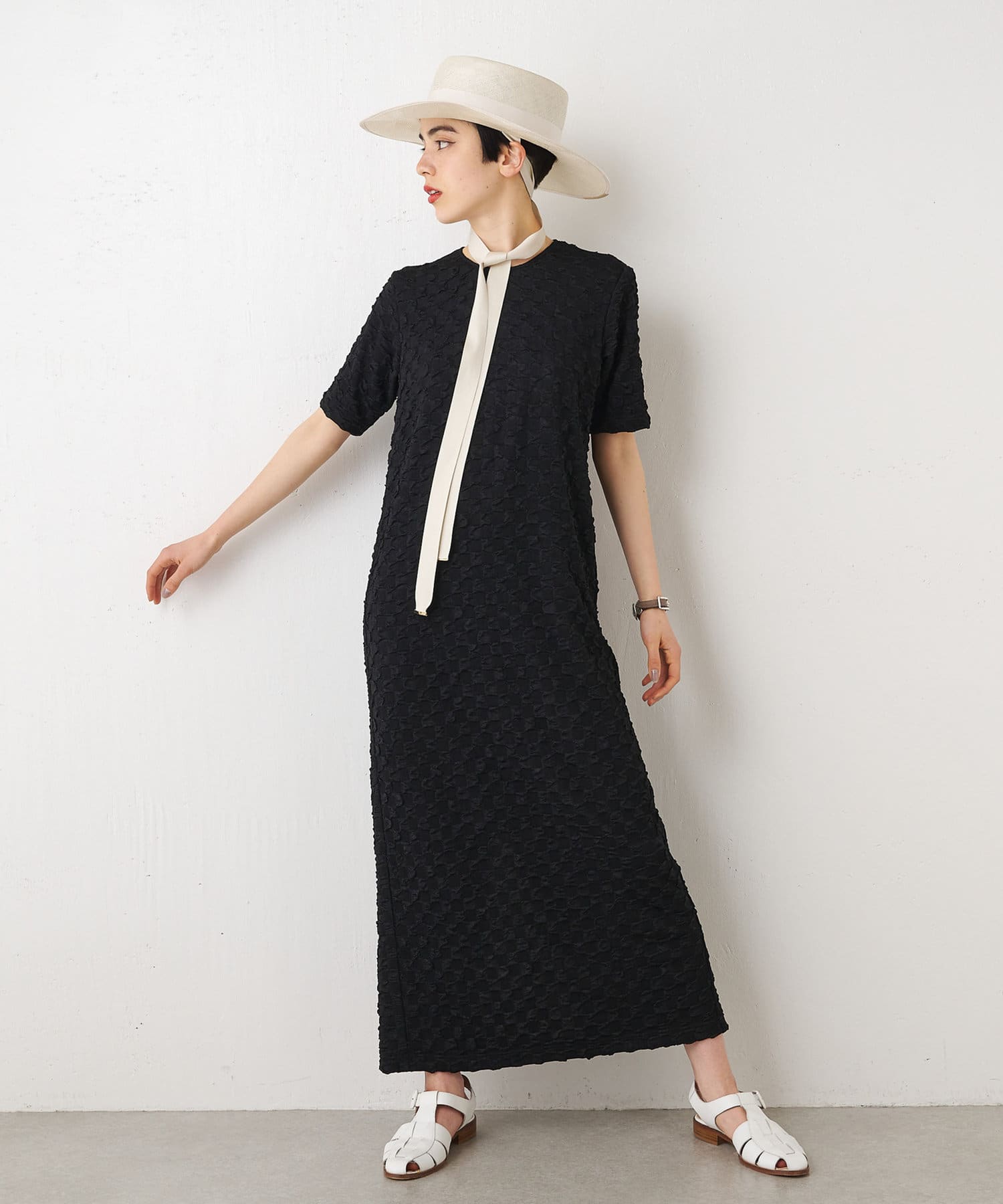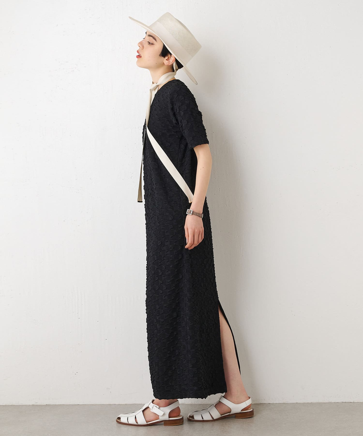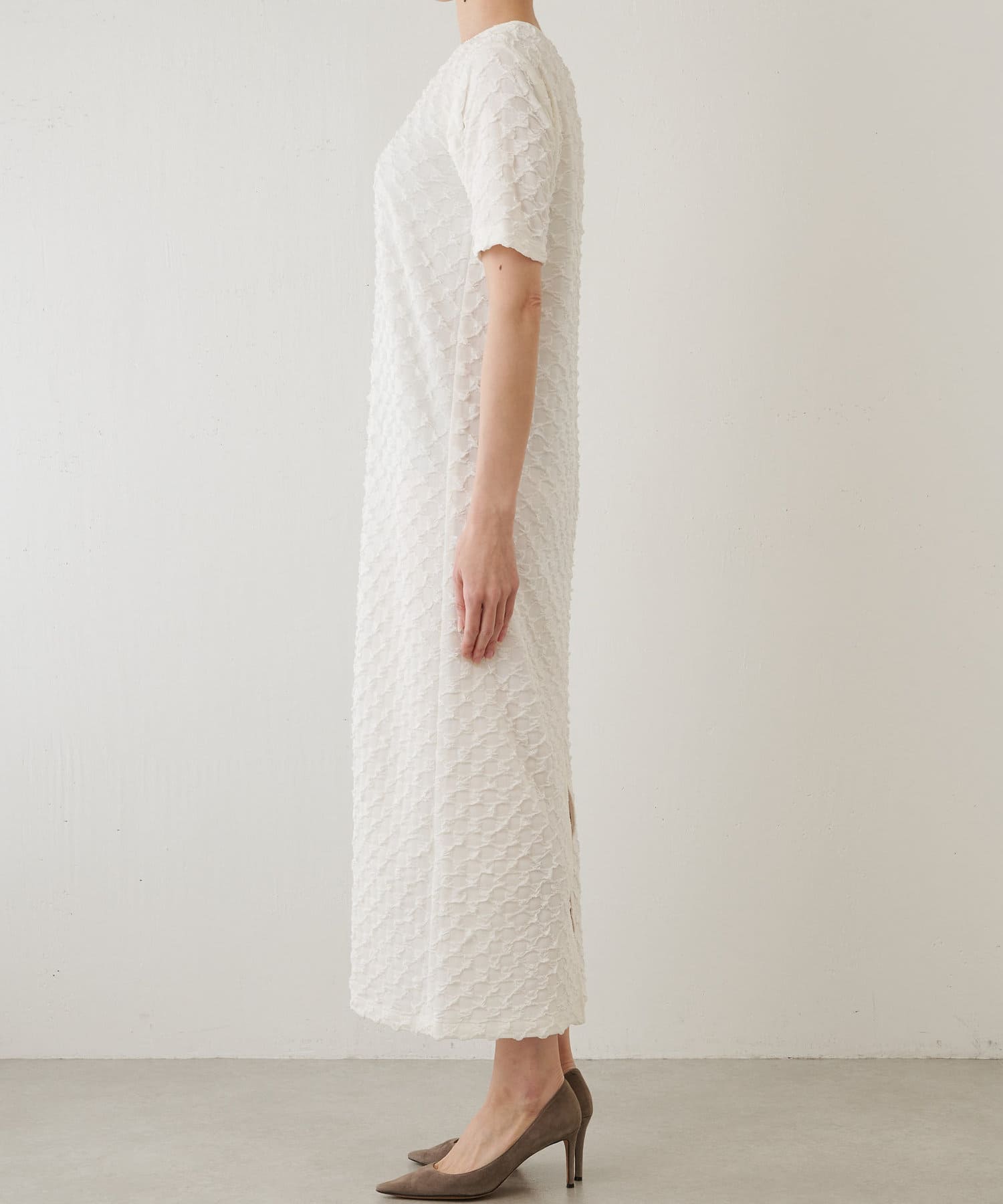 ■ポコポコとした立体的な生地の表情が特徴的なロングワンピース。