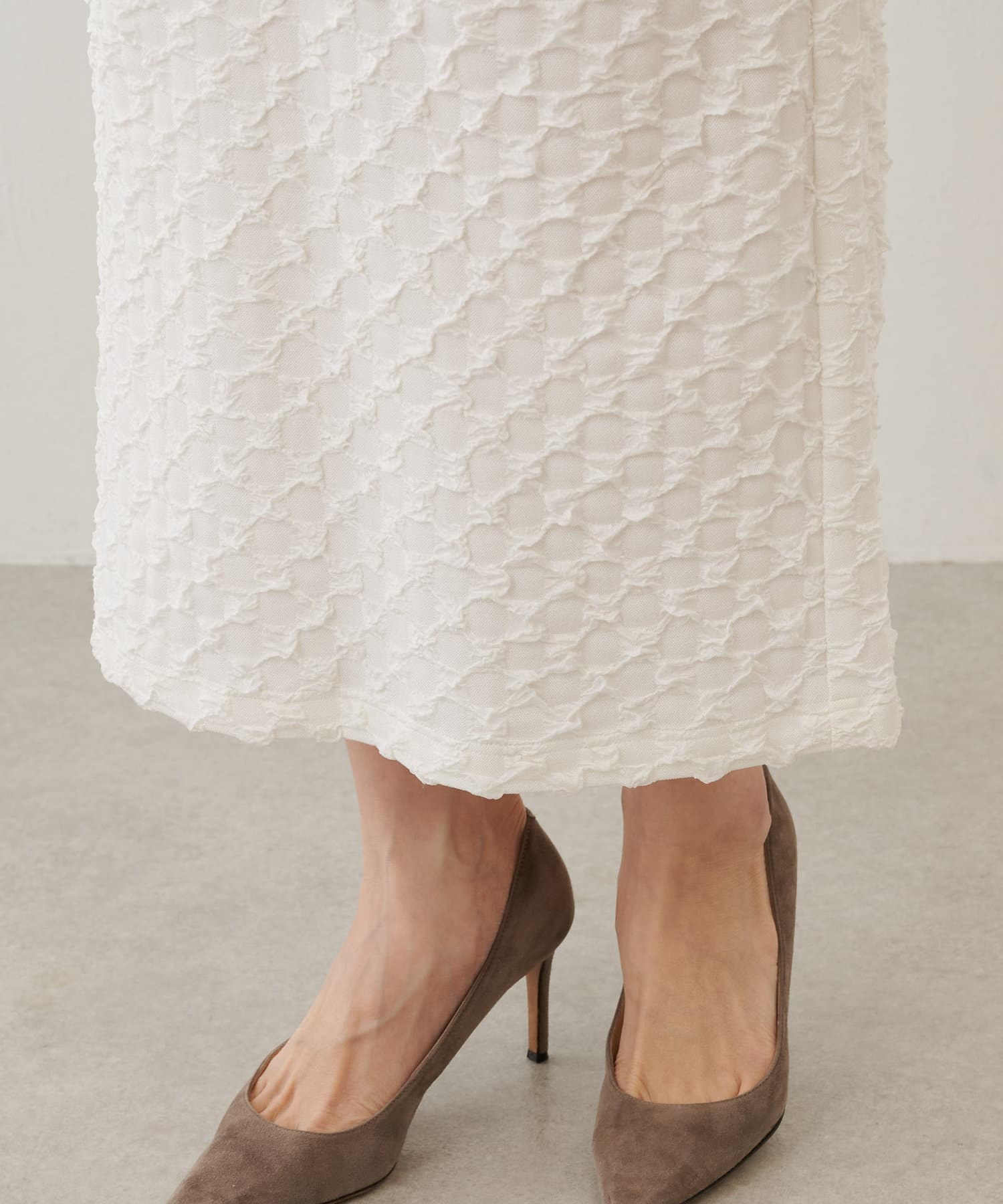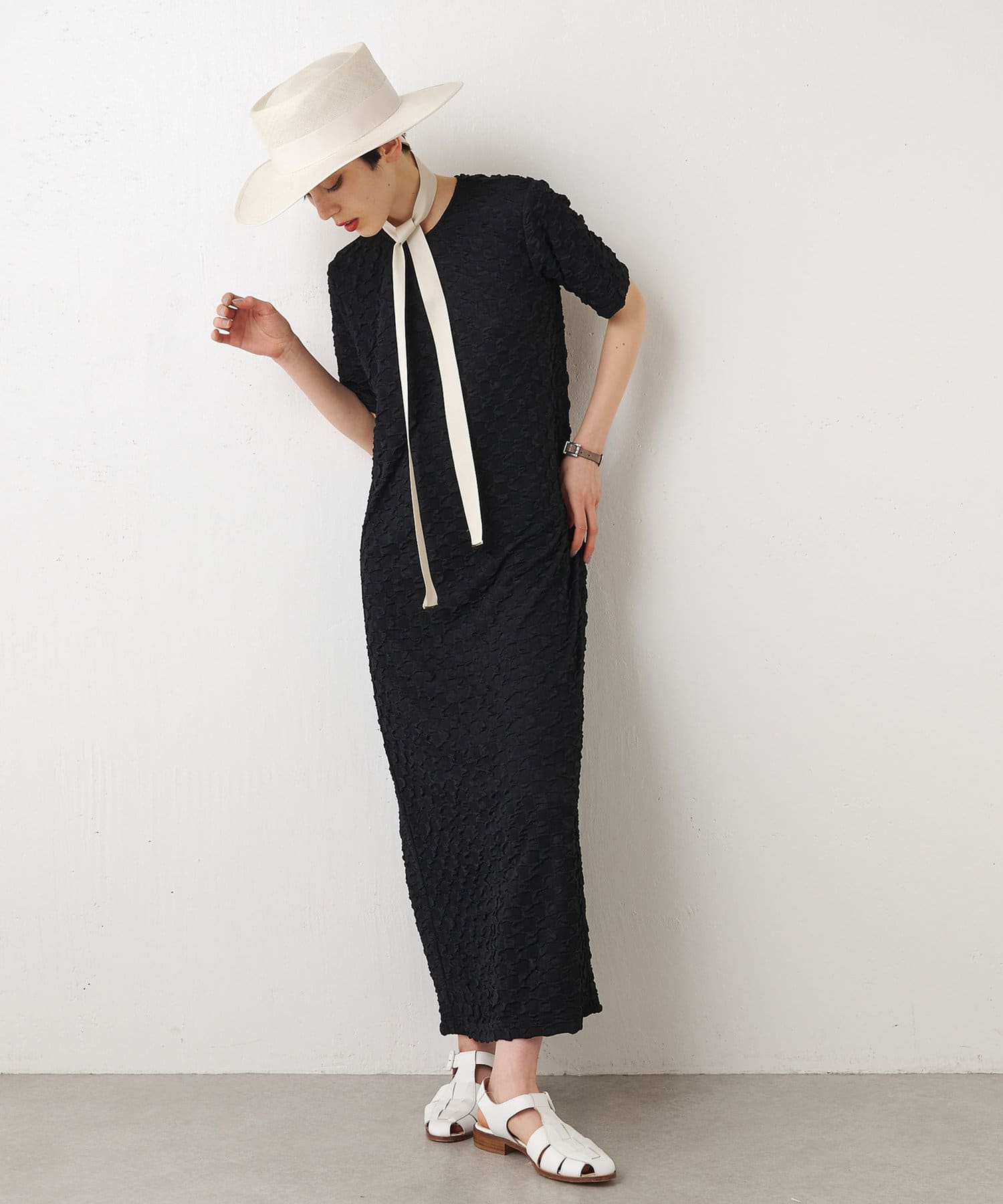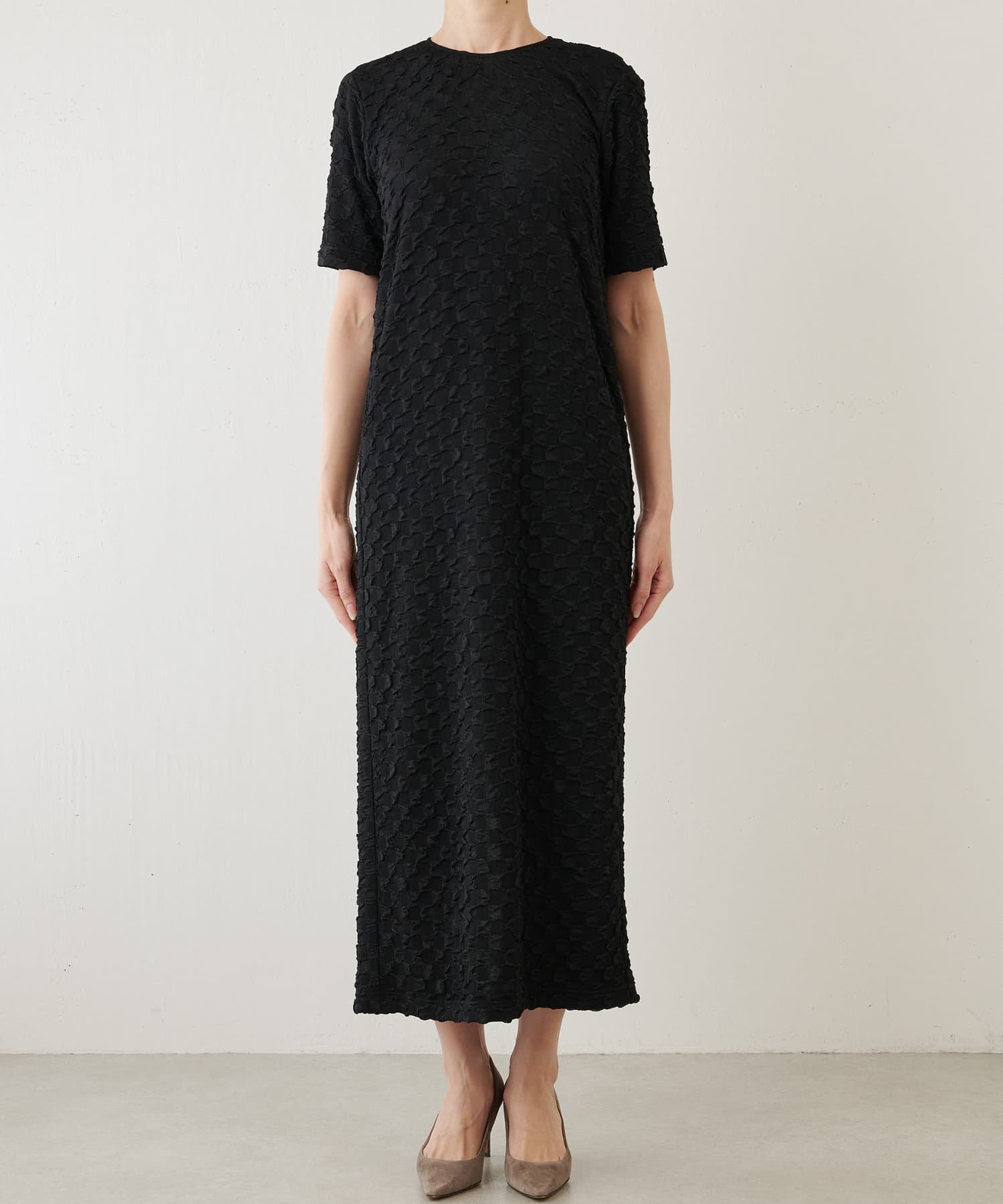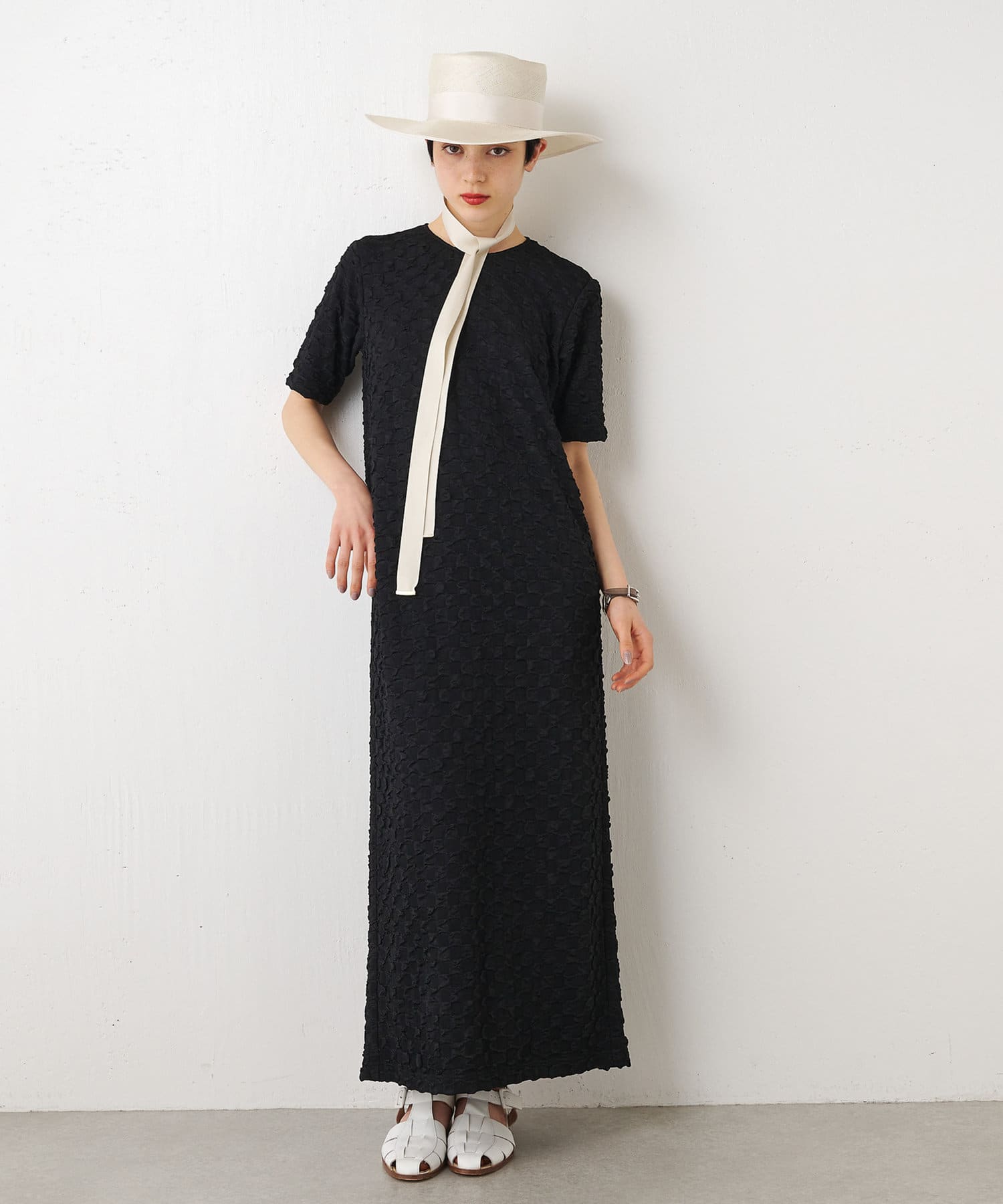 ■ポコポコとした立体的な生地の表情が特徴的なロングワンピース。