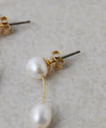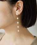 ■華奢なチェーンにパールを連ねたロングピアス。