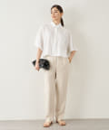 サスティナブルなテンセルリヨセル繊維を一部使用しふくらみを持たせ、フィブリル加工によるソフトな肌触りとハリが特長的な素材。