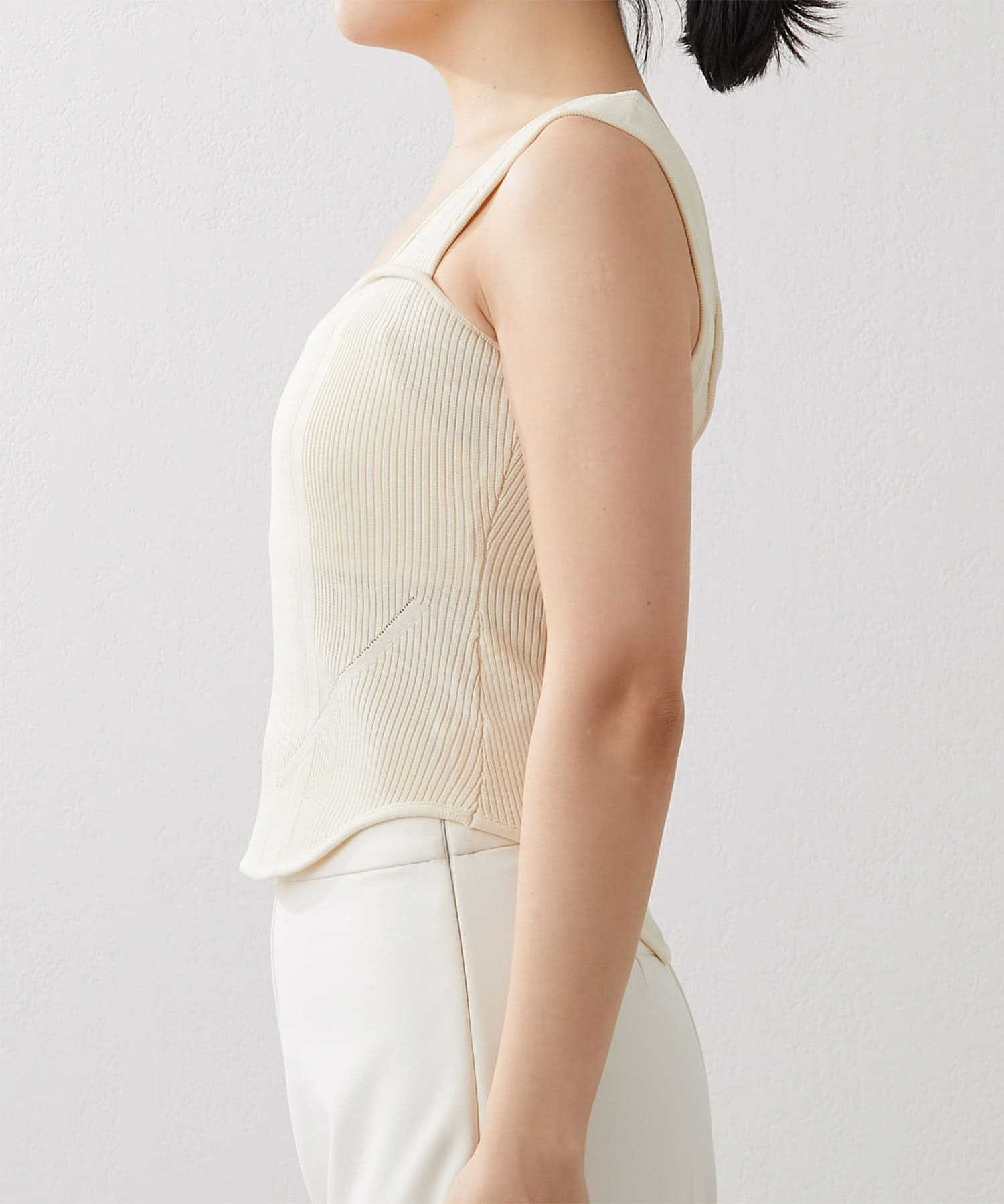 ■リブ編みで仕立てられたコンパクトなニットキャミソール。