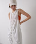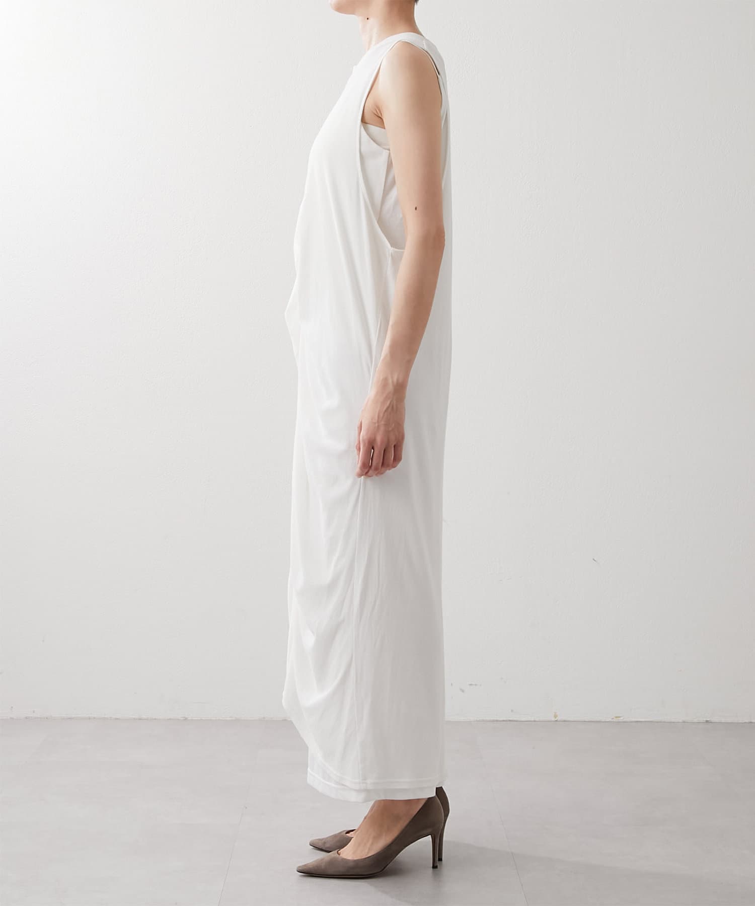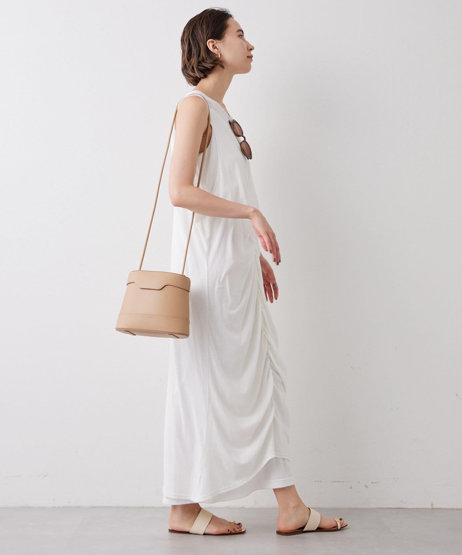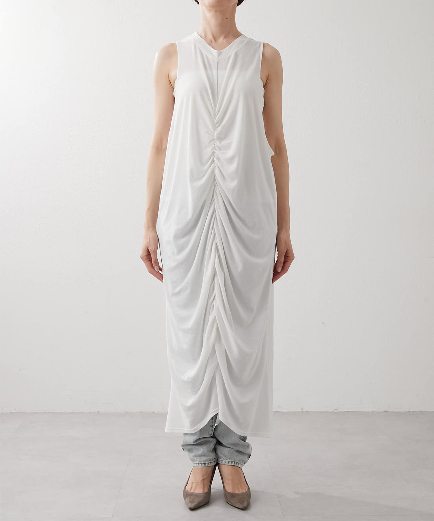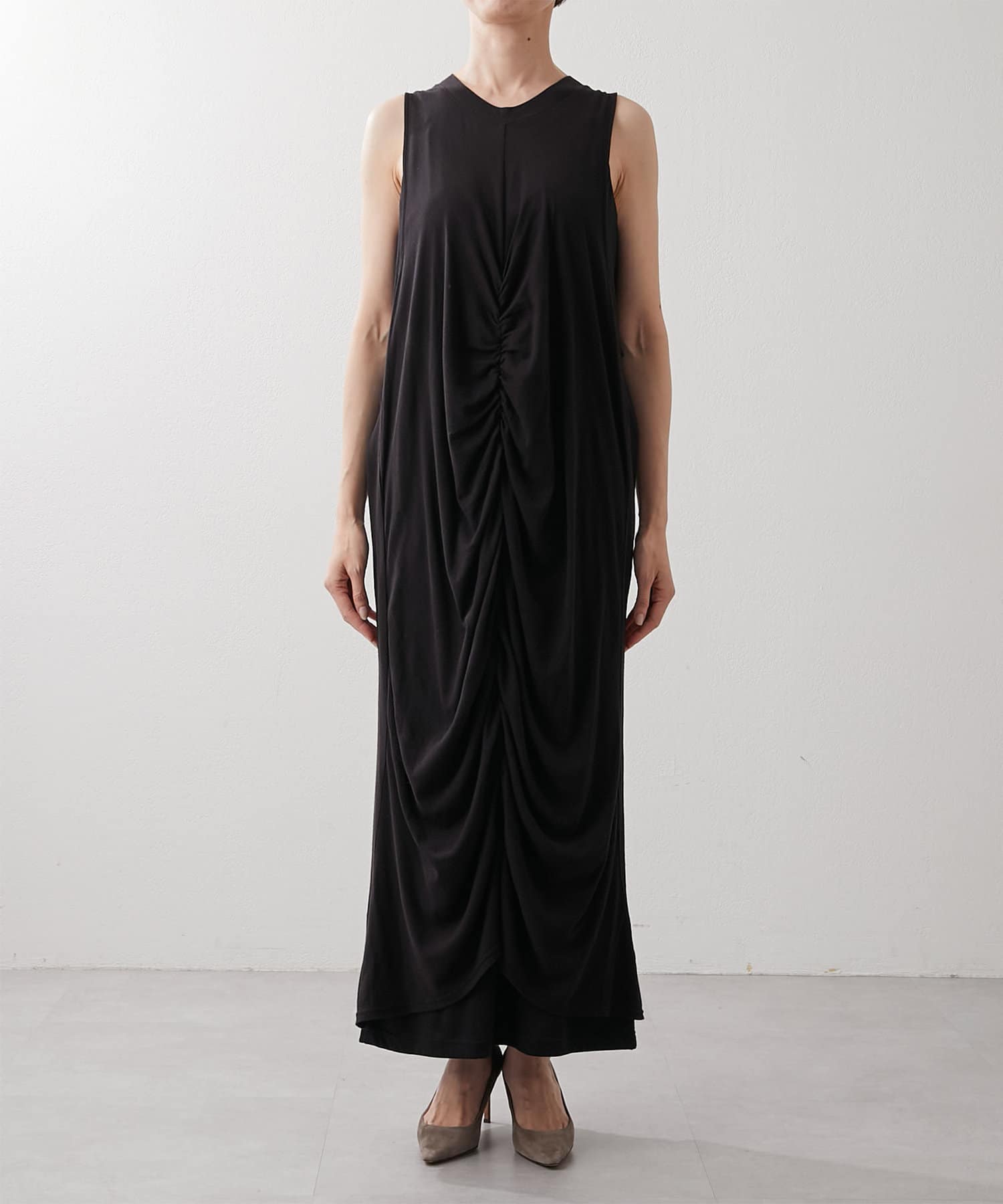 ■上に重ねるワンピースはフロントのシャーリングデザインがポイント。
