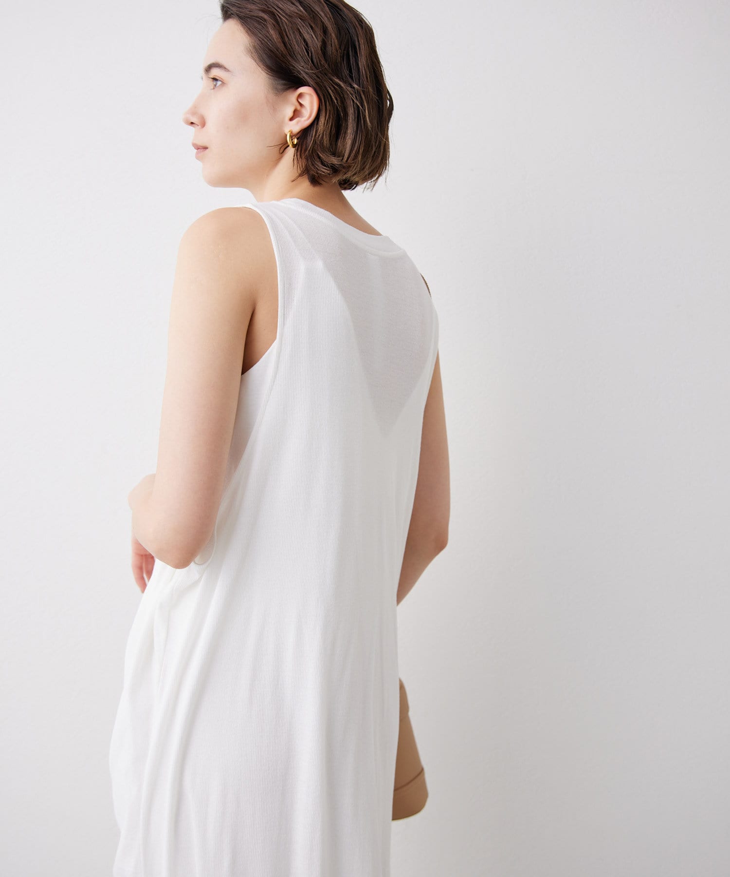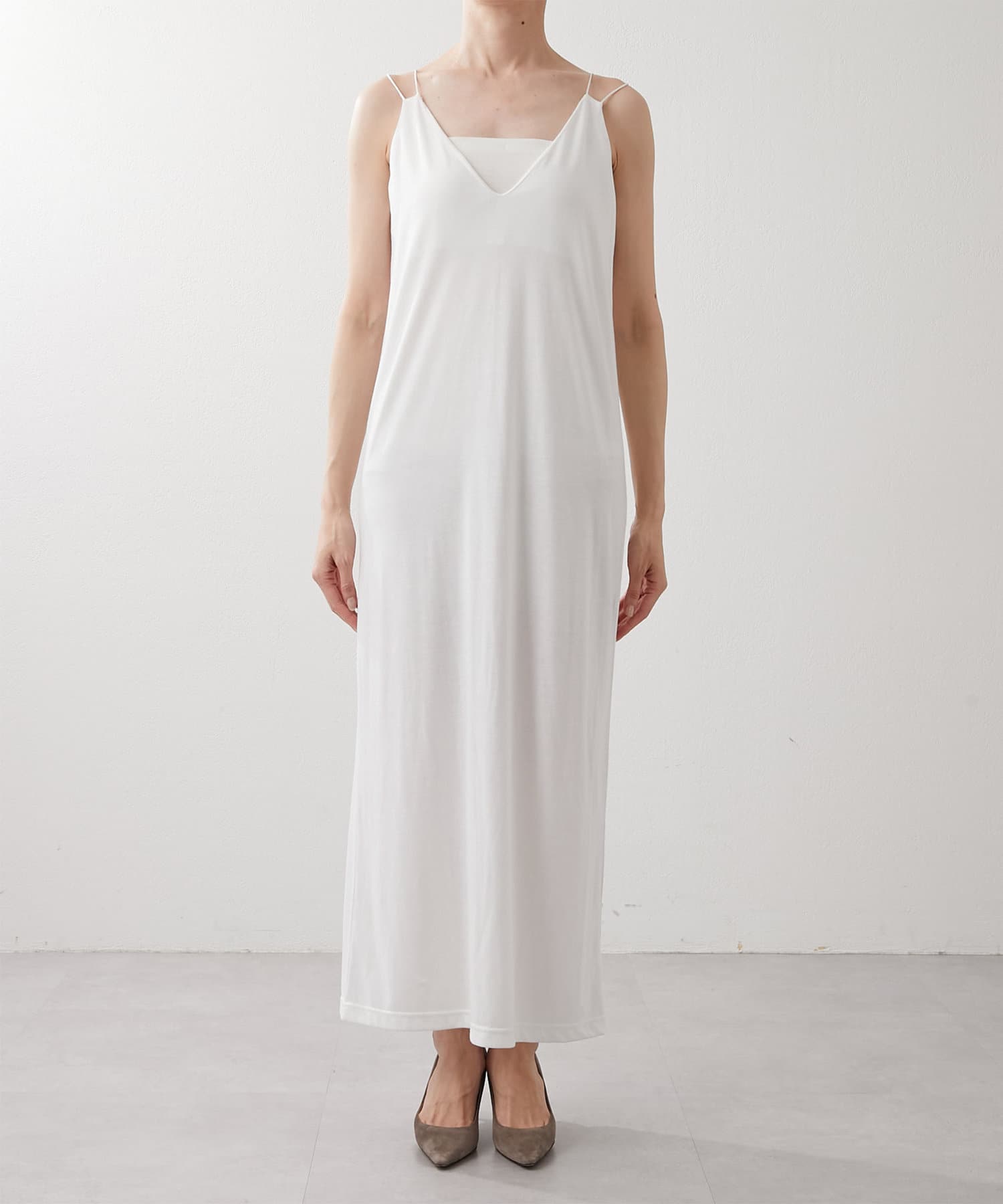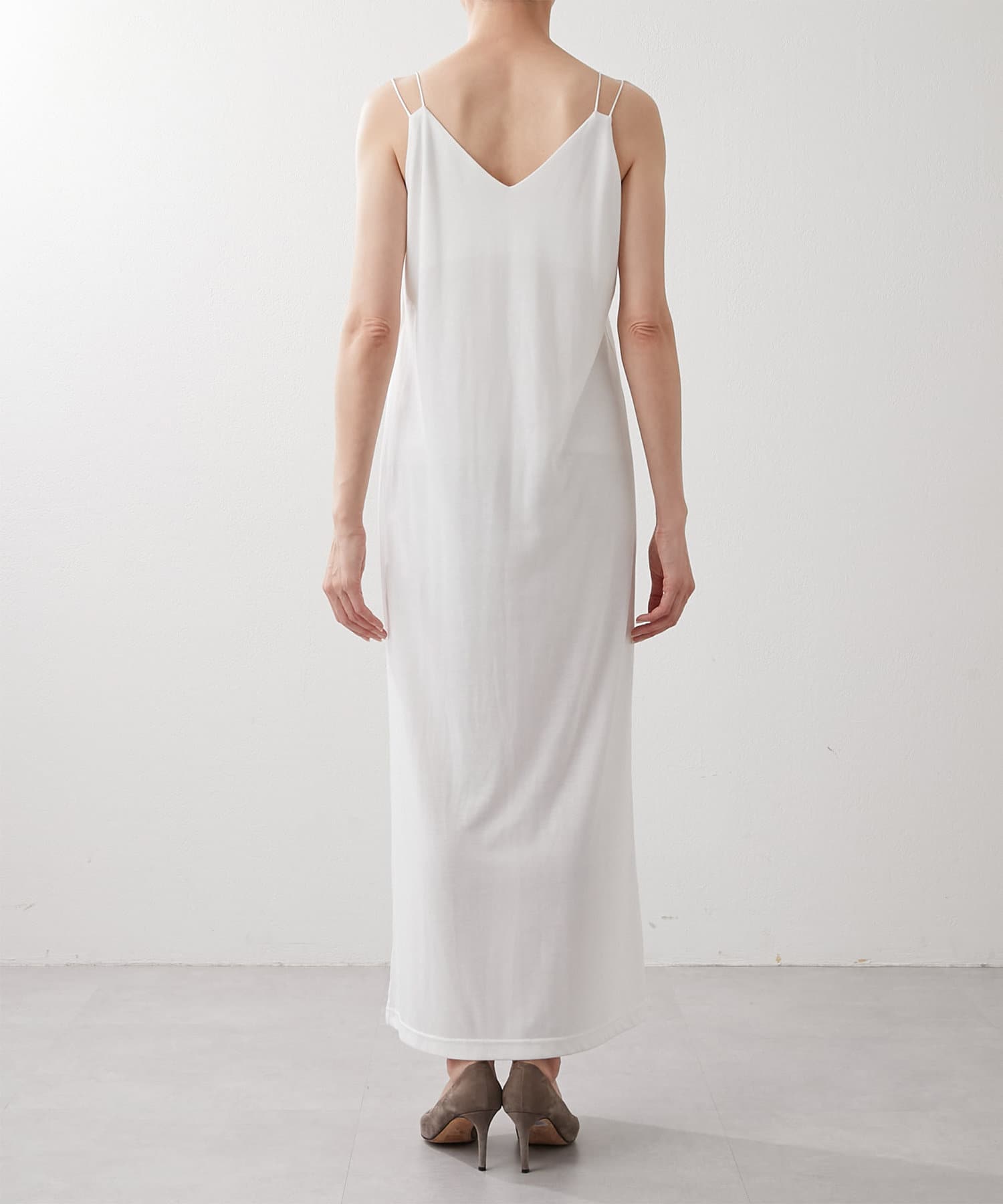 ■インナー側はシンプルなキャミワンピースで、音感のあるきれいな素材とやや深めのバックVネックが大人っぽい印象。