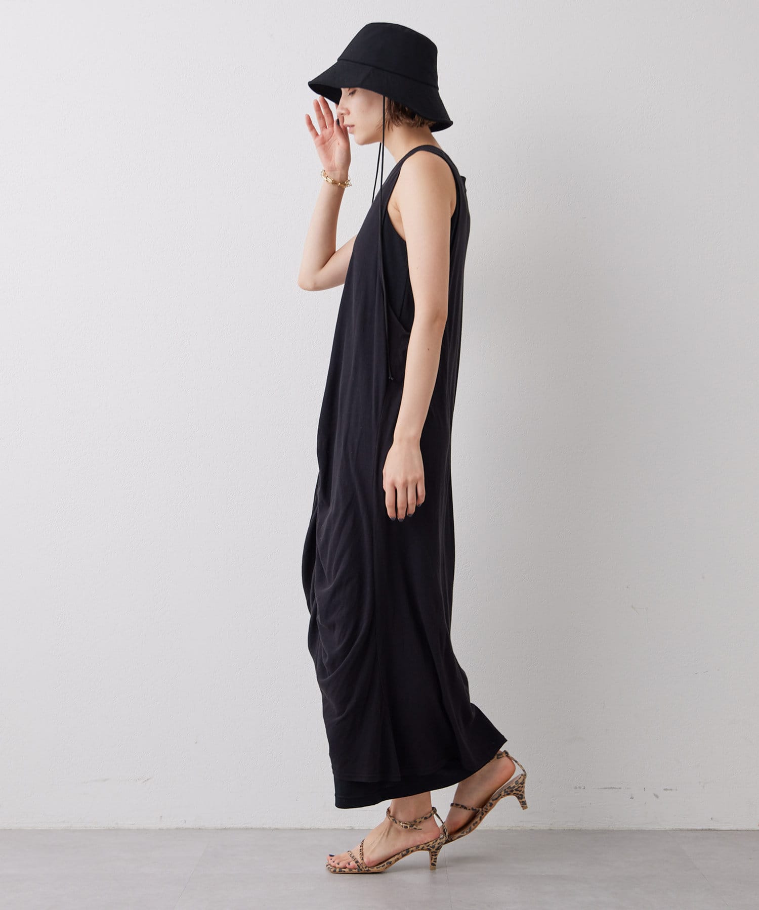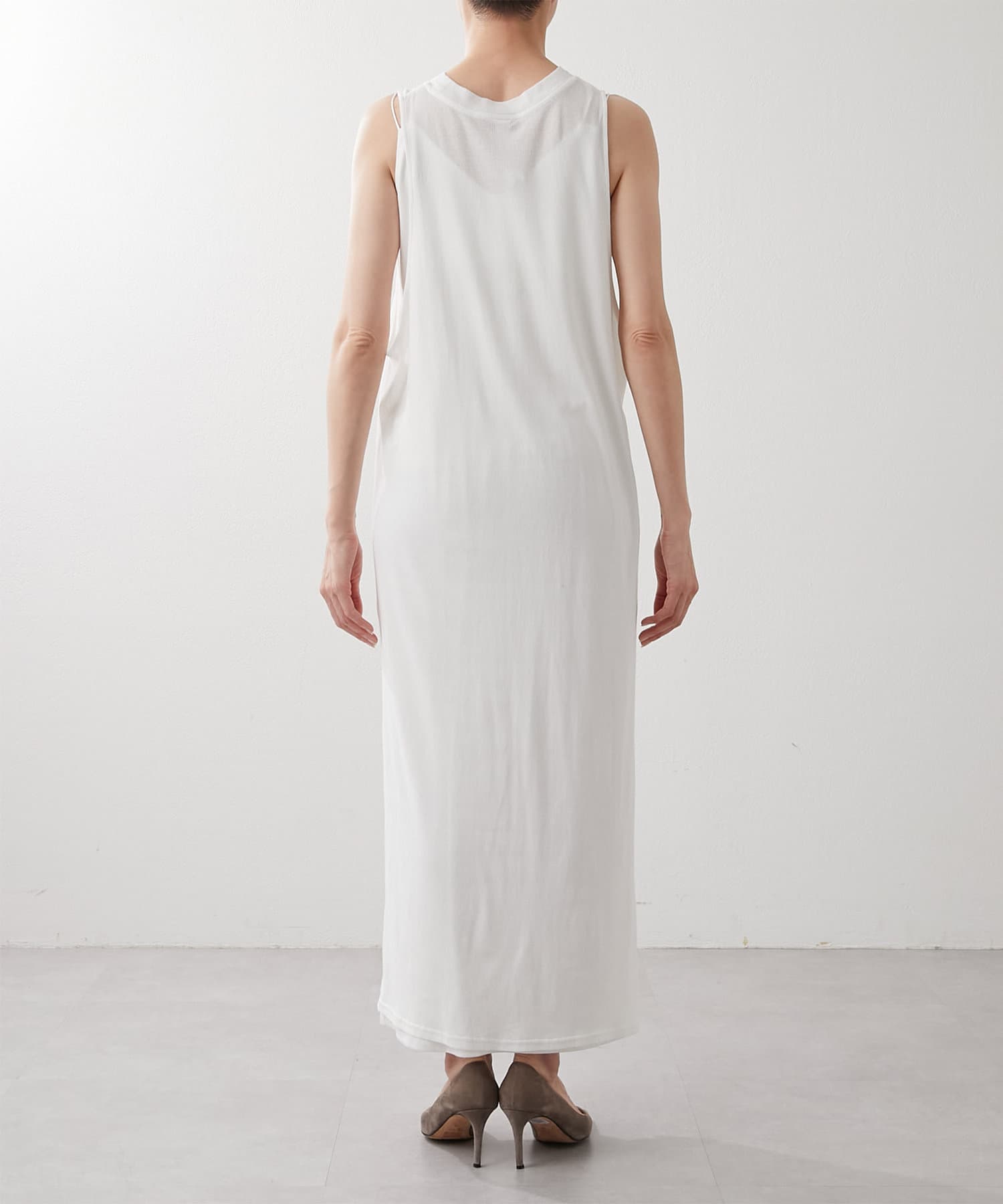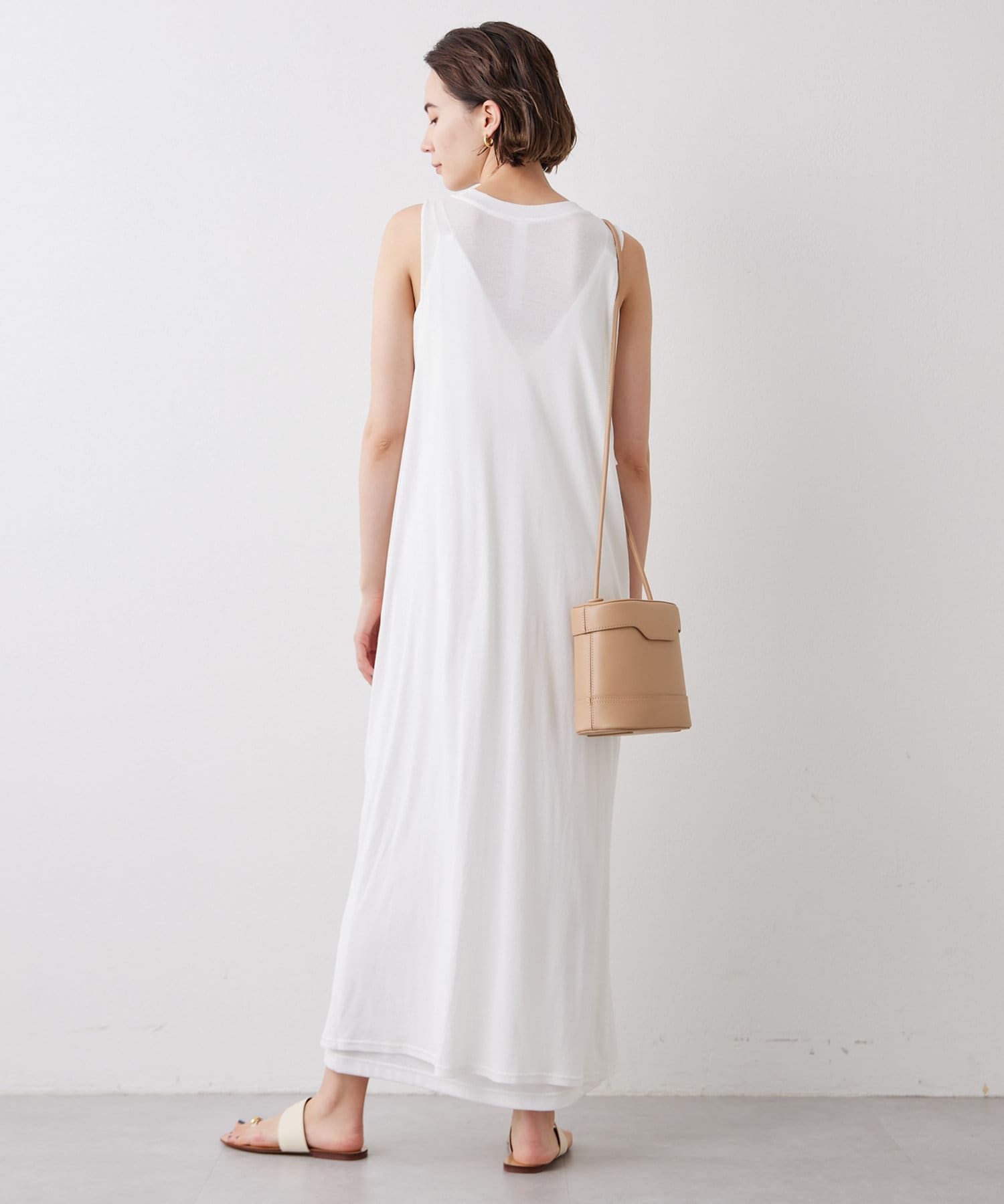 ■インナー側はシンプルなキャミワンピースで、音感のあるきれいな素材とやや深めのバックVネックが大人っぽい印象。