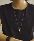 ■ゆったりとした抜け感が心地よい長めの華奢なチェーンが上品な印象。