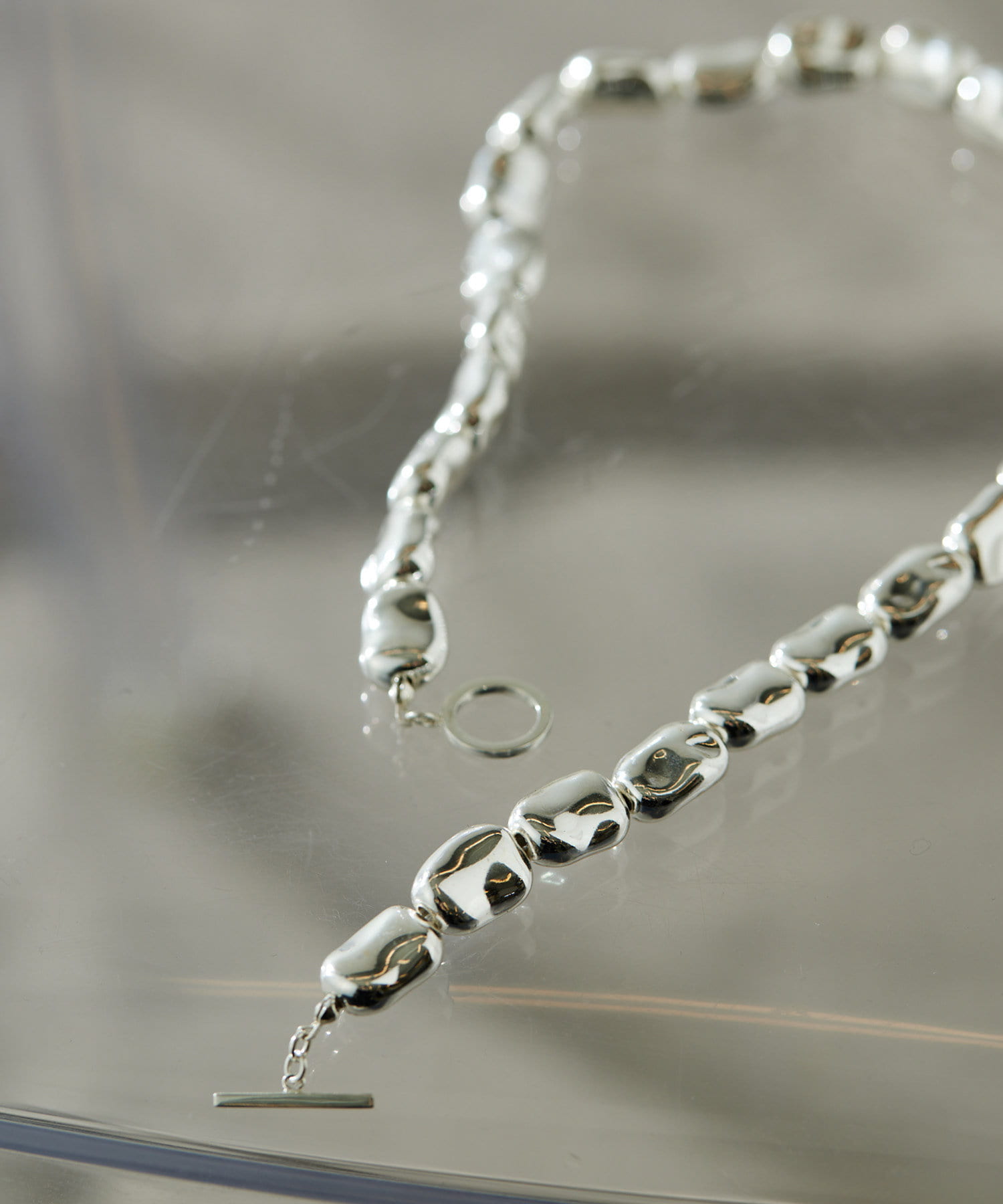 ビーンズモチーフがモダンなアクセントを添えるネックレス