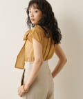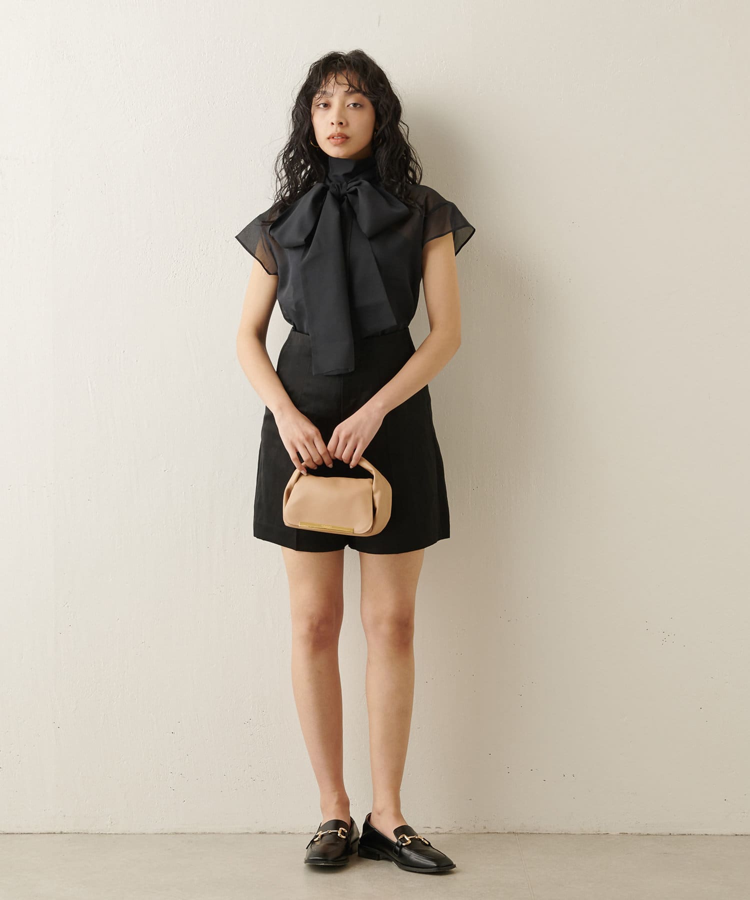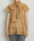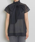柔らかな透け感とボウタイディテールが女性らしい品のある印象をプラスする一枚。