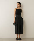 ■フロントのスクエアネックデザインがデコルテを美しく演出し、シンプルながらもモダンな印象に。