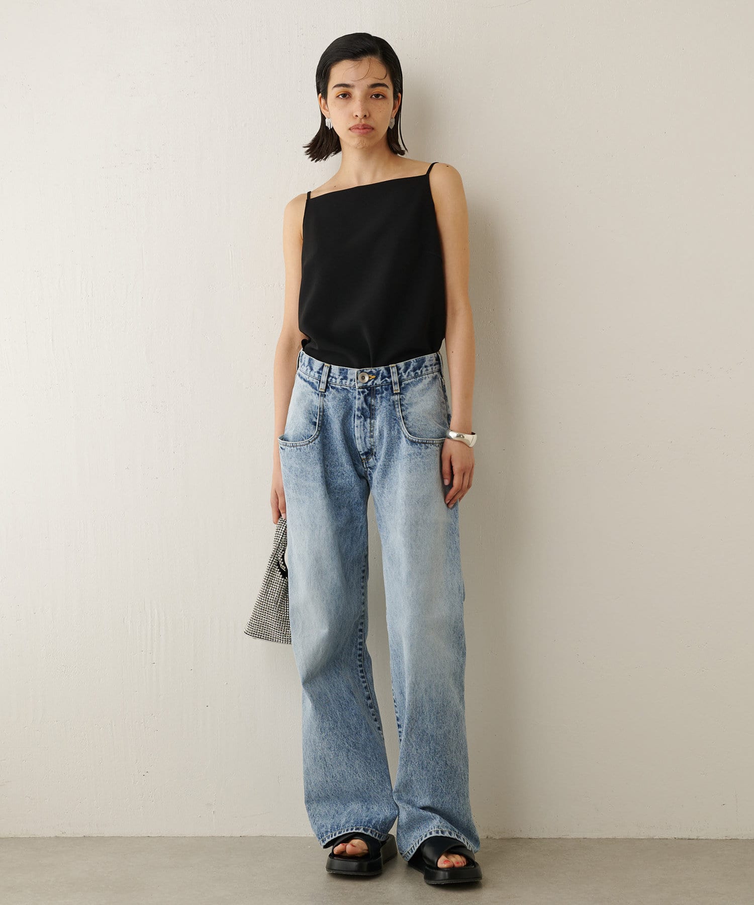 品のある大人のキャミソールです。1枚で着てもいやらしくない絶妙なネックラインが個人的にもお気に入りポイントです。背中は少し垂れ下がるようなデザインで、ルーズな雰囲気でこなれ感があります。
