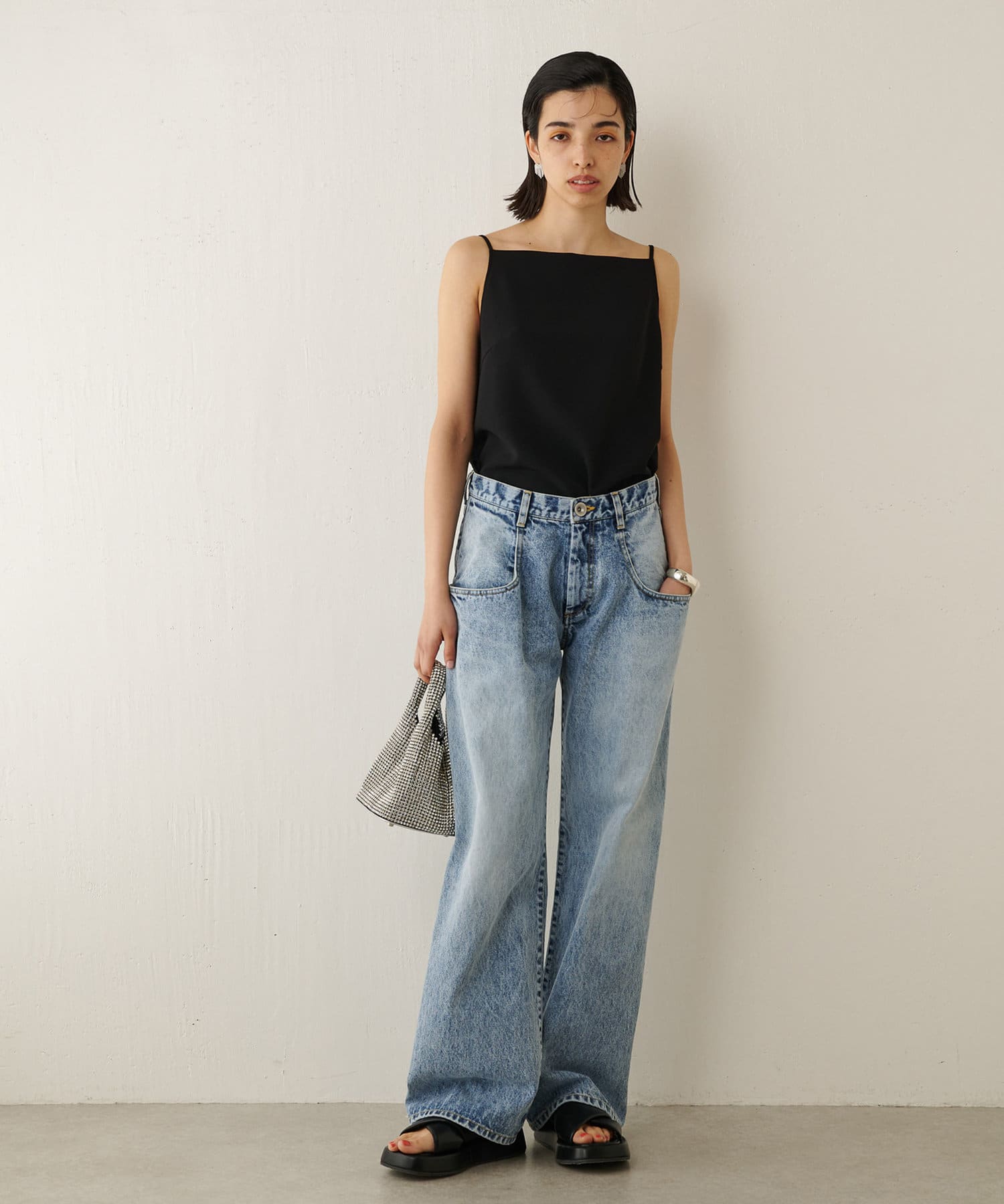 ヘルシーな着こなしが叶うキャミソール。スクエアネックで程よくデコルテが見えて、とても上品です。バックスタイルはドレープのようになっていて、程よい肌見せを楽しめます。1枚でも、インナー使いにもおすすめです。