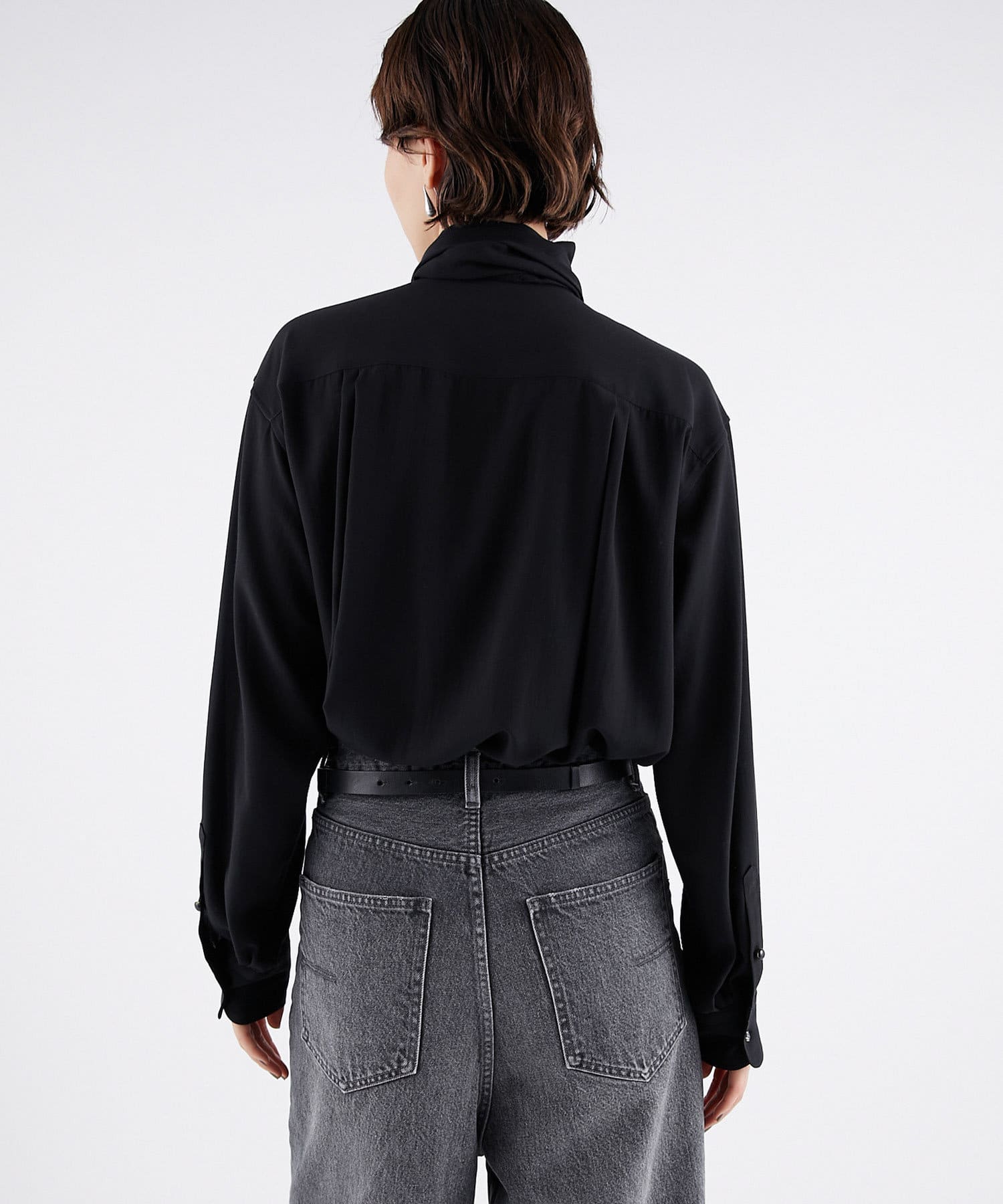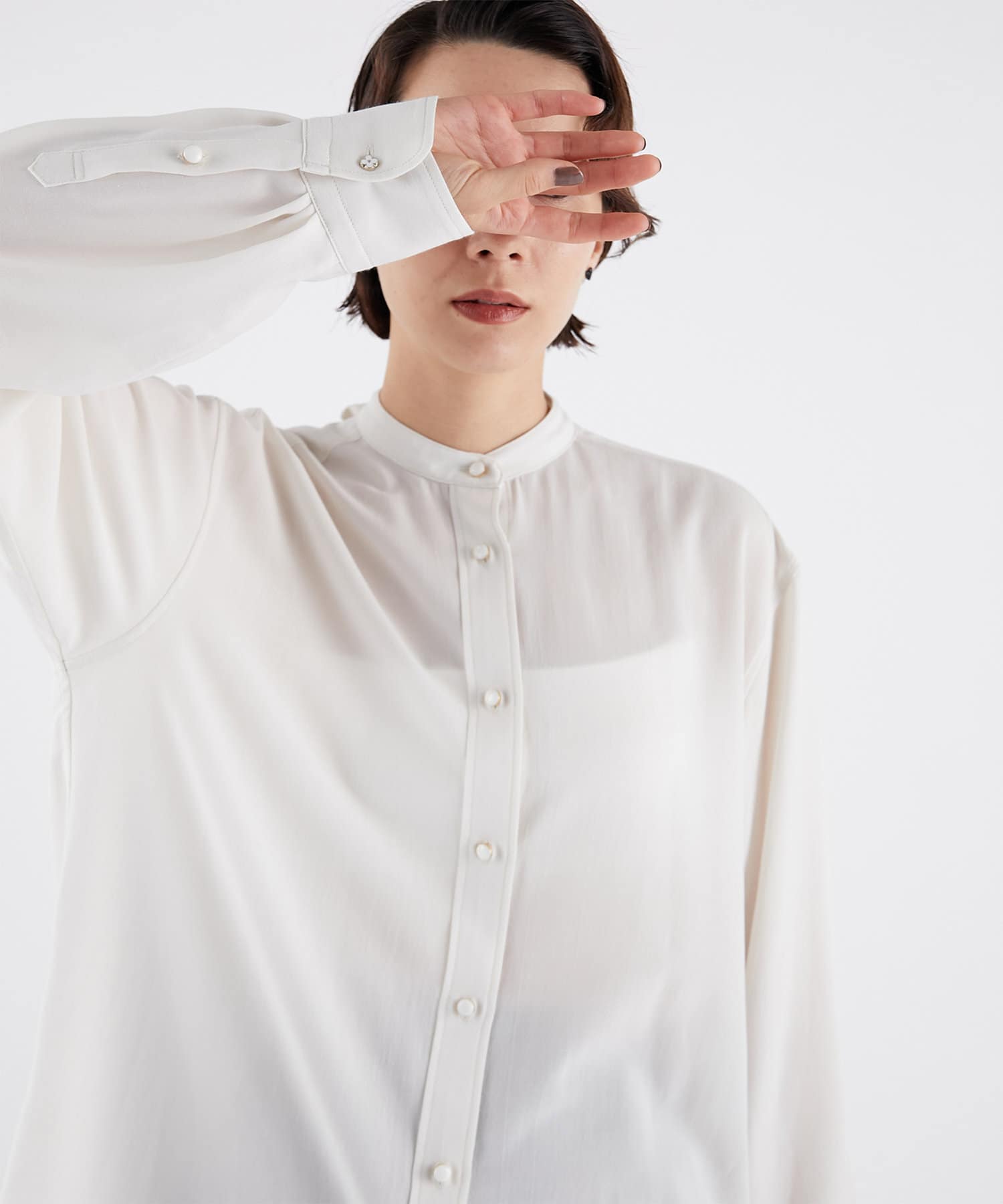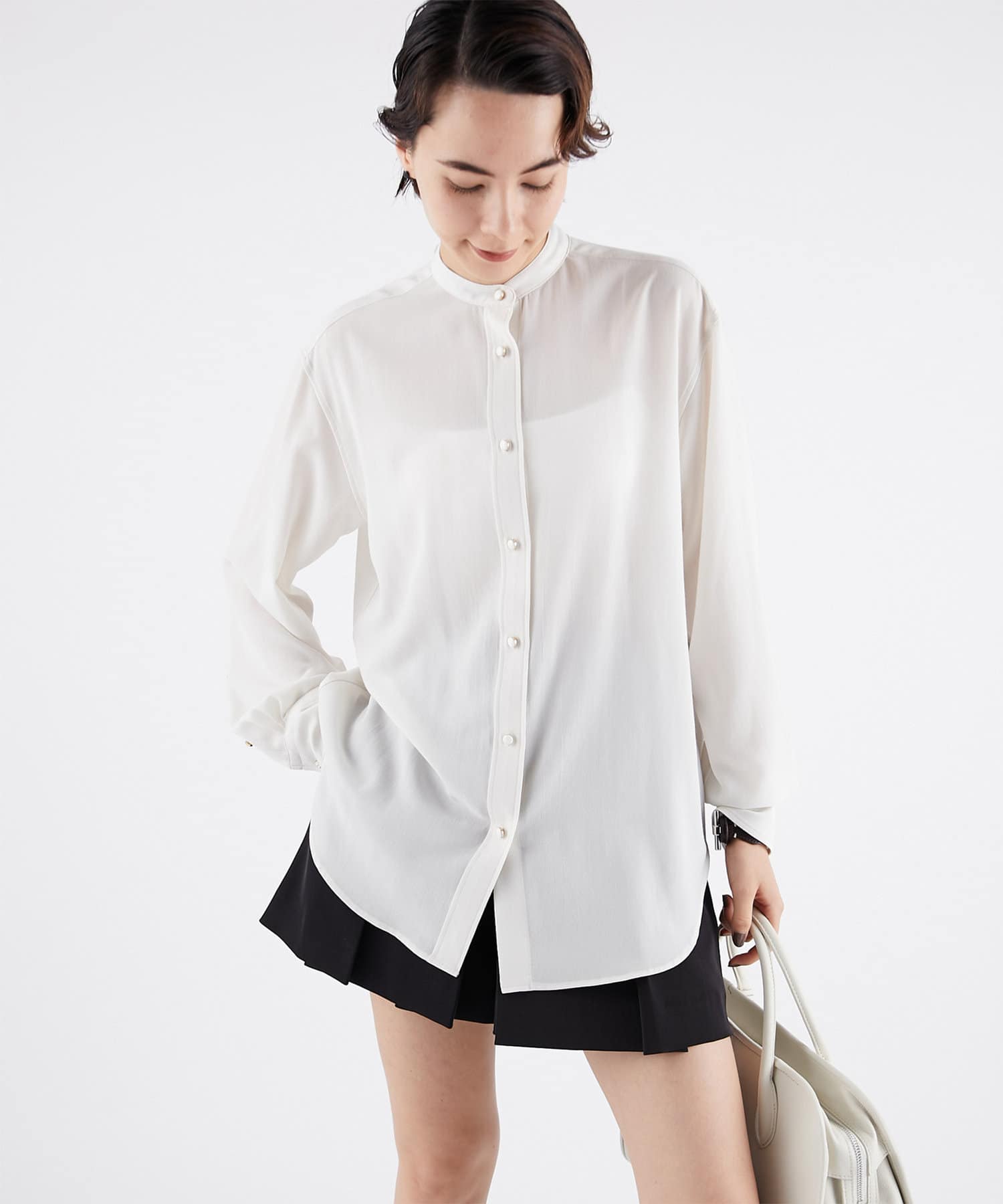 ■一枚着としてはもちろん、ニットやスウェットなどのレイヤードアイテムとしても活躍し、オンオフで着回せる万能ブラウス。