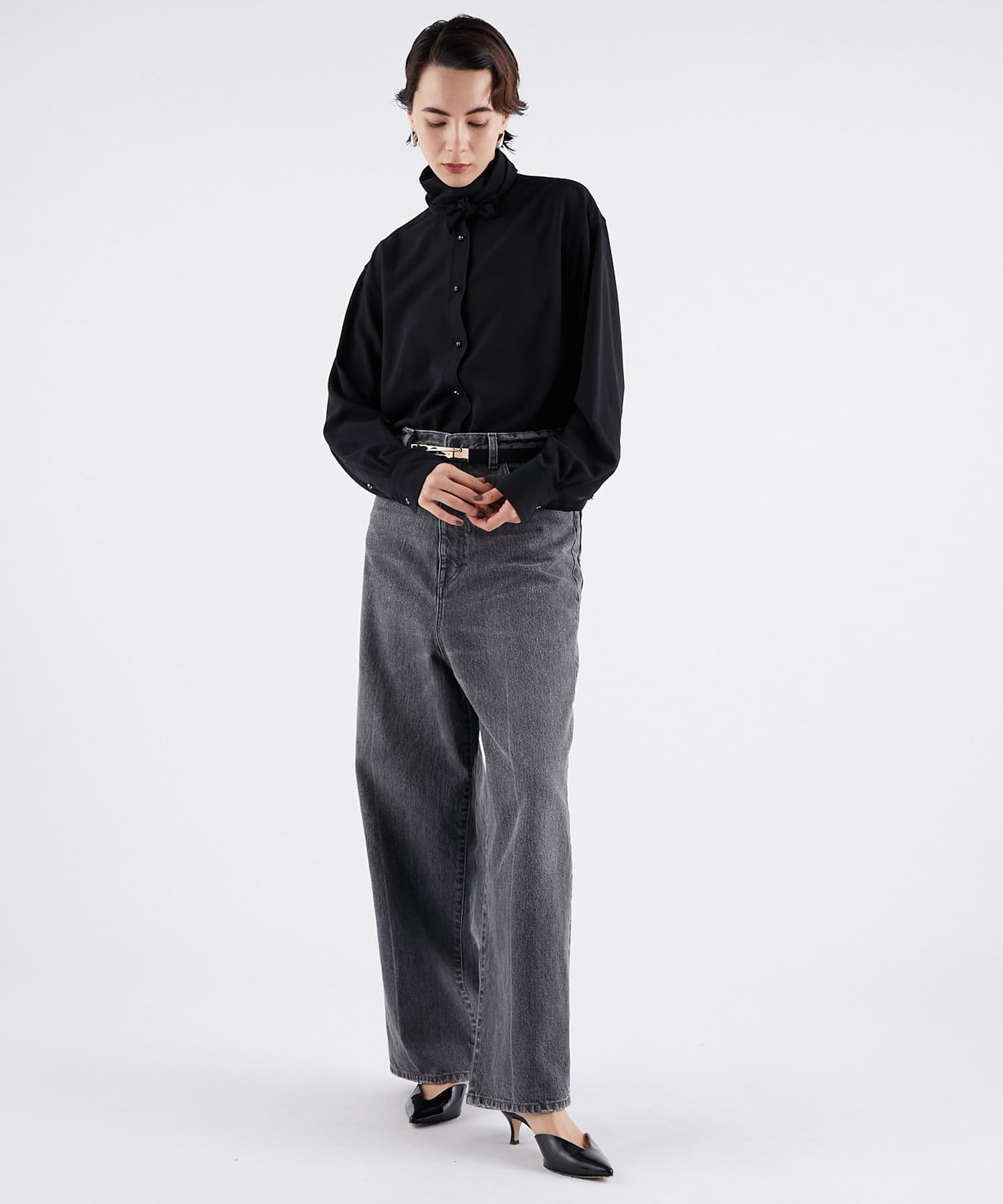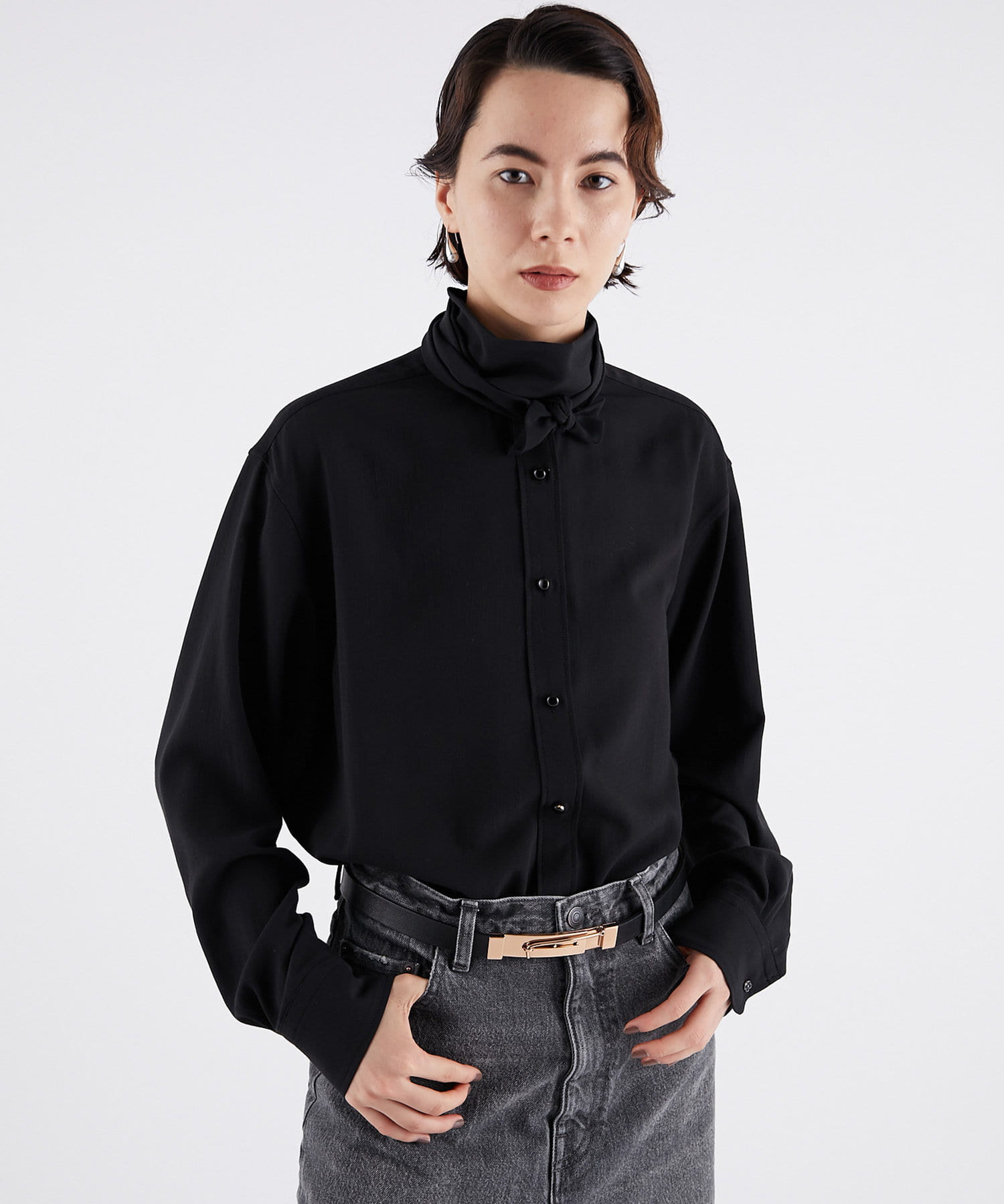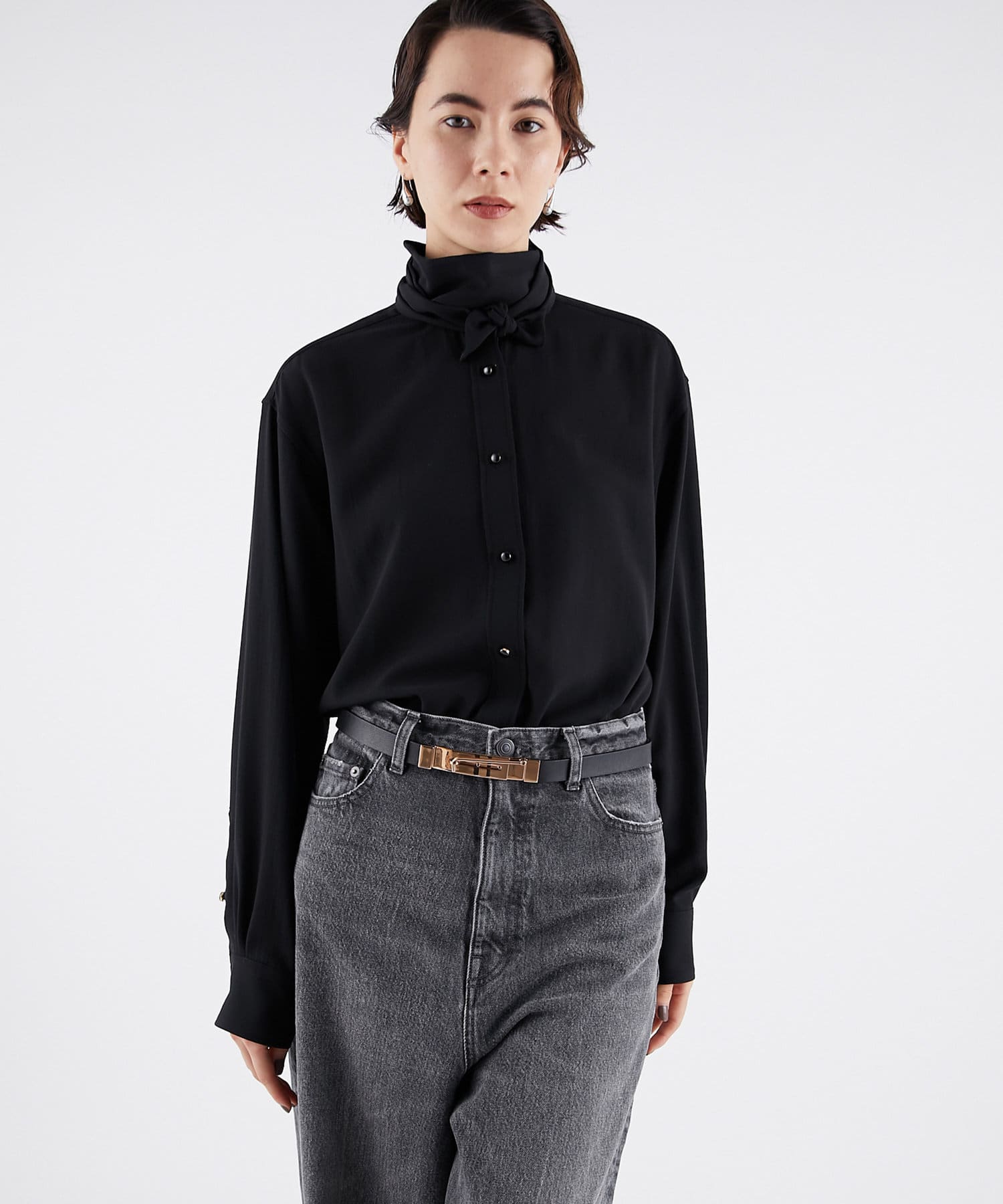 ■ボウタイは気分やスタイルに合わせて一つ結びや、二重巻きしてハイネックのように楽しむのもおすすめ。