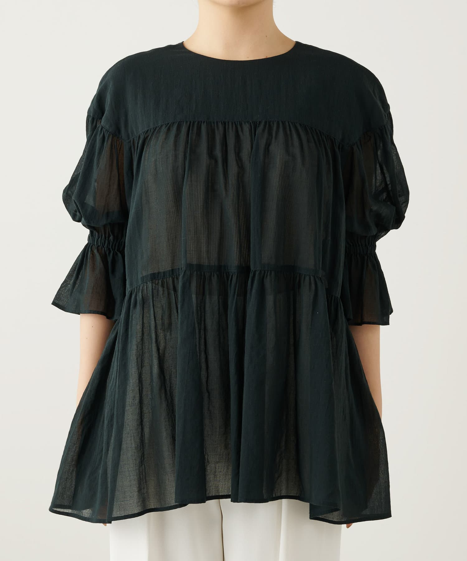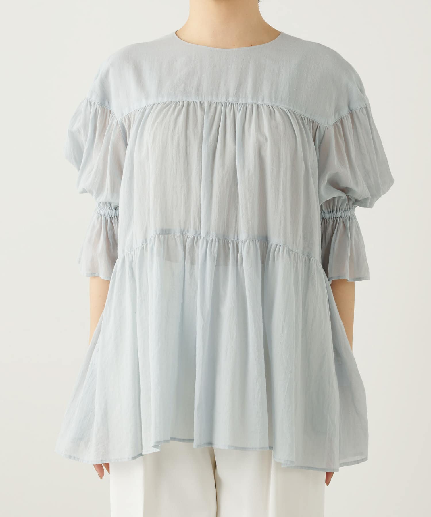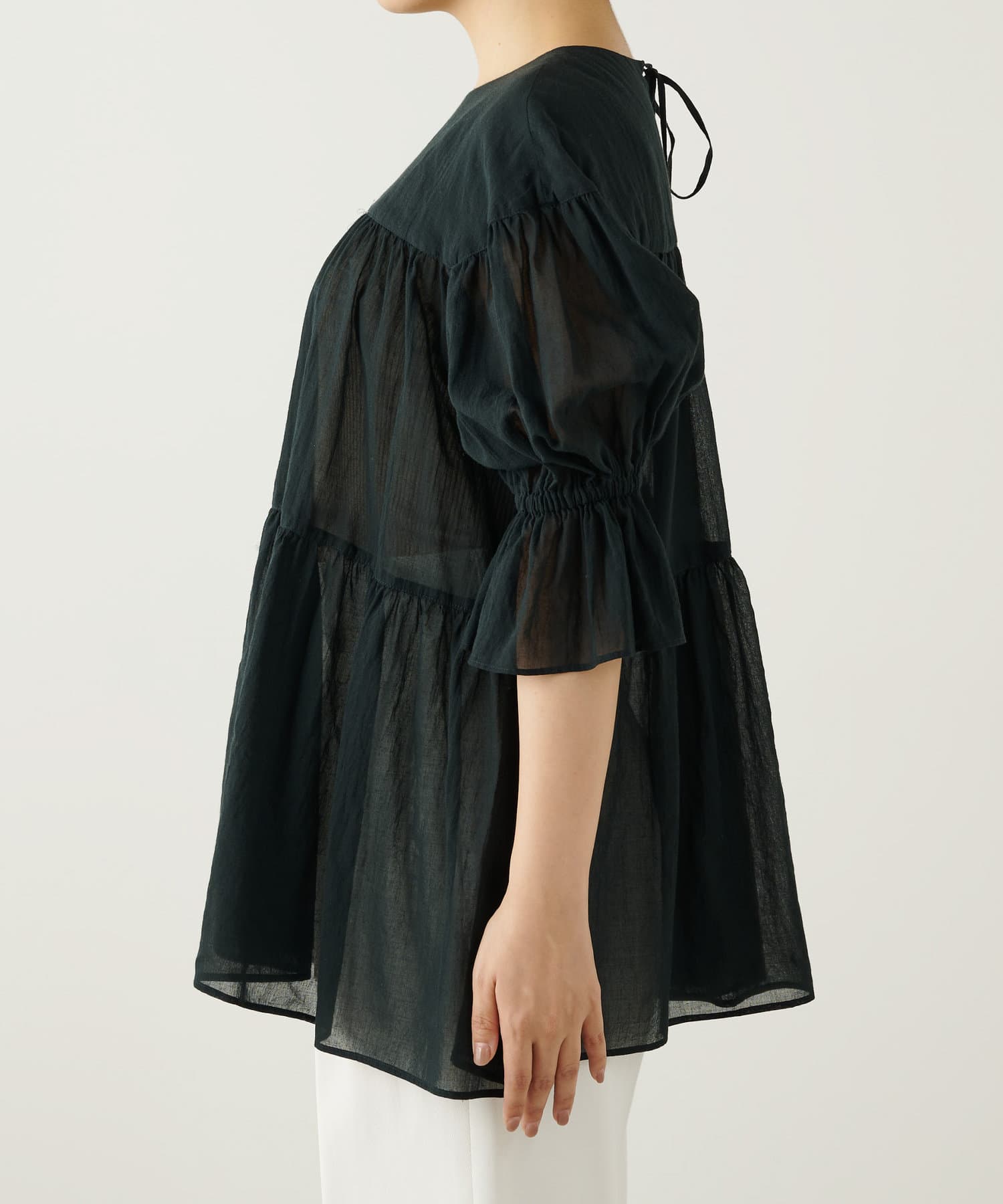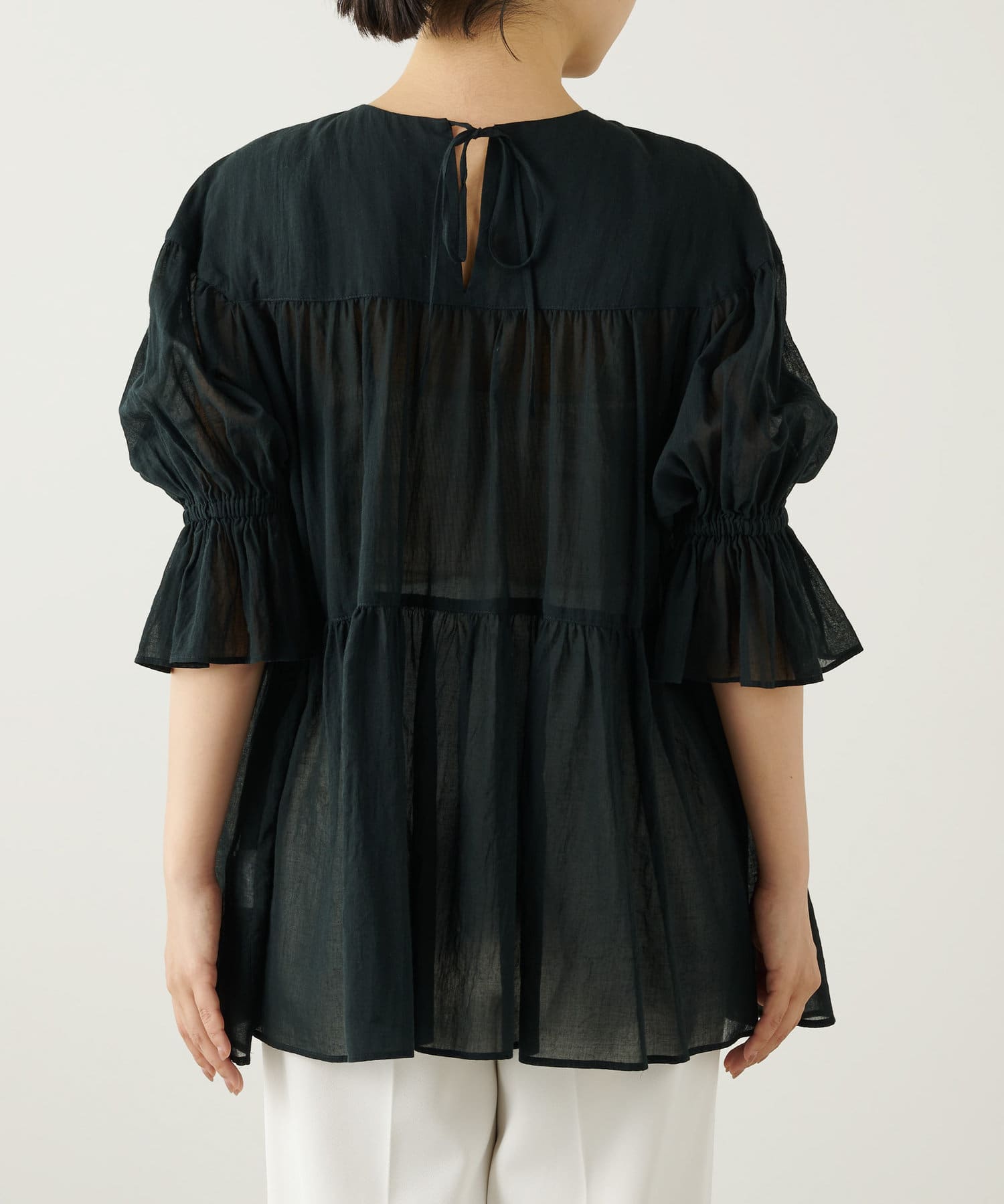 ■透け感が涼しげなコットンシフォン生地を使ったティアードブラウス。