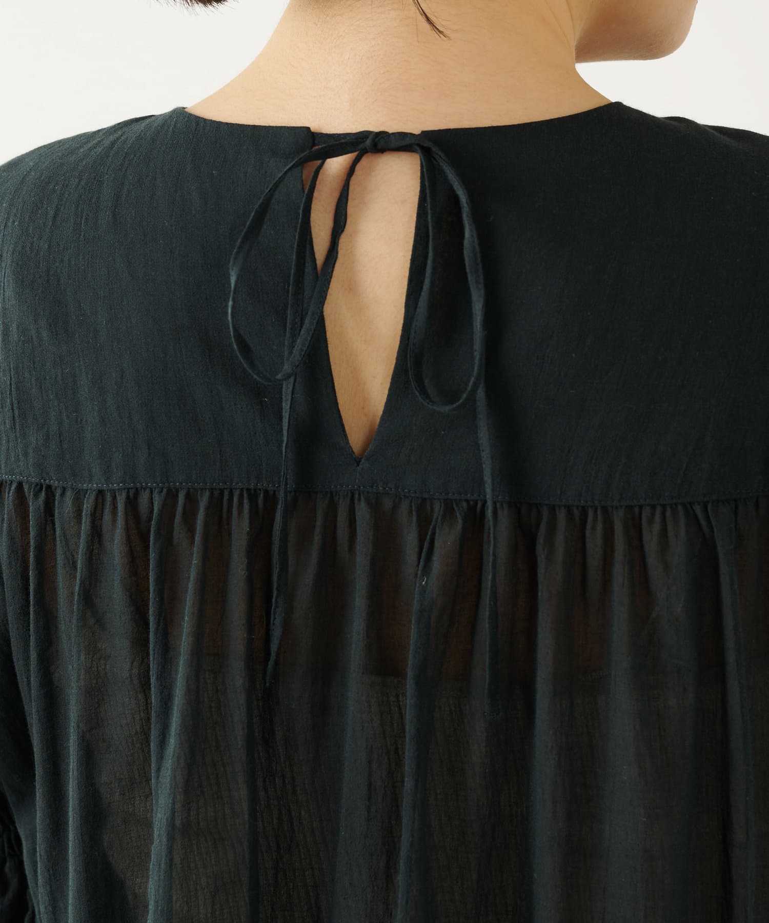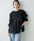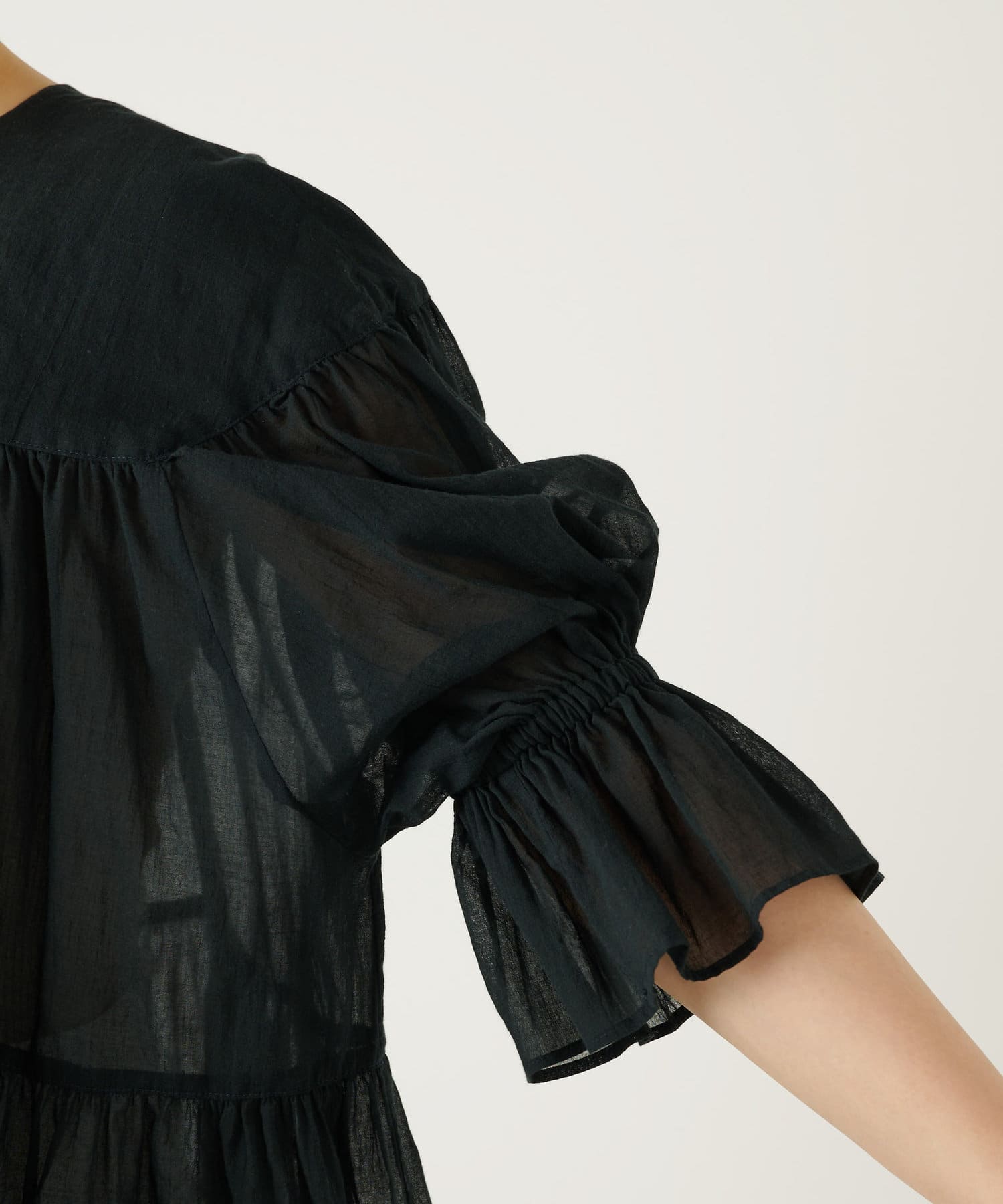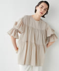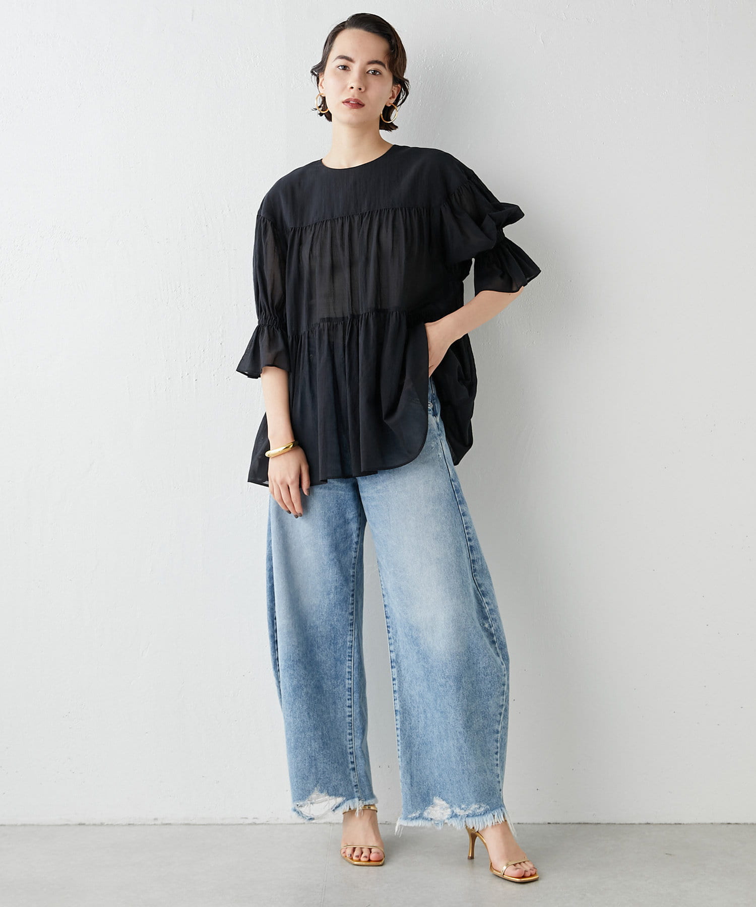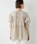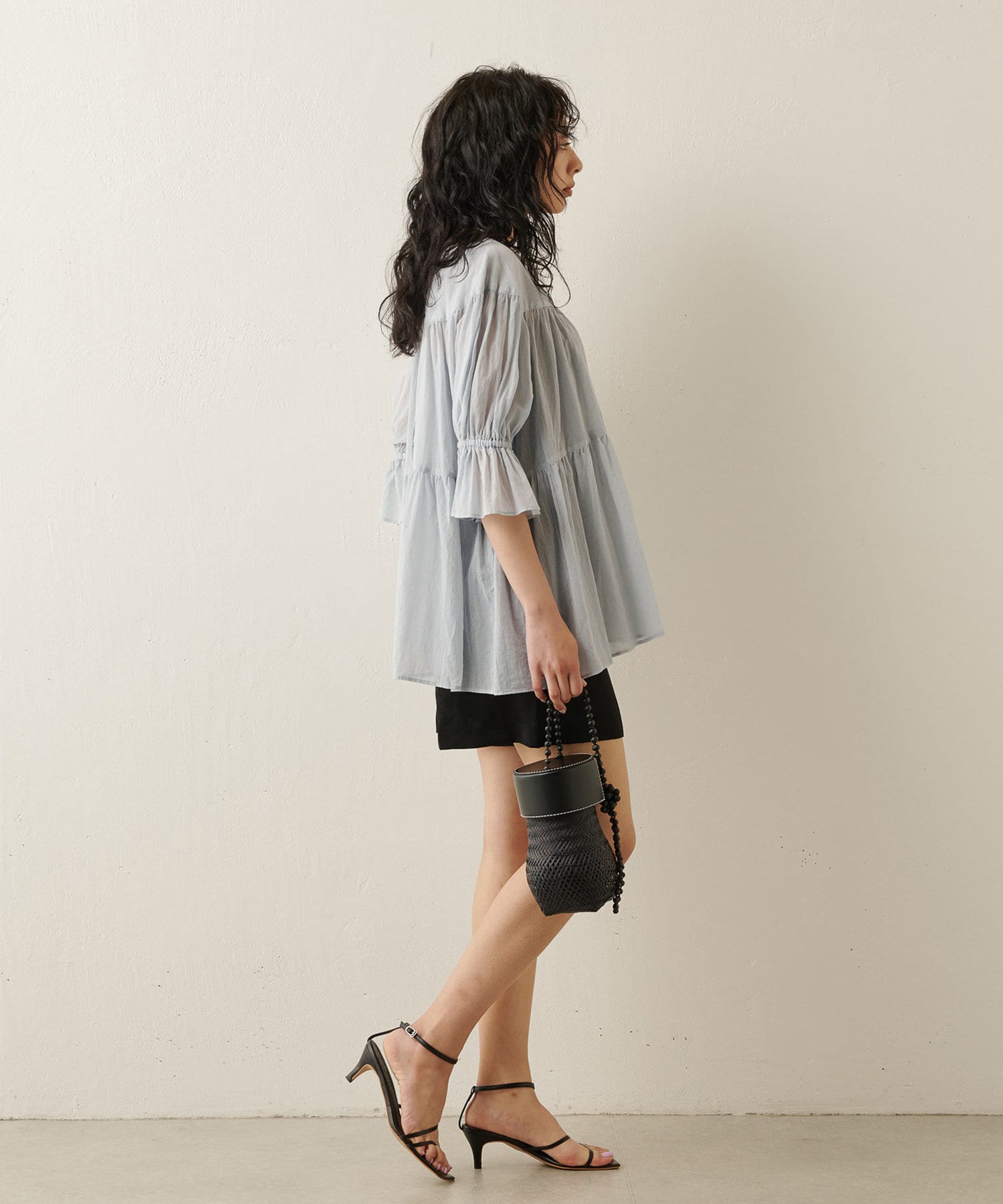 ■透け感が涼しげなコットンシフォン生地を使ったティアードブラウス。