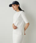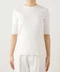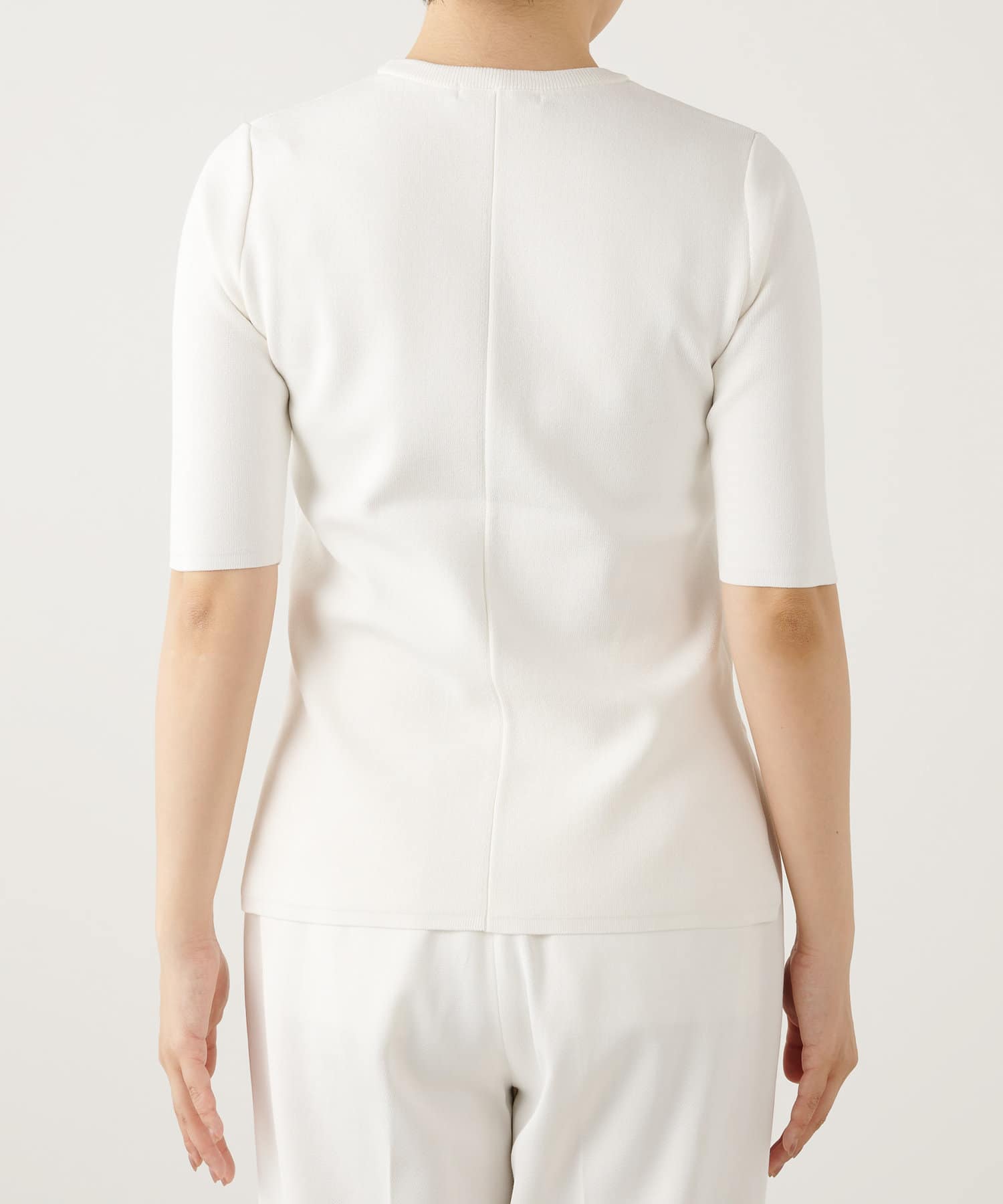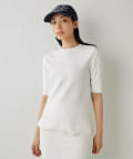 ■すっきりとした印象に仕上げたハーフスリーブニットプルオーバー。