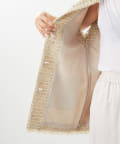 ■ネックライン、アームホール、裾をフリンジ仕様にすることでカジュアルさをプラス。