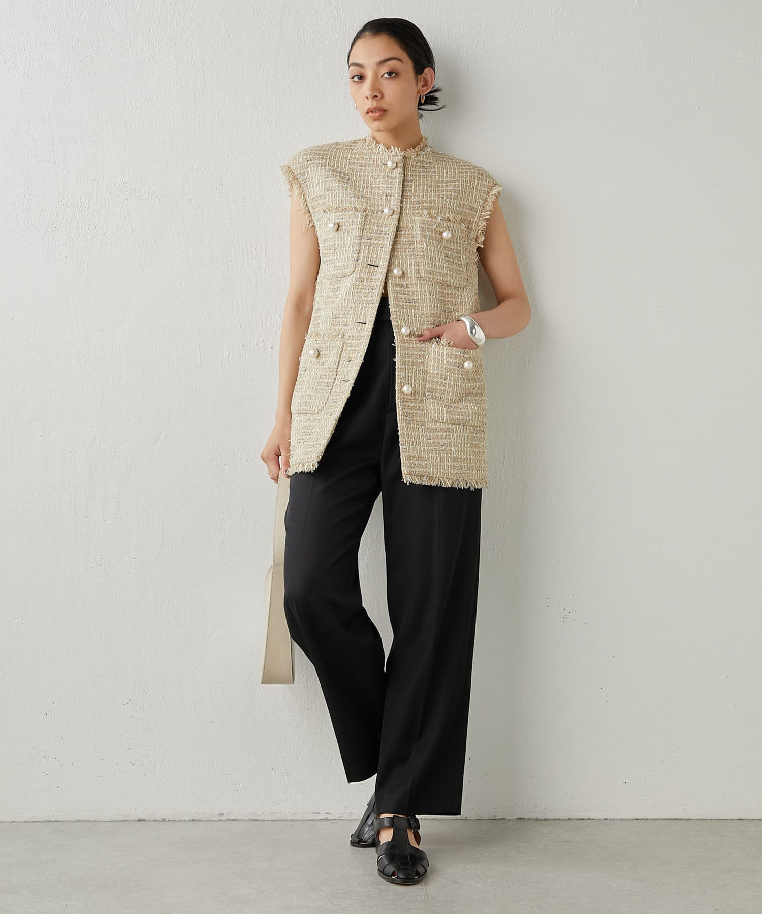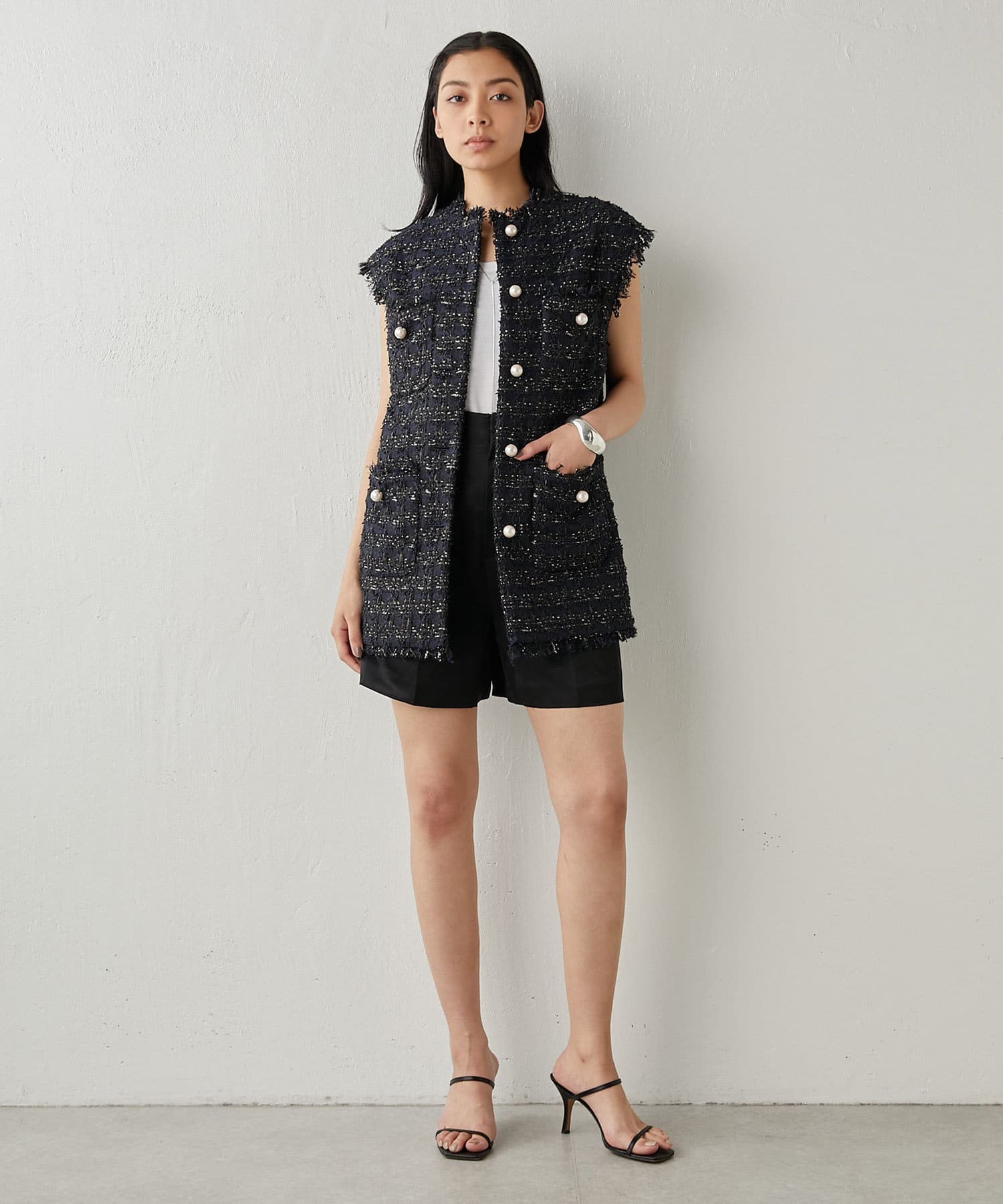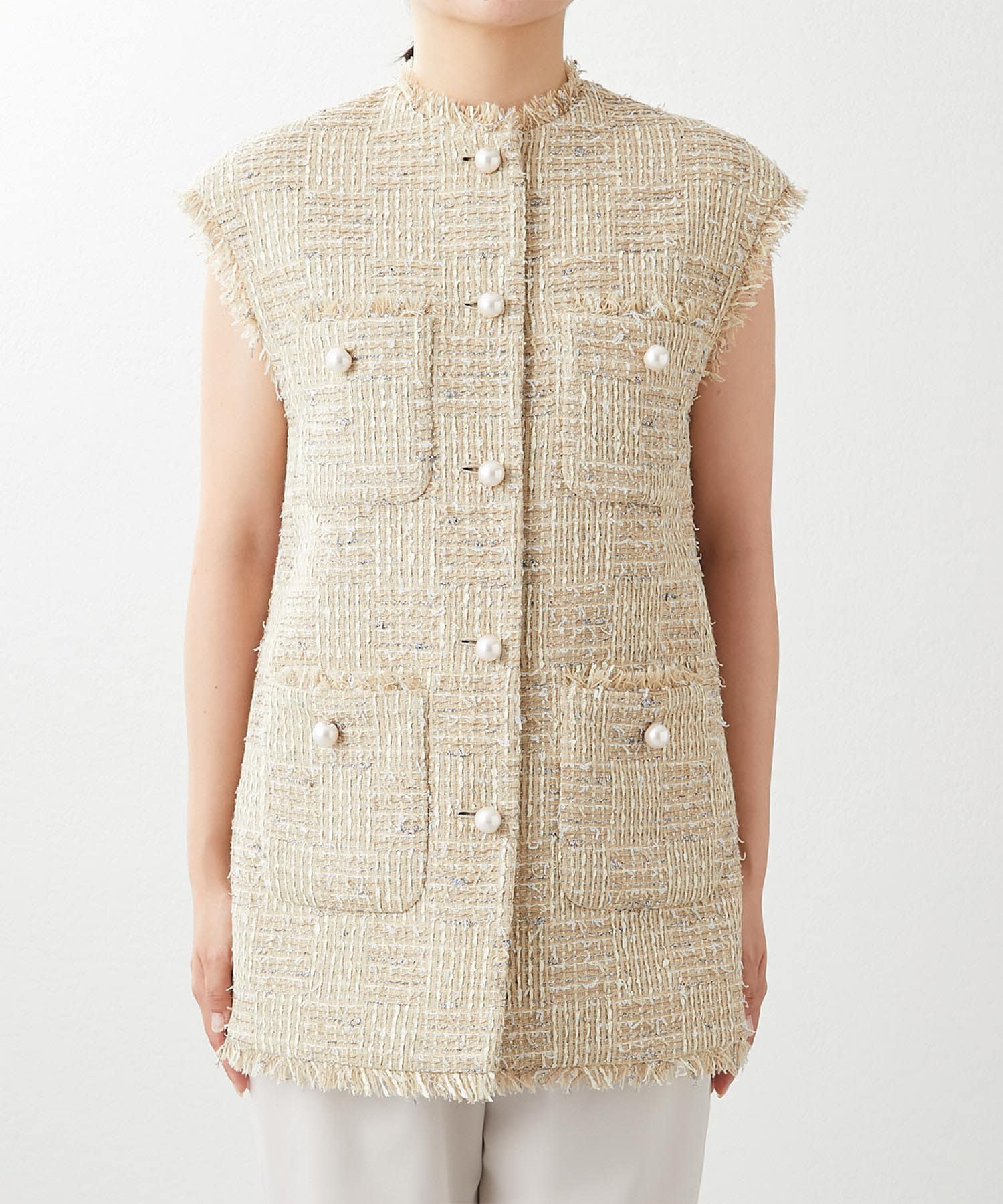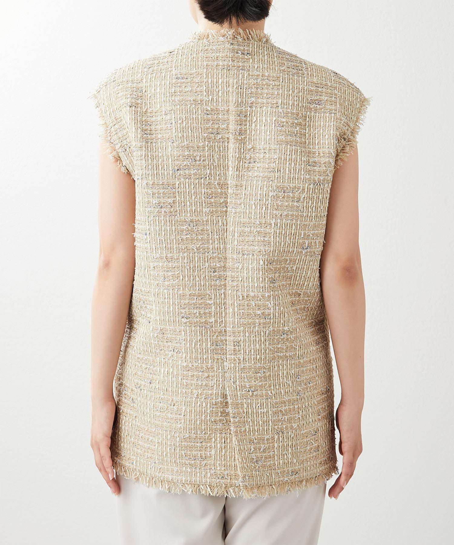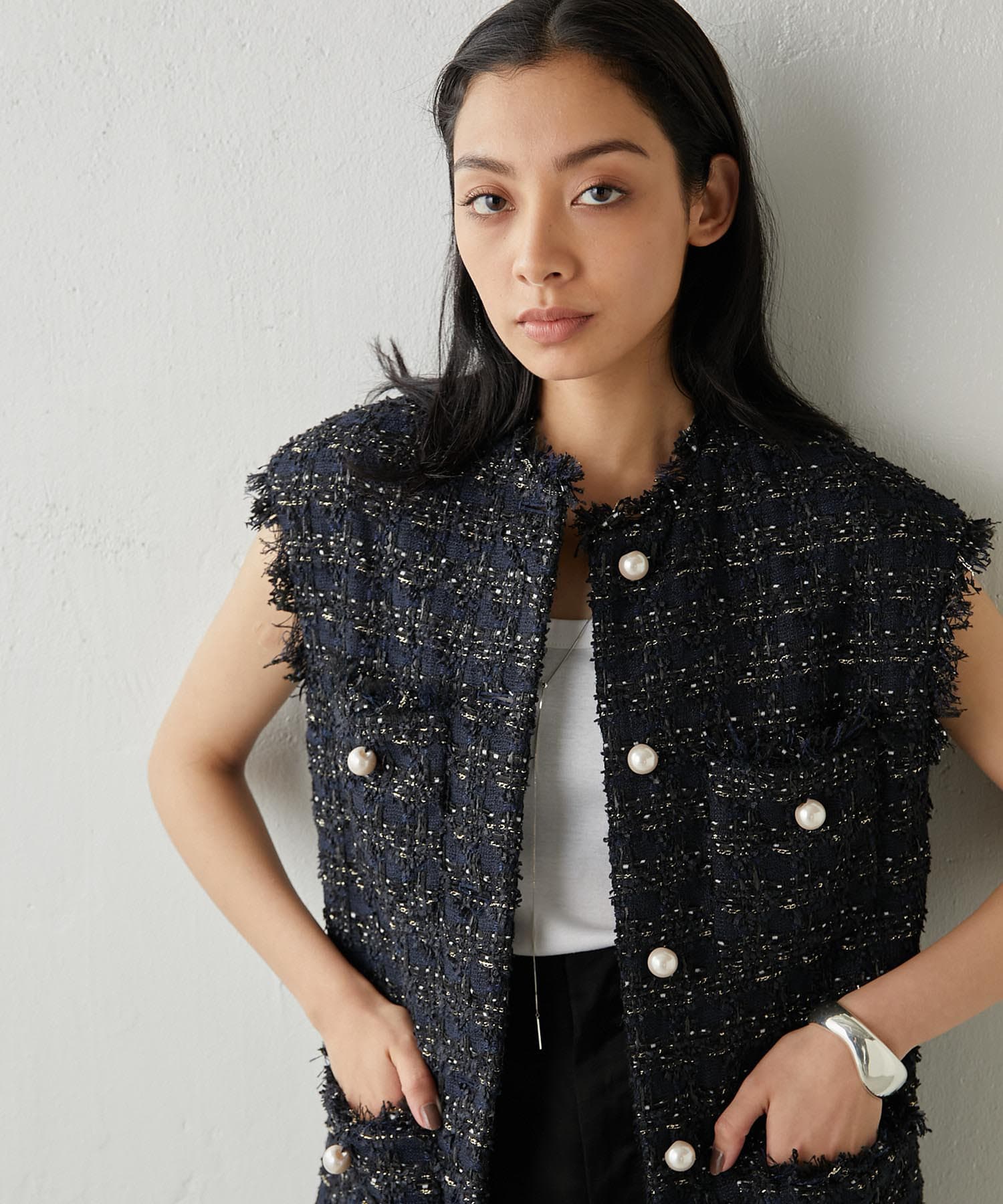 装いがクラシカルなムードに仕上がる、上質なツイードジレ