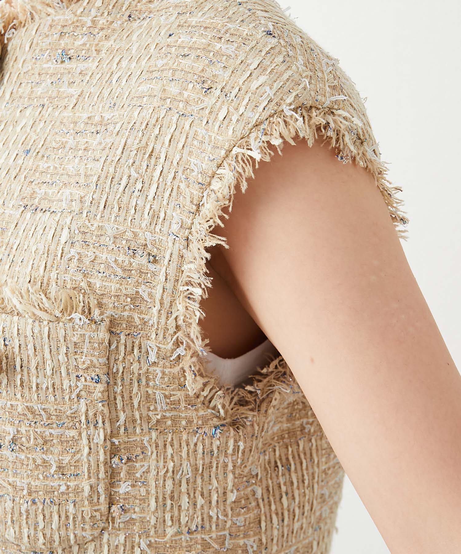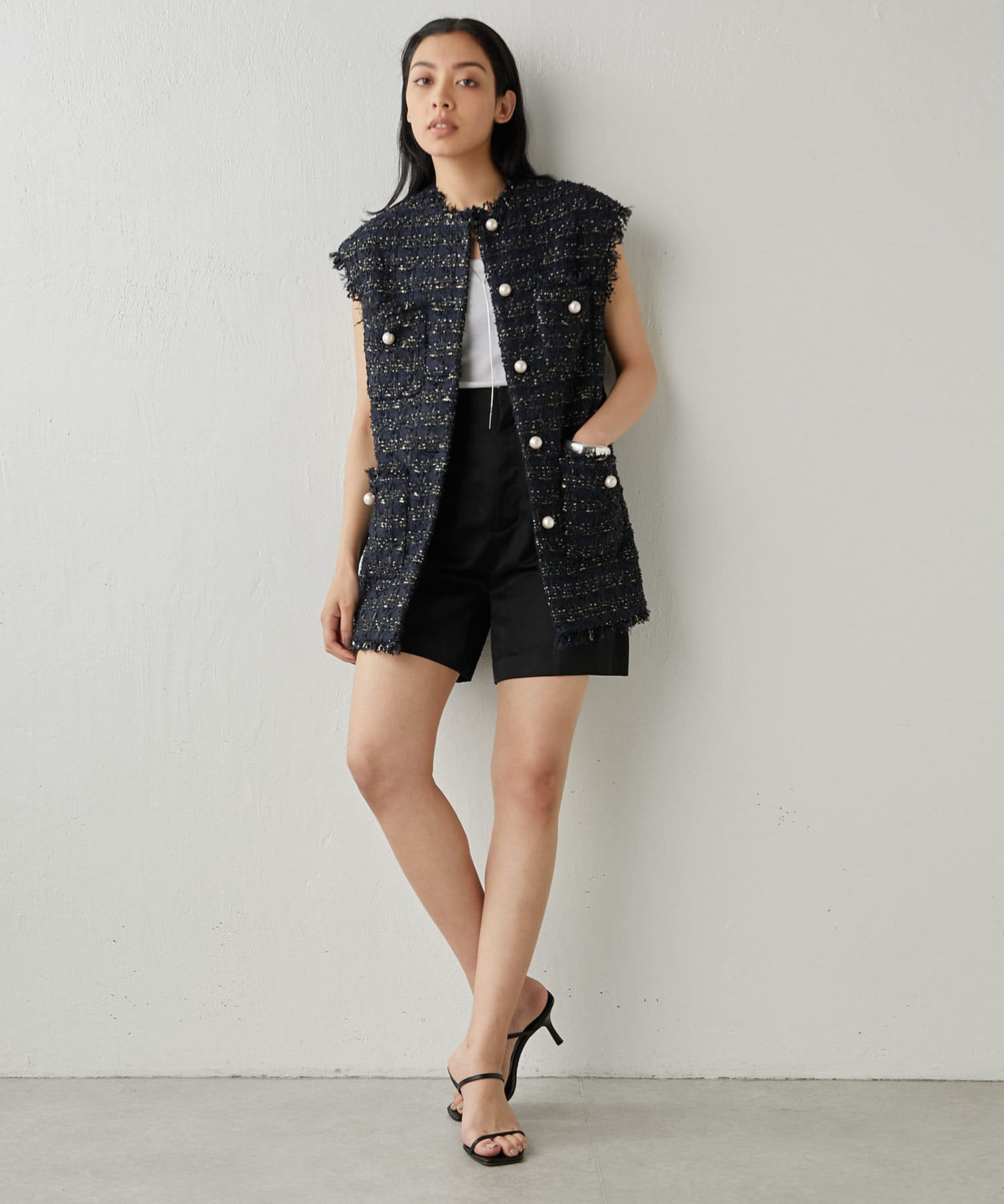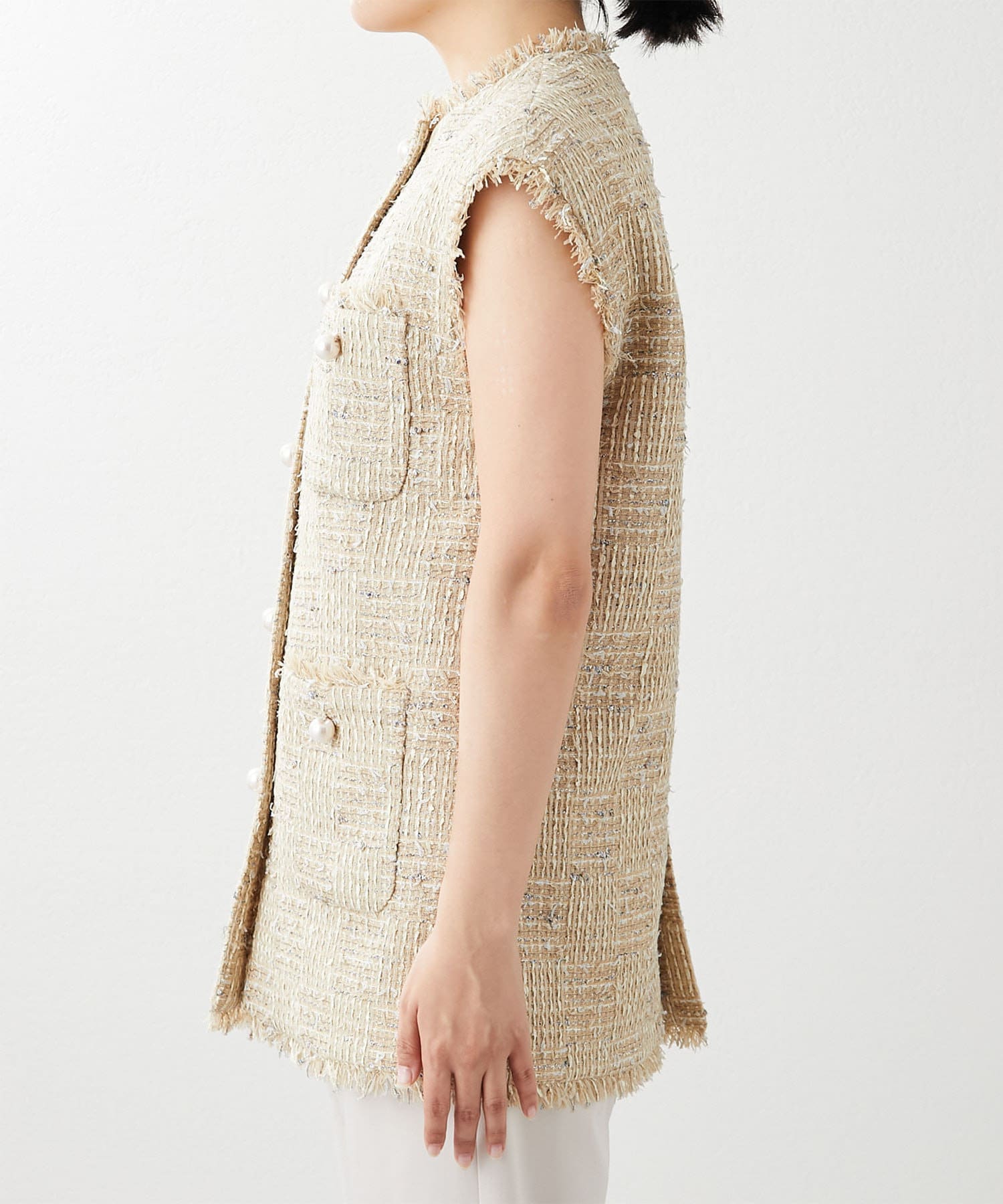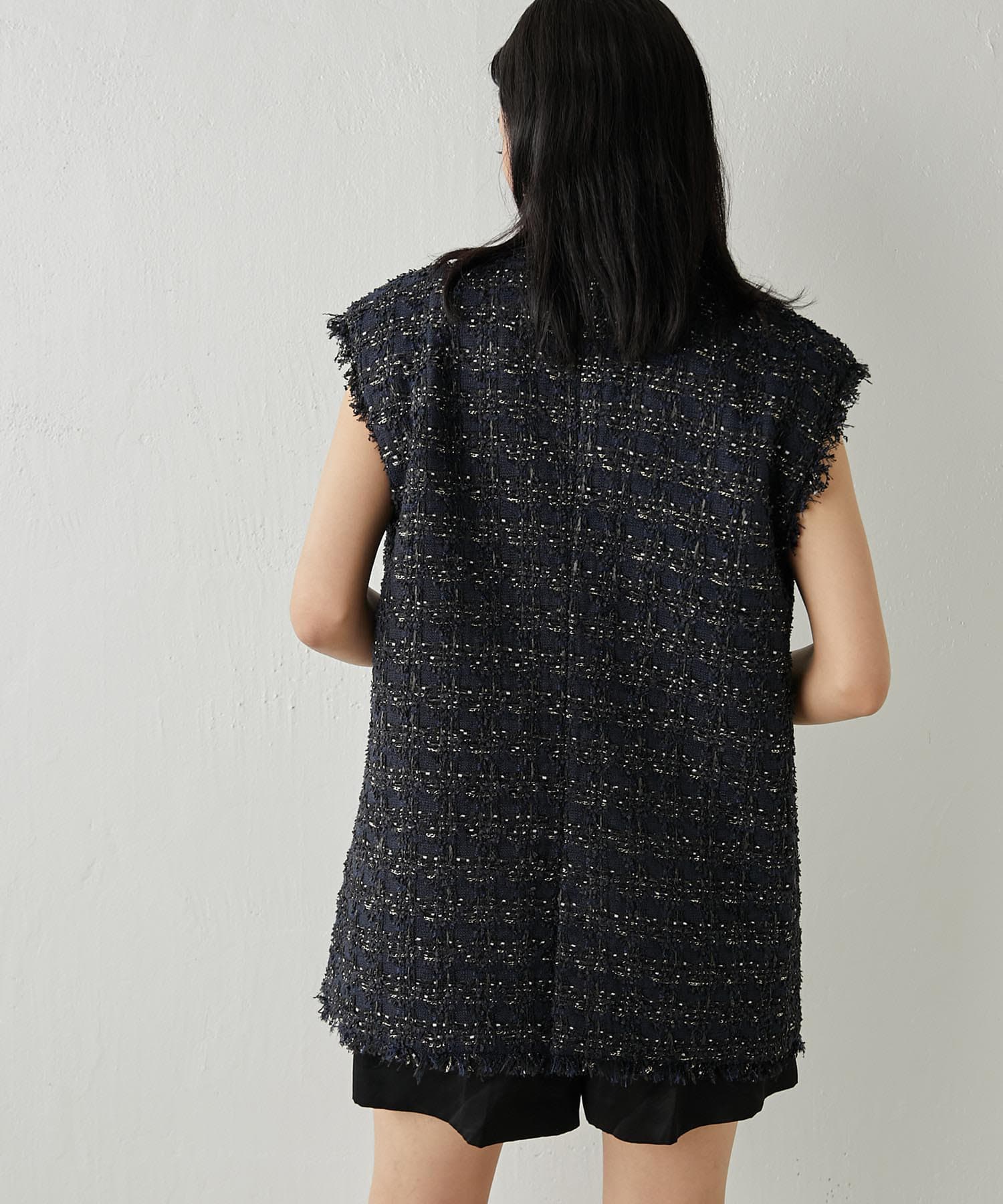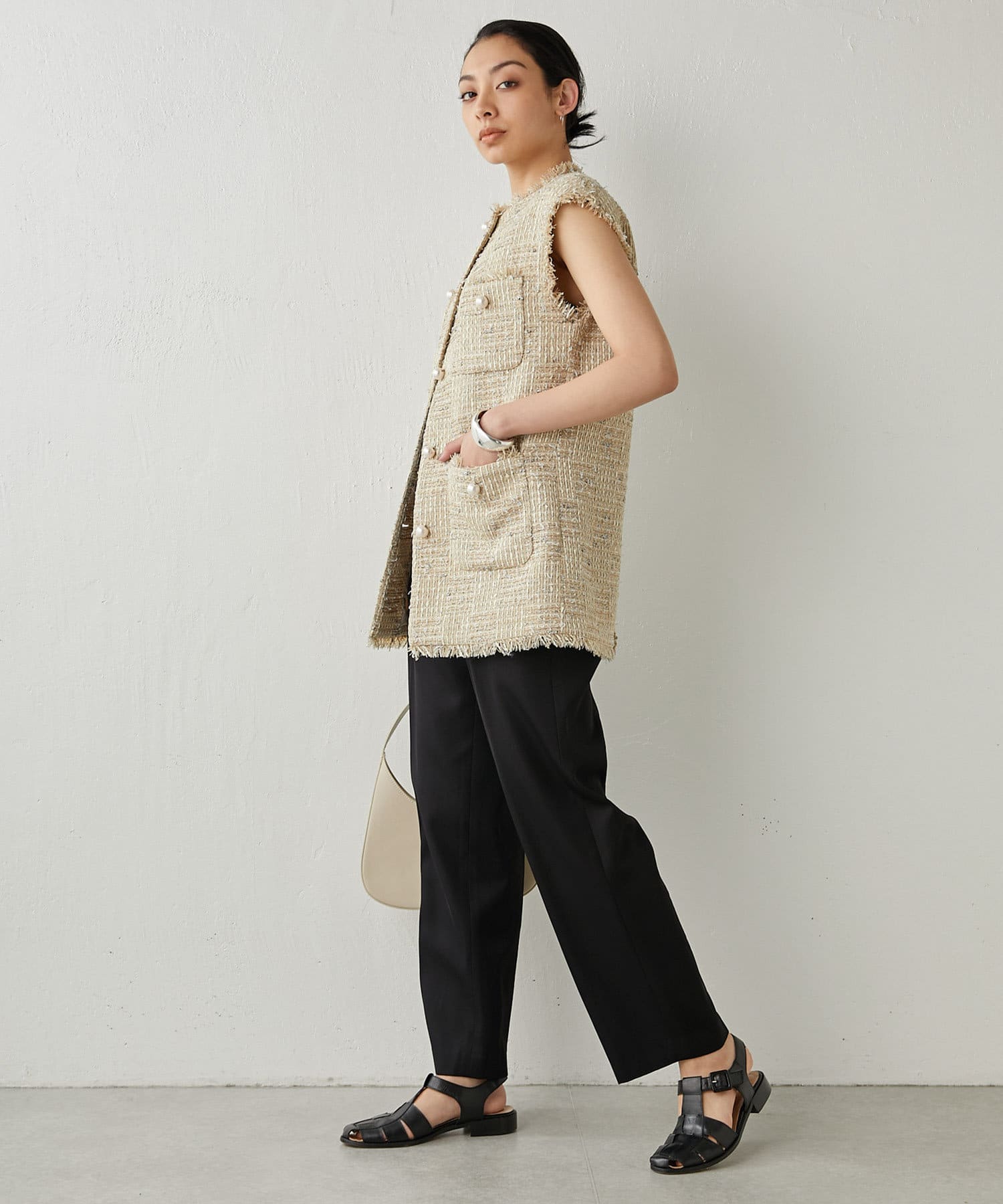 装いがクラシカルなムードに仕上がる、上質なツイードジレ