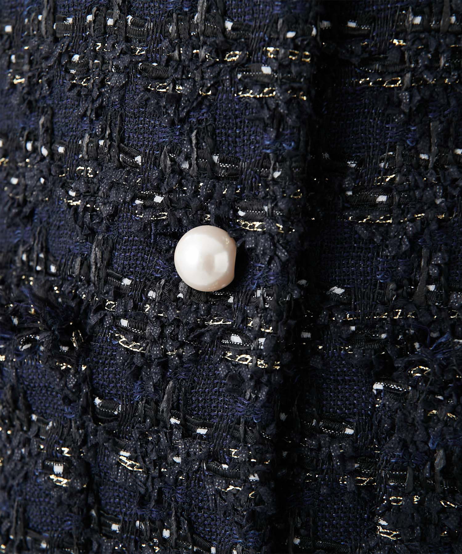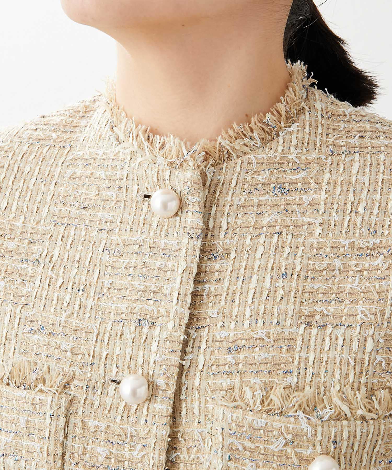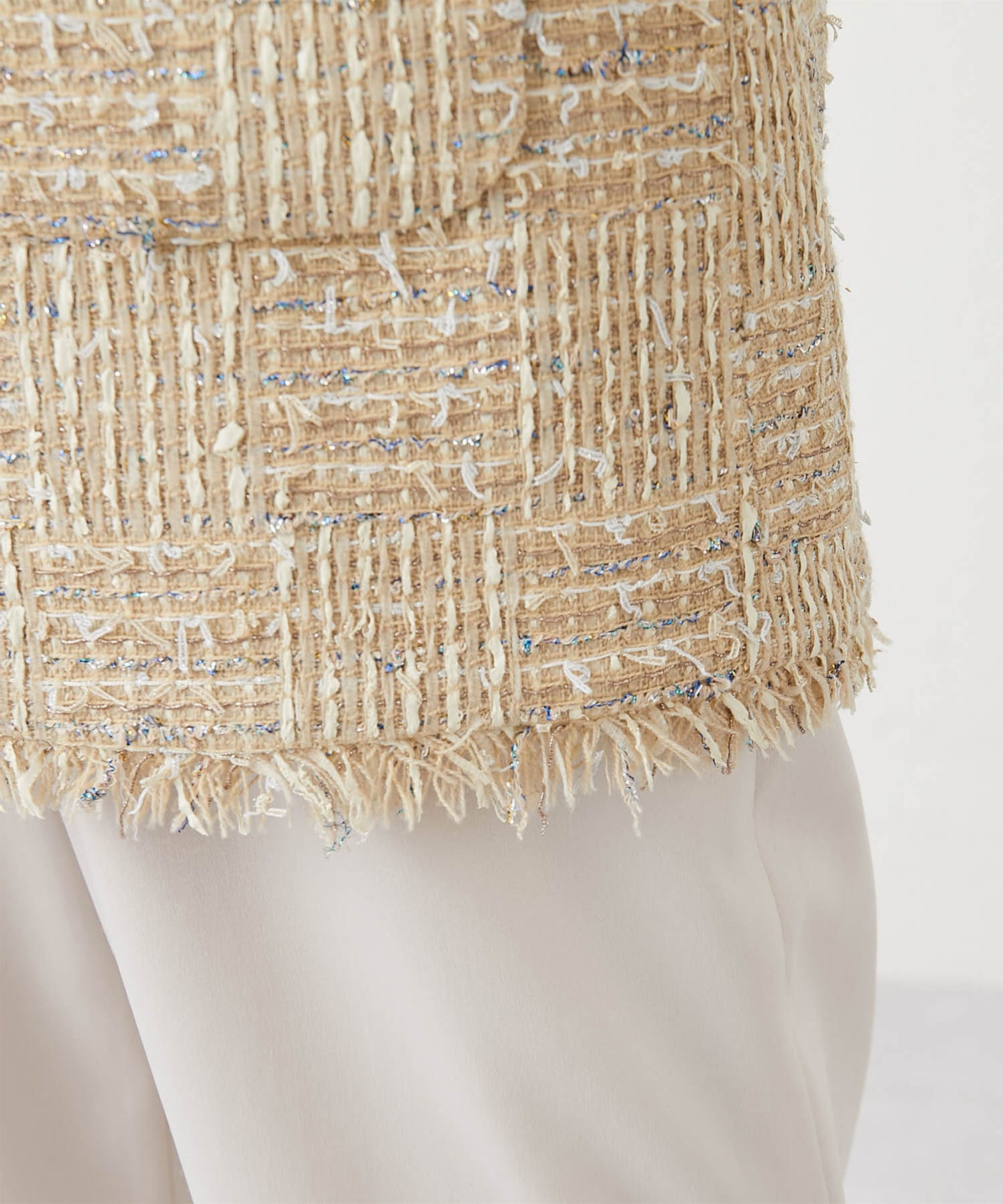 ■上品なツイードの雰囲気を生かし、きれいめな印象に仕上げた一着。