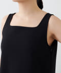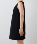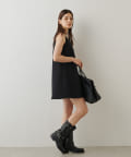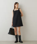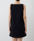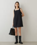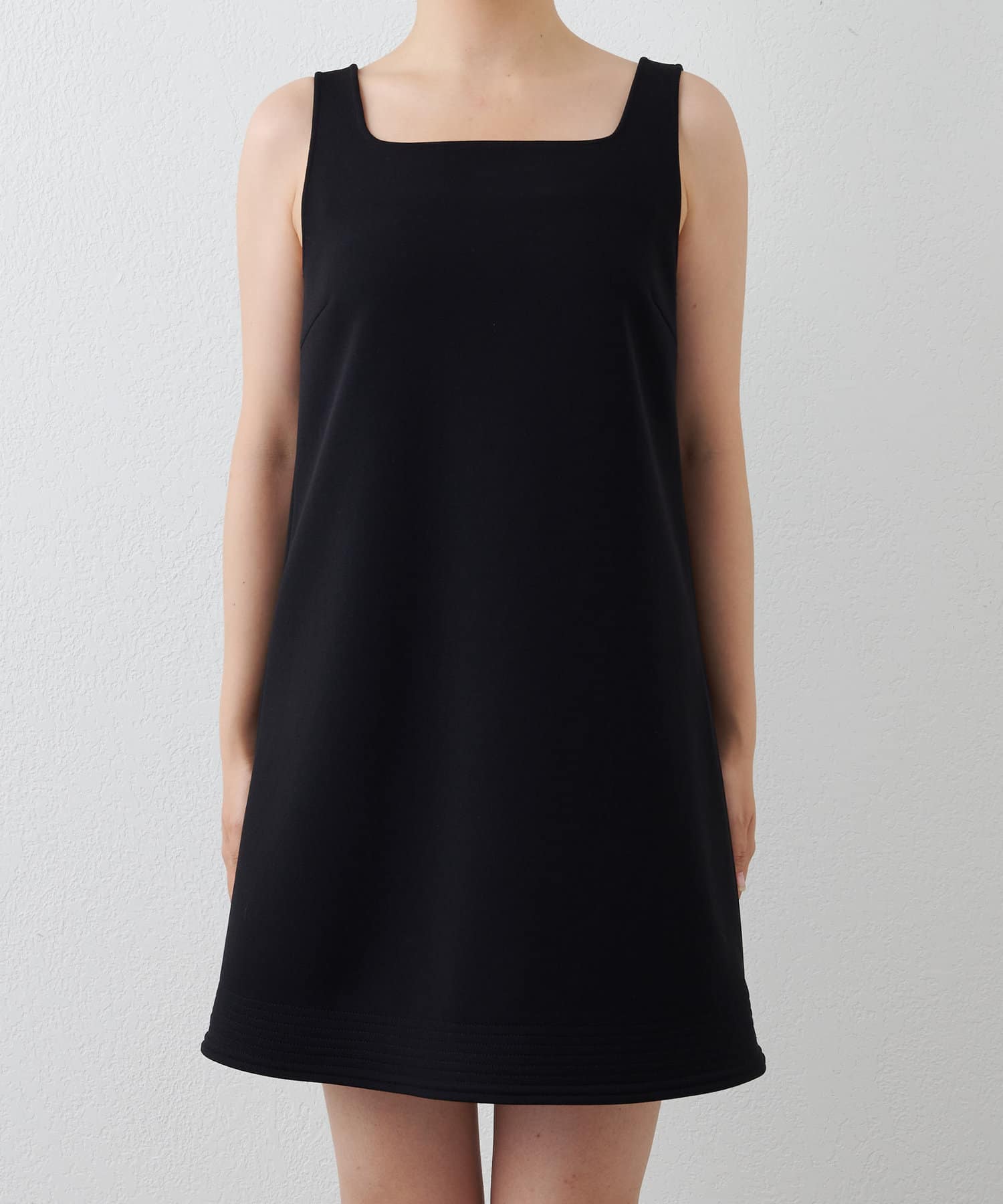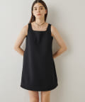 ■襟ぐりのカッティングとシルエットにこだわったミニドレスはヘルシーに一枚でも着用可能。