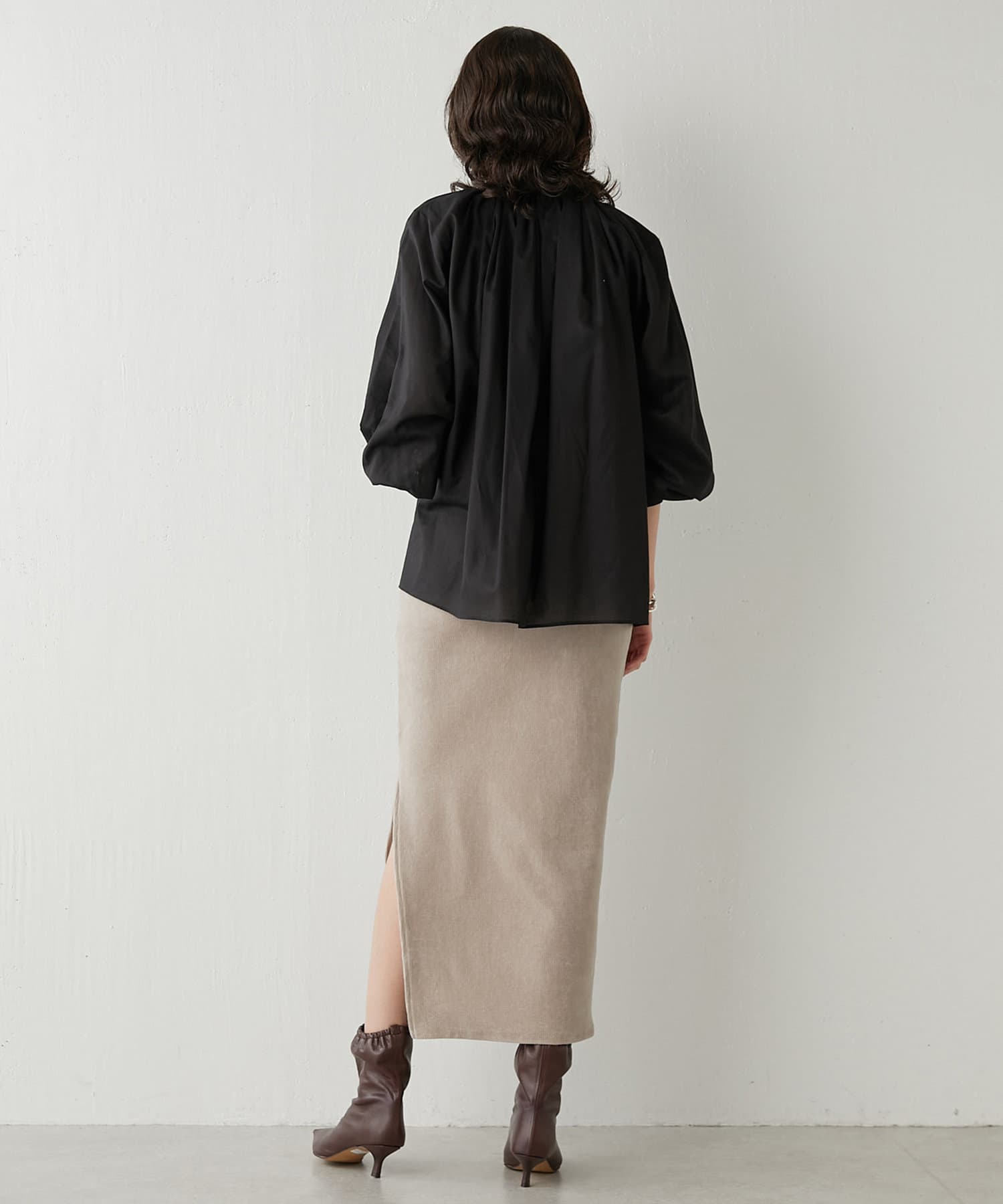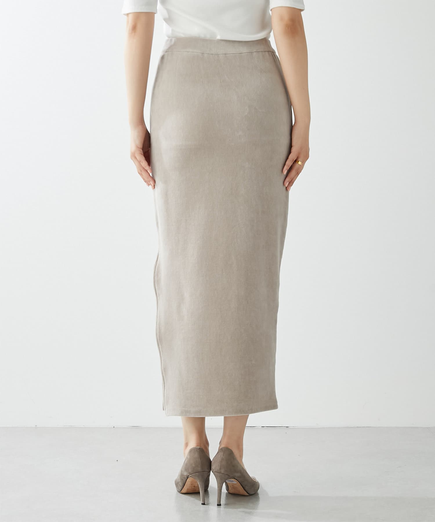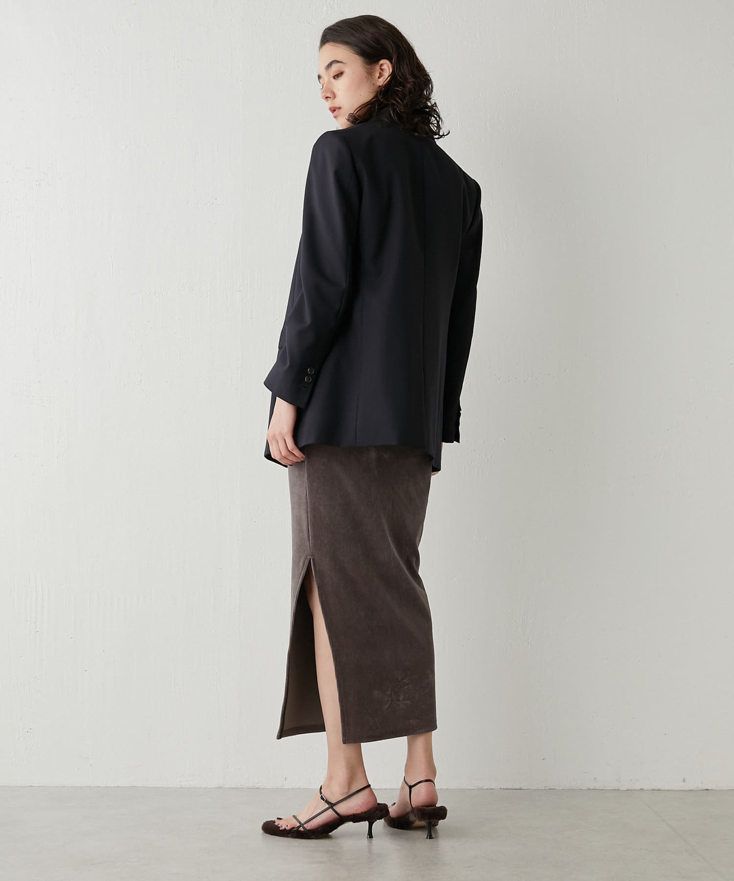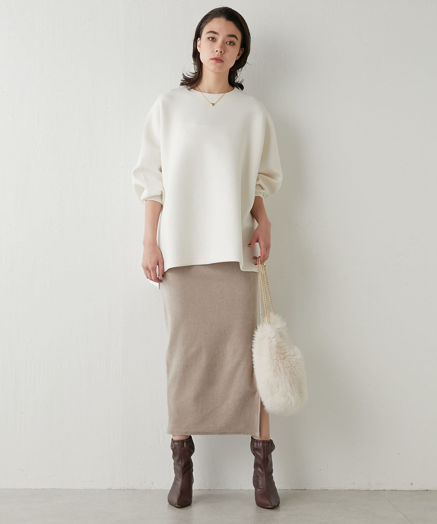 ■身体のラインを美しく見せるシルエットのタイトスカート。