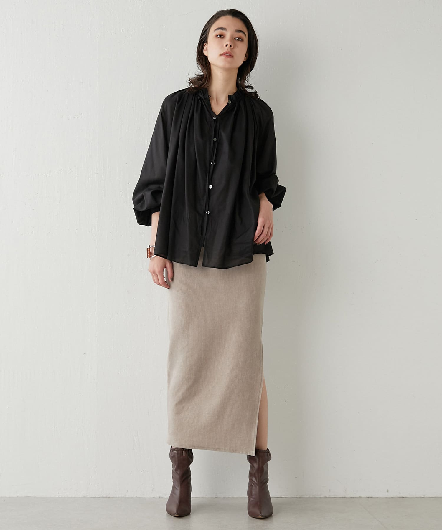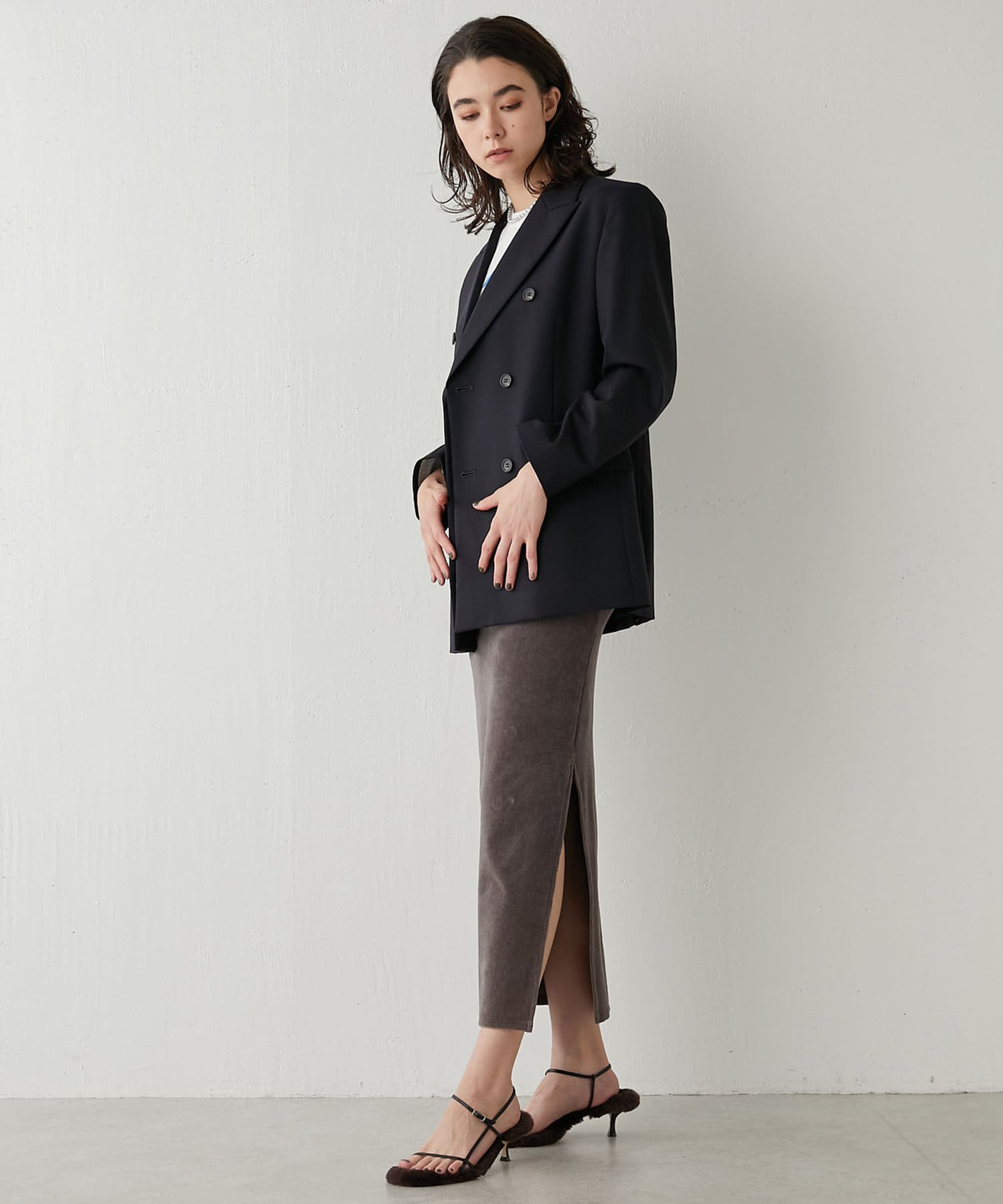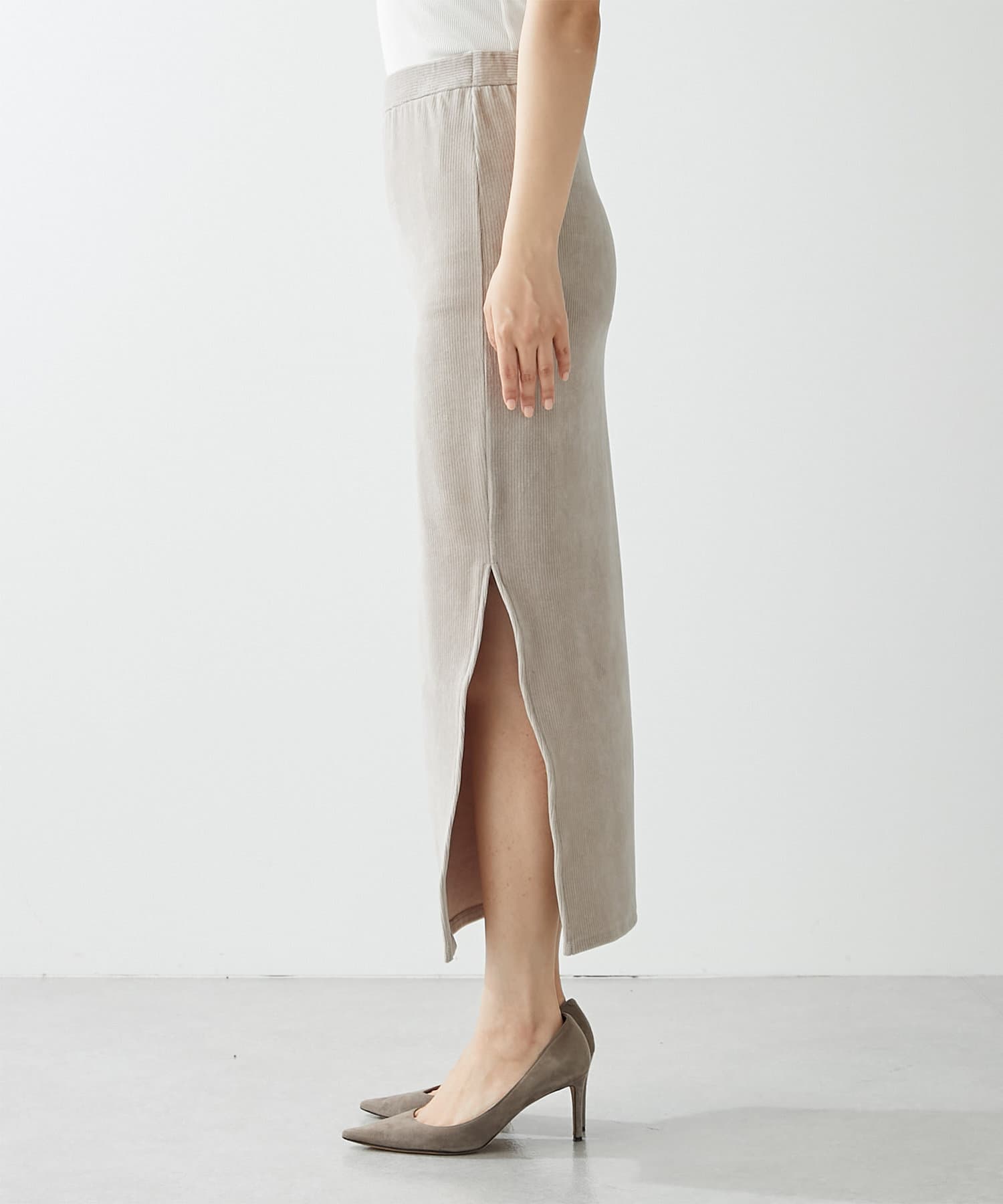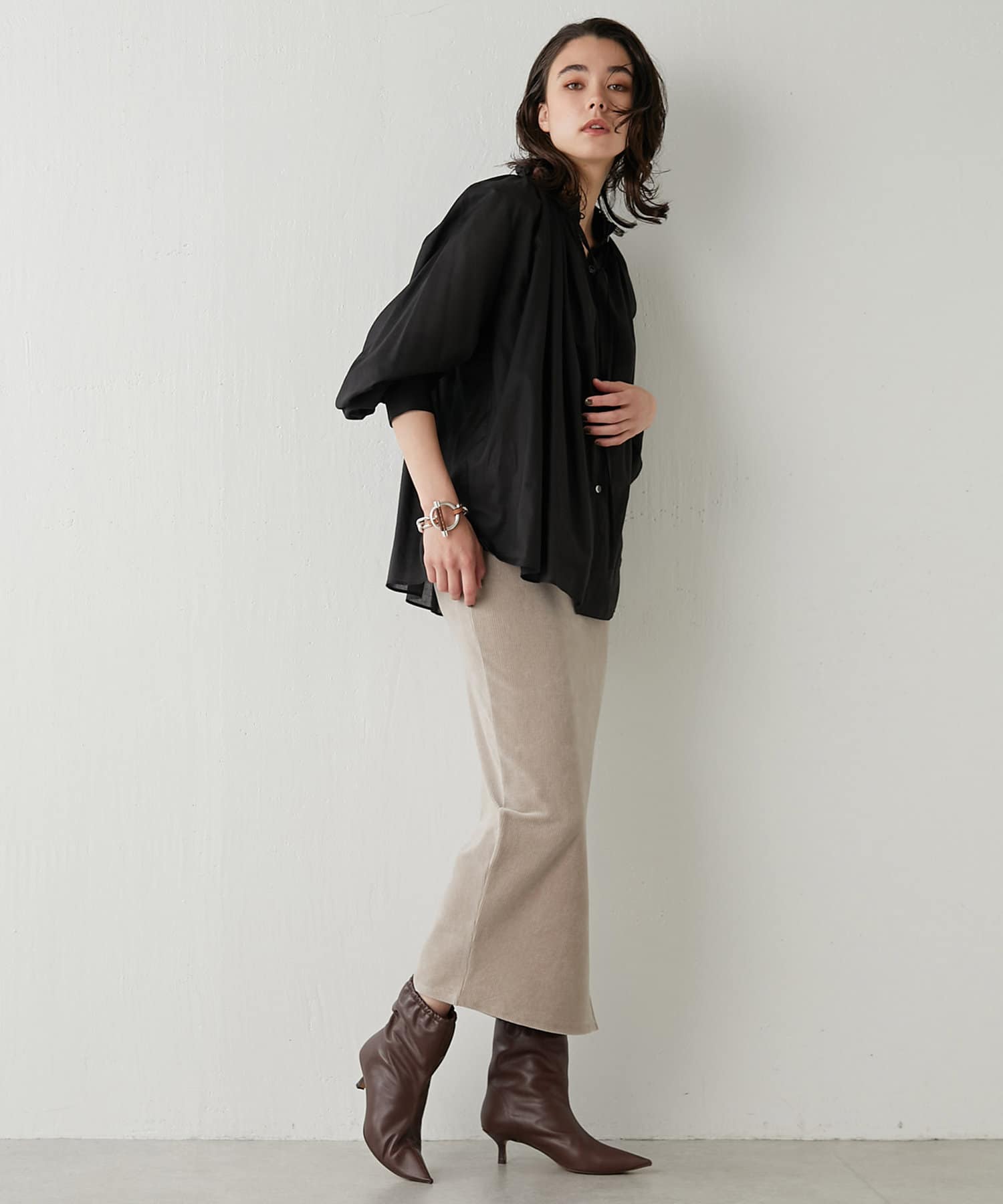 ■身体のラインを美しく見せるシルエットのタイトスカート。