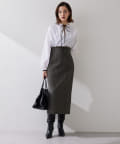暖かみのある素材感がシーズンムードを高めてくれるタイトスカート。私の身長体型で、38でジャストサイズでした。深めのスリット入りで歩きやすく、後ろ姿もきれいに見えますよ。ブーツを合わせても抜け感の出るスカートです。