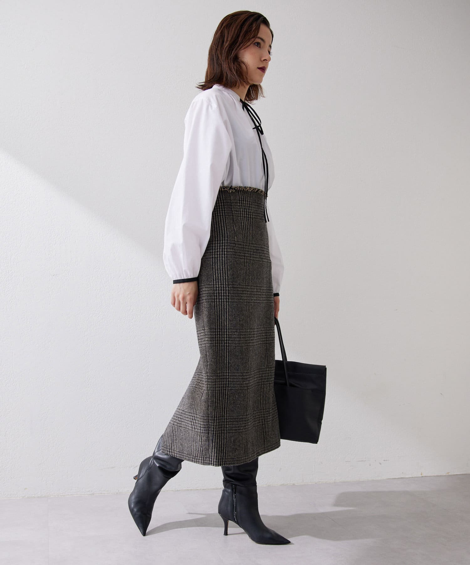 ■グレンチェック柄がクラシカルな雰囲気のタイトスカート。