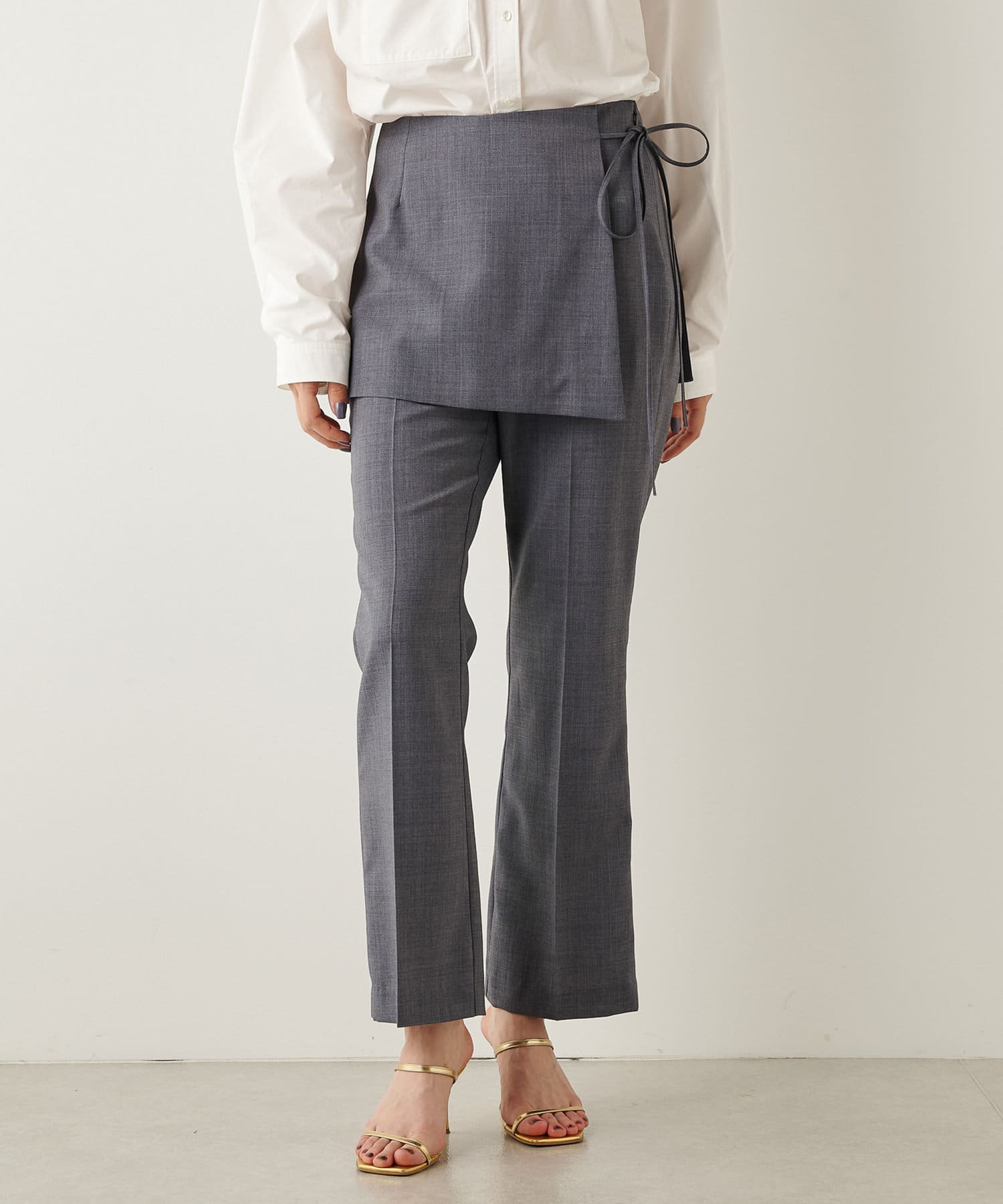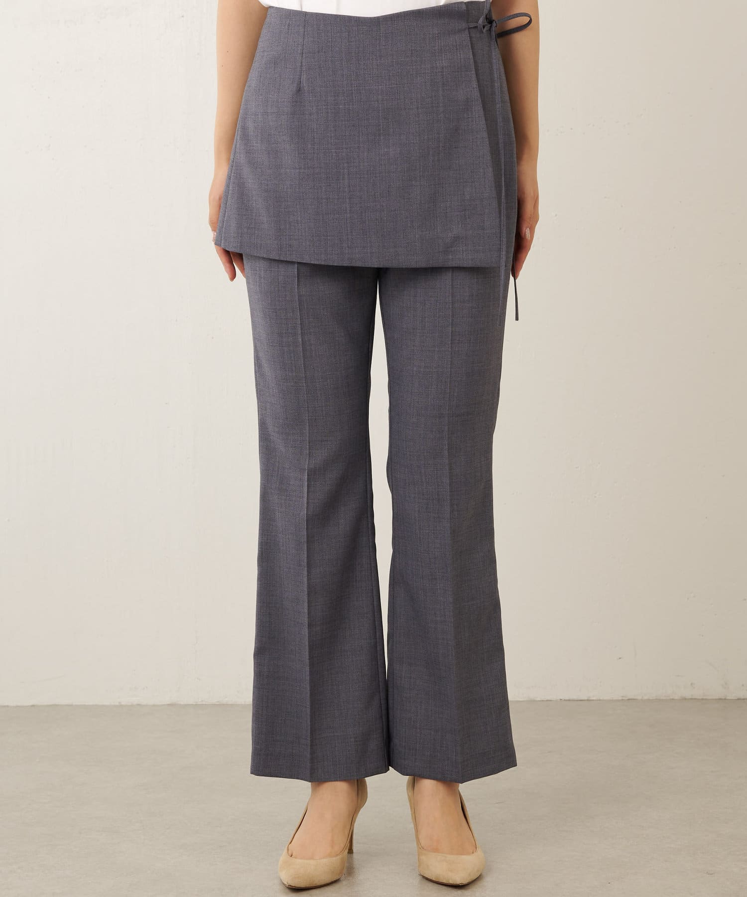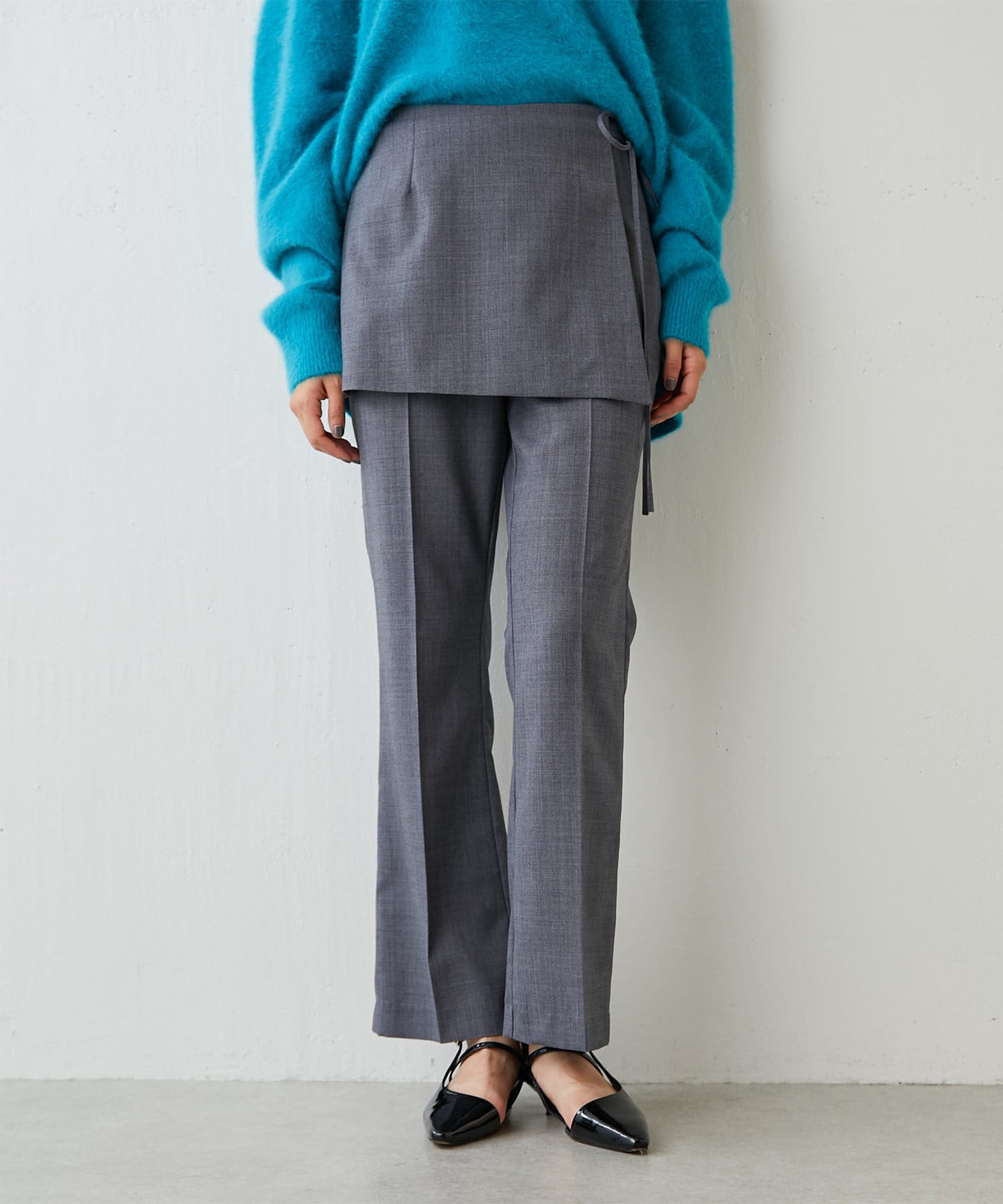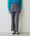 ■スカートを重ね履きしているようなデザインのドッキングパンツ。