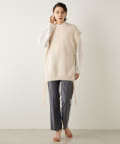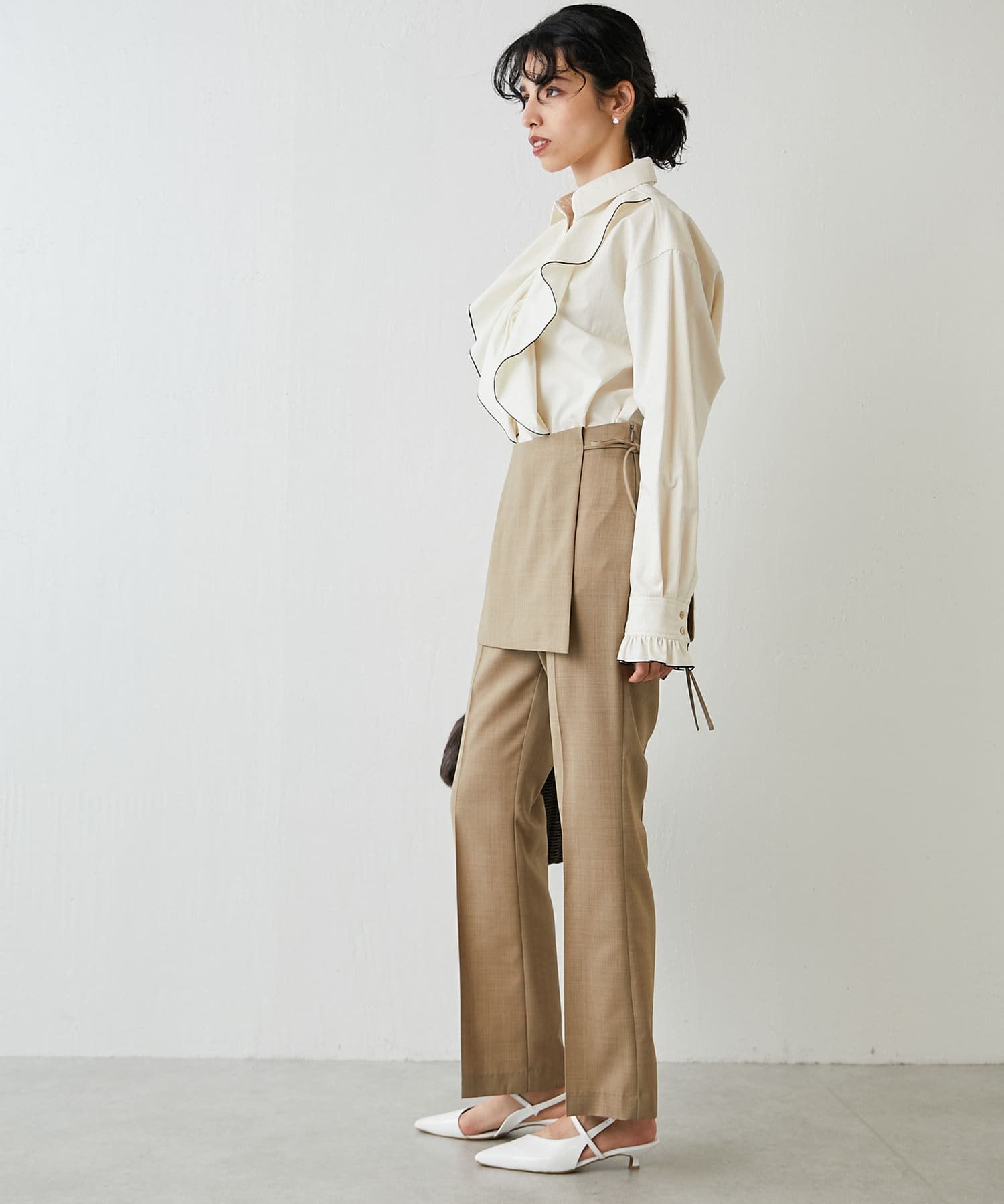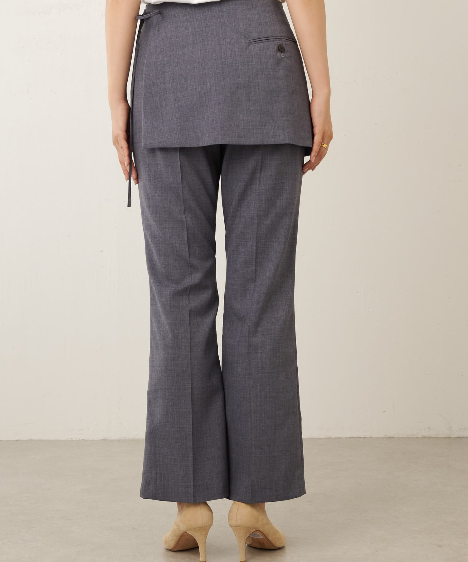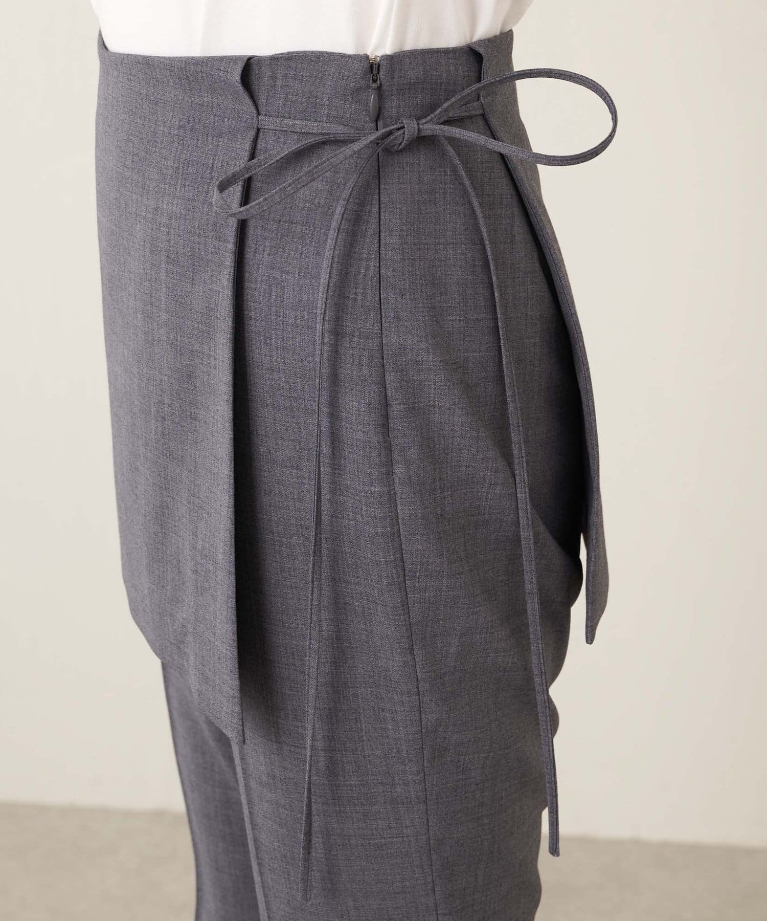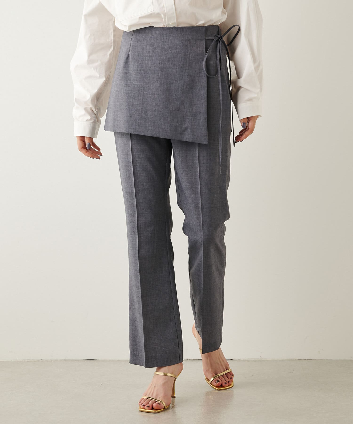 ■スカートを重ね履きしているようなデザインのドッキングパンツ。