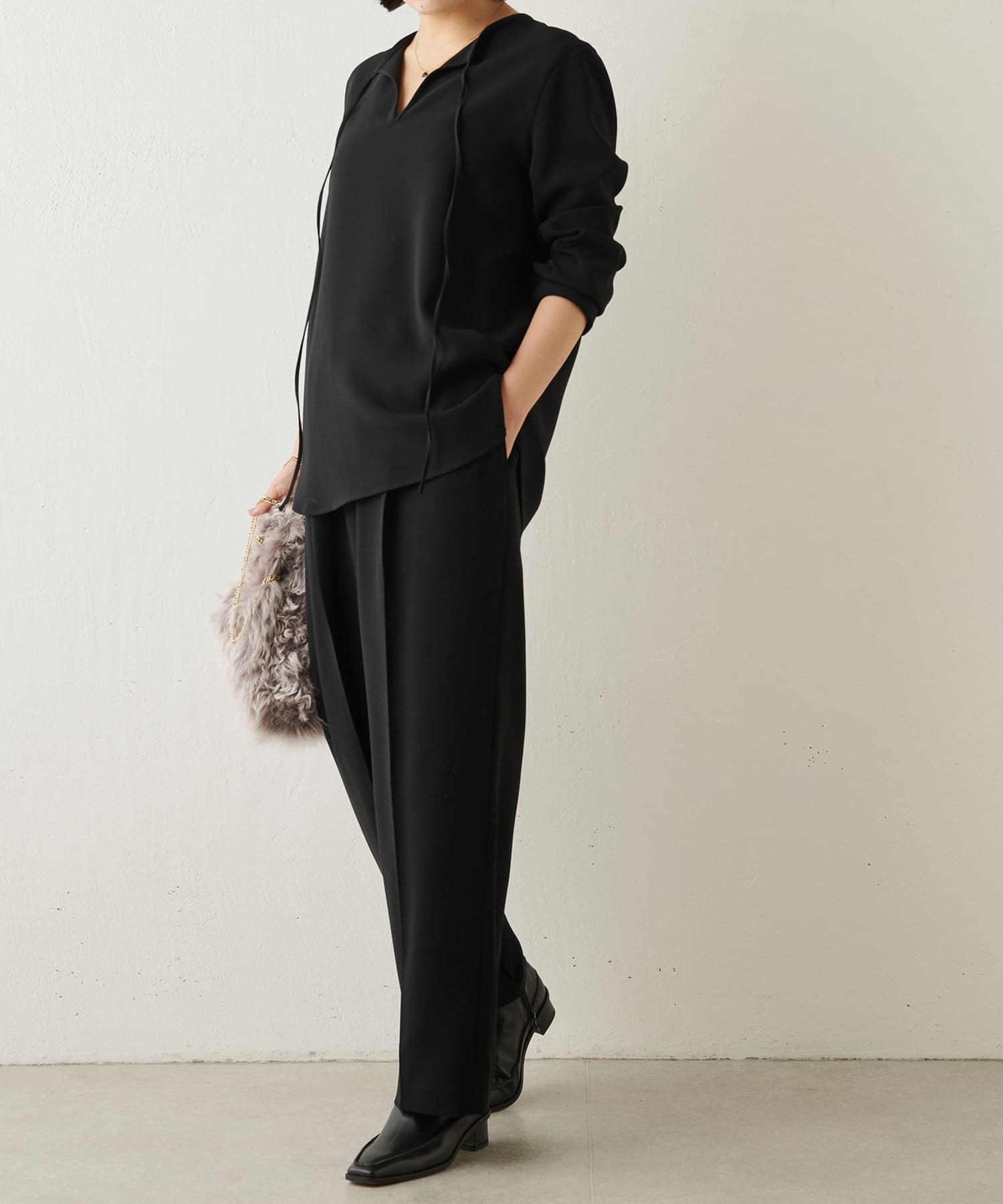 ブラック:オンオフ問わずに着回しやすいベーシックなブラック。