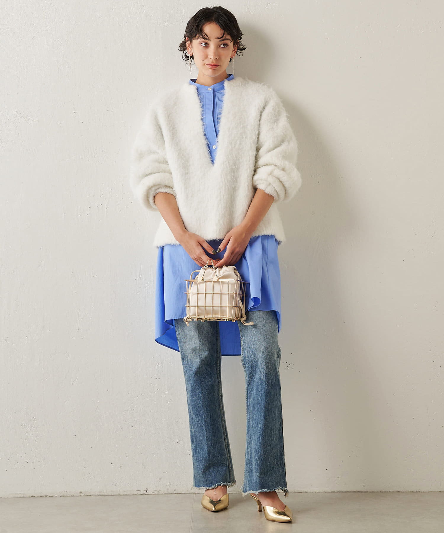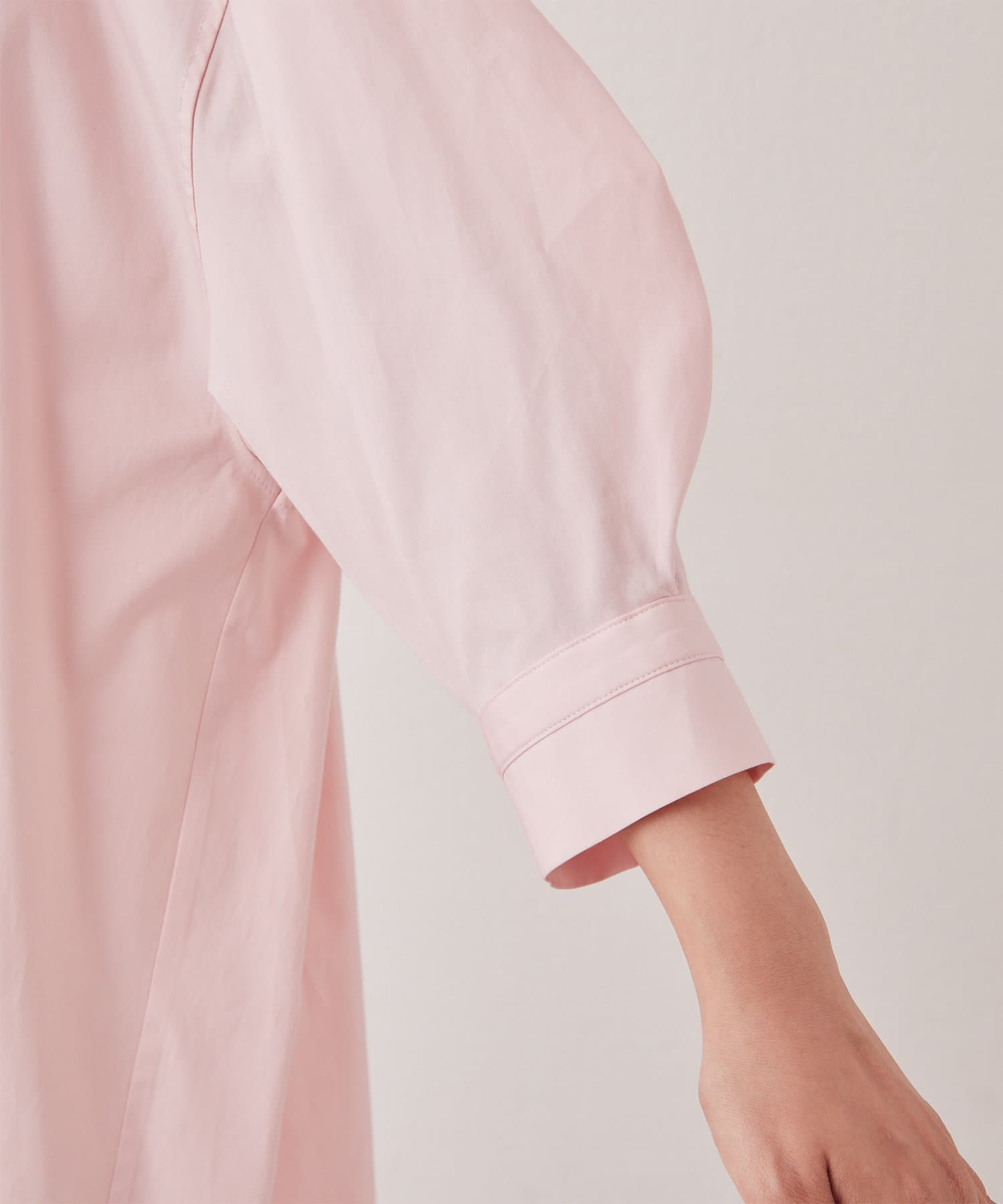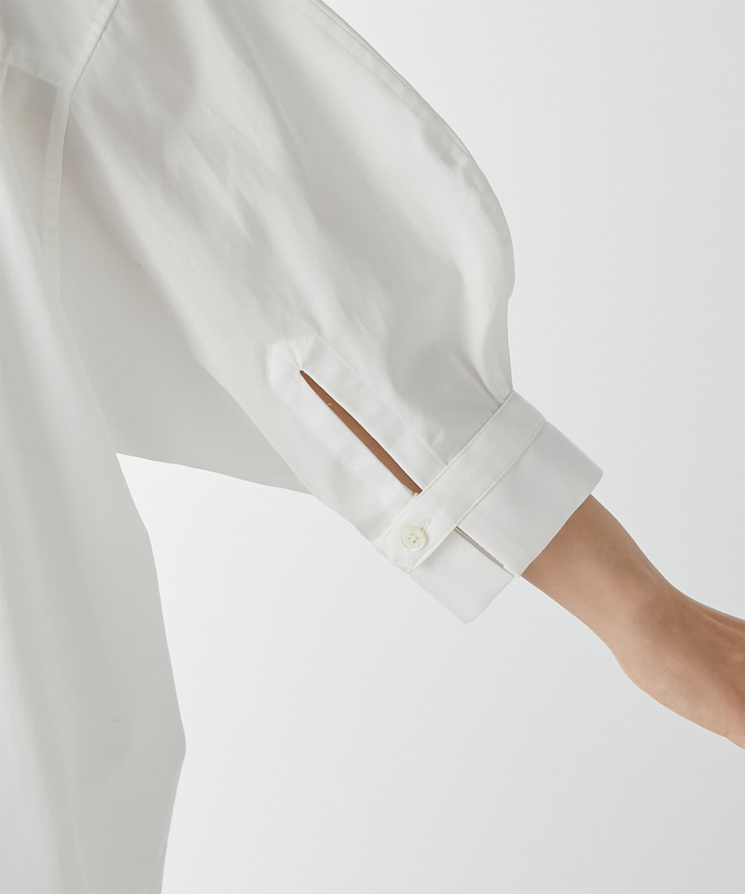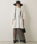■ドロップショルダーが華奢見えを叶え、手首の見える袖丈が女性らしさをプラス。
