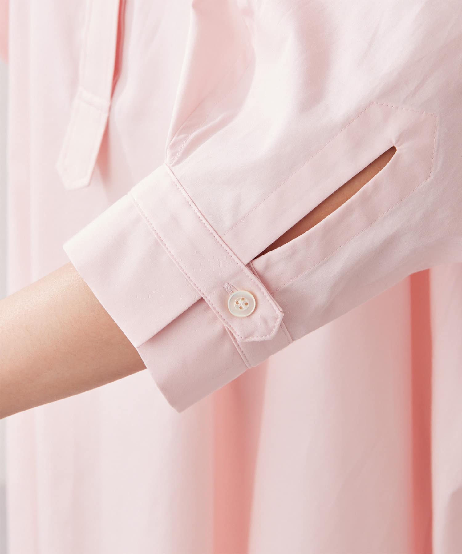 袖丈は肘が隠れるくらいです。小柄な方はワンピースとしても着用可能です。
