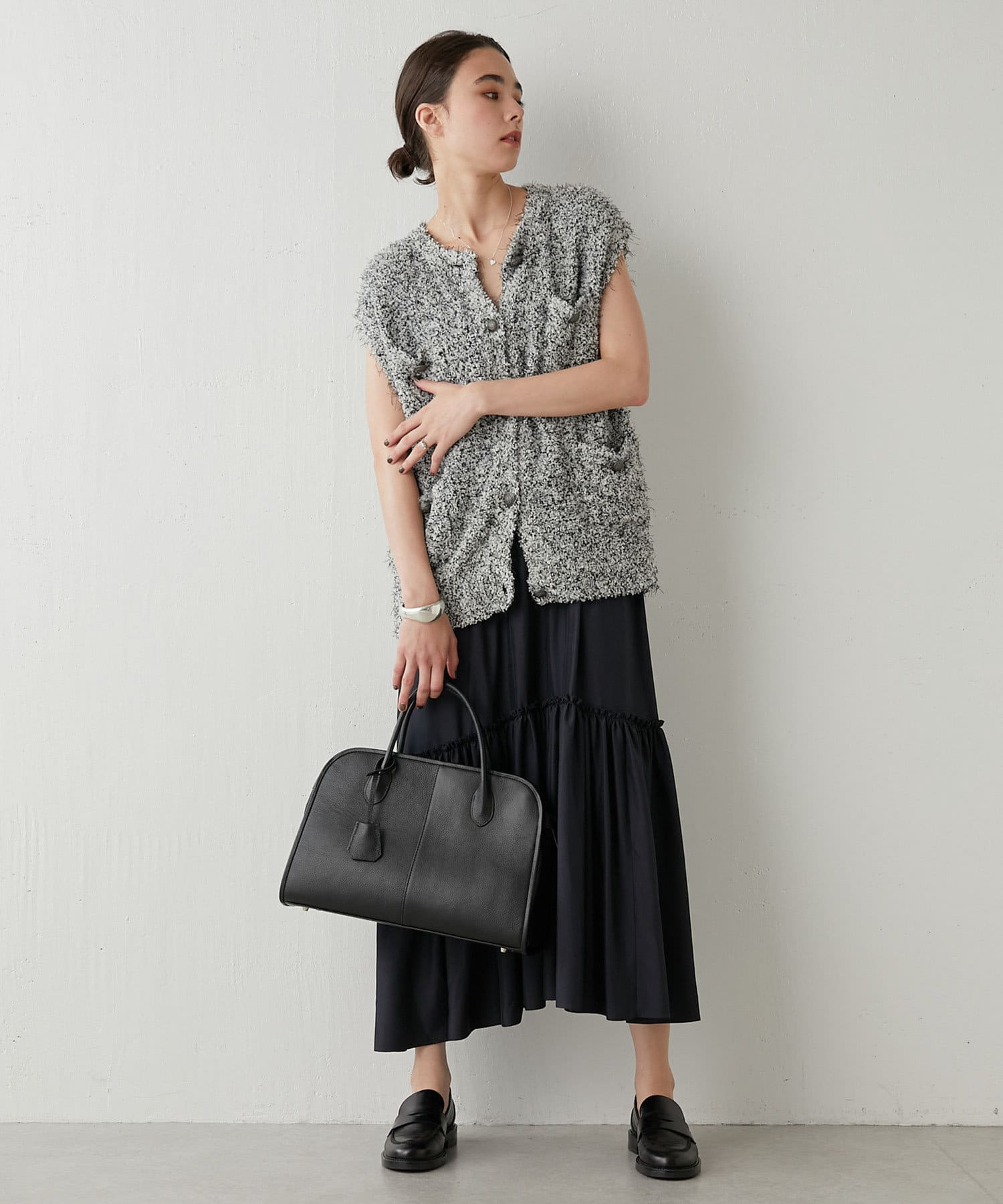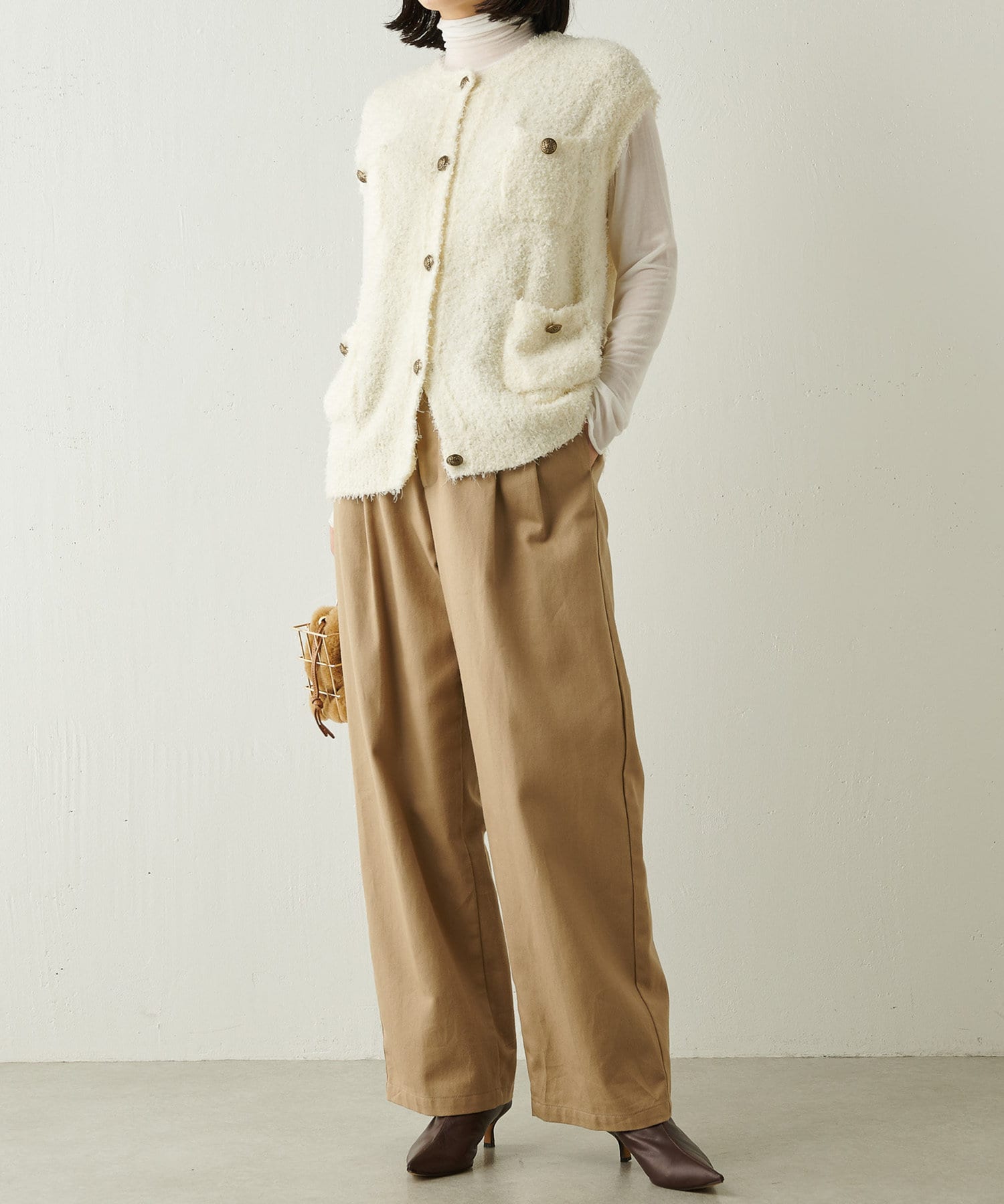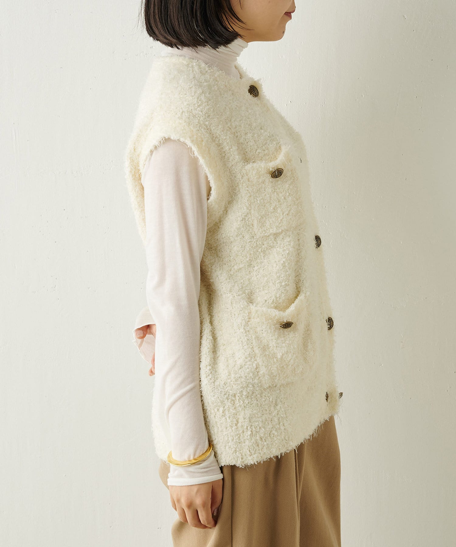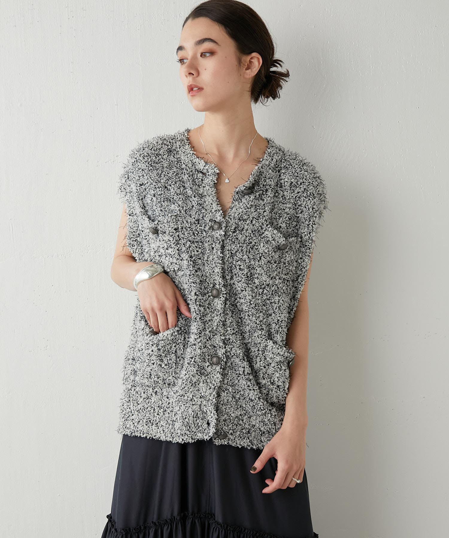 着こなしの幅を楽しめる、表情豊かなツイードニットベスト