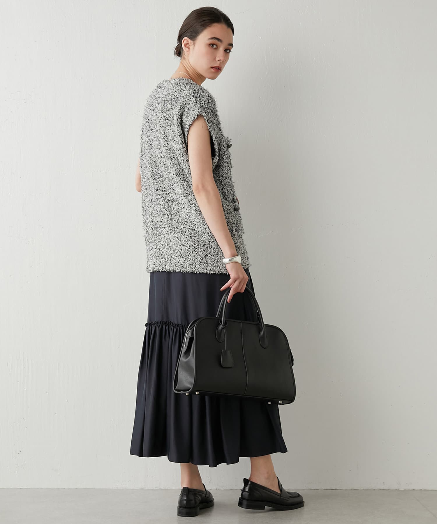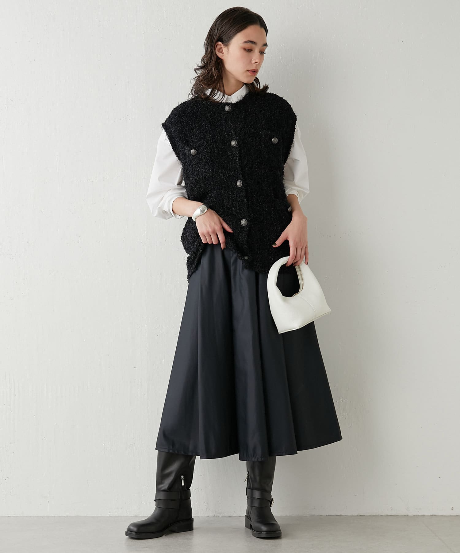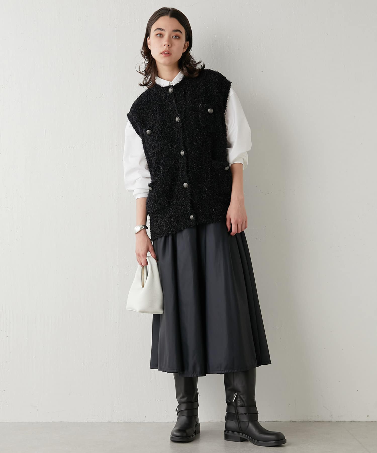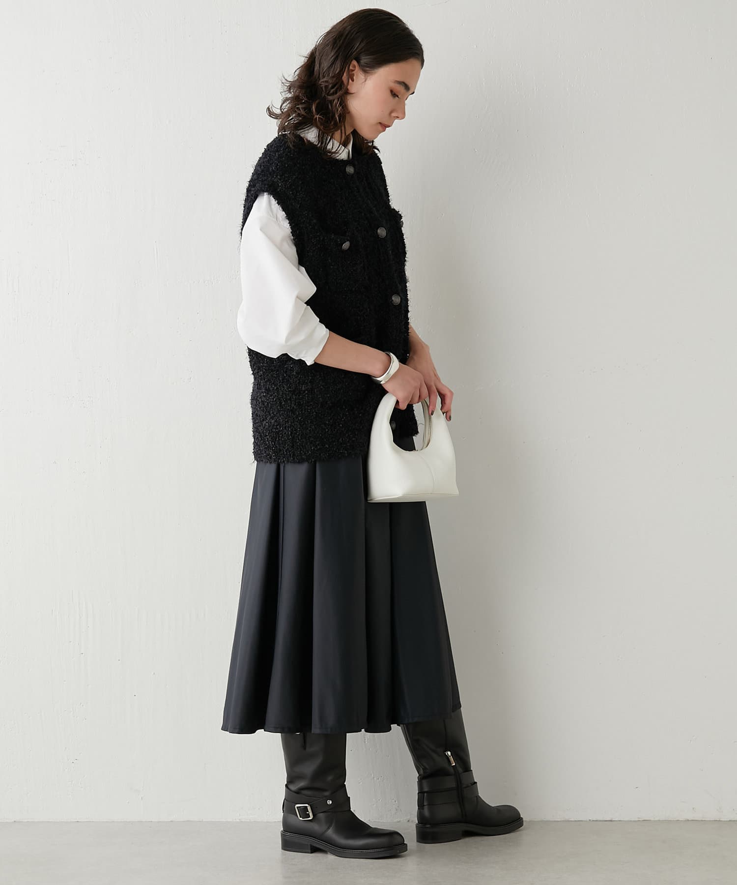 着こなしの幅を楽しめる、表情豊かなツイードニットベスト