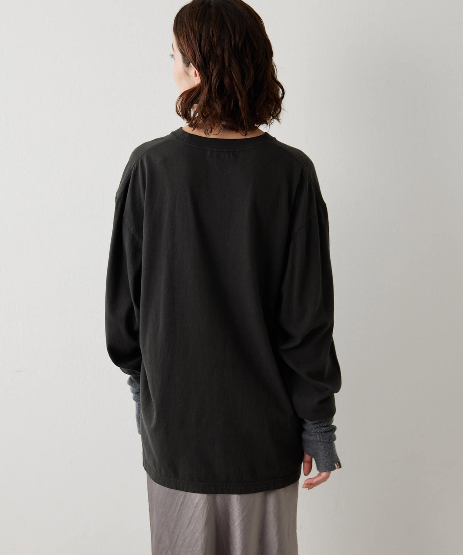 程よいヴィンテージ感のある風合いがコーディネートに抜け感を演出。オーバーサイズでも柔らかく薄手なので、ジャケットやカーディガンのインナーとしてもお使いいただけます。