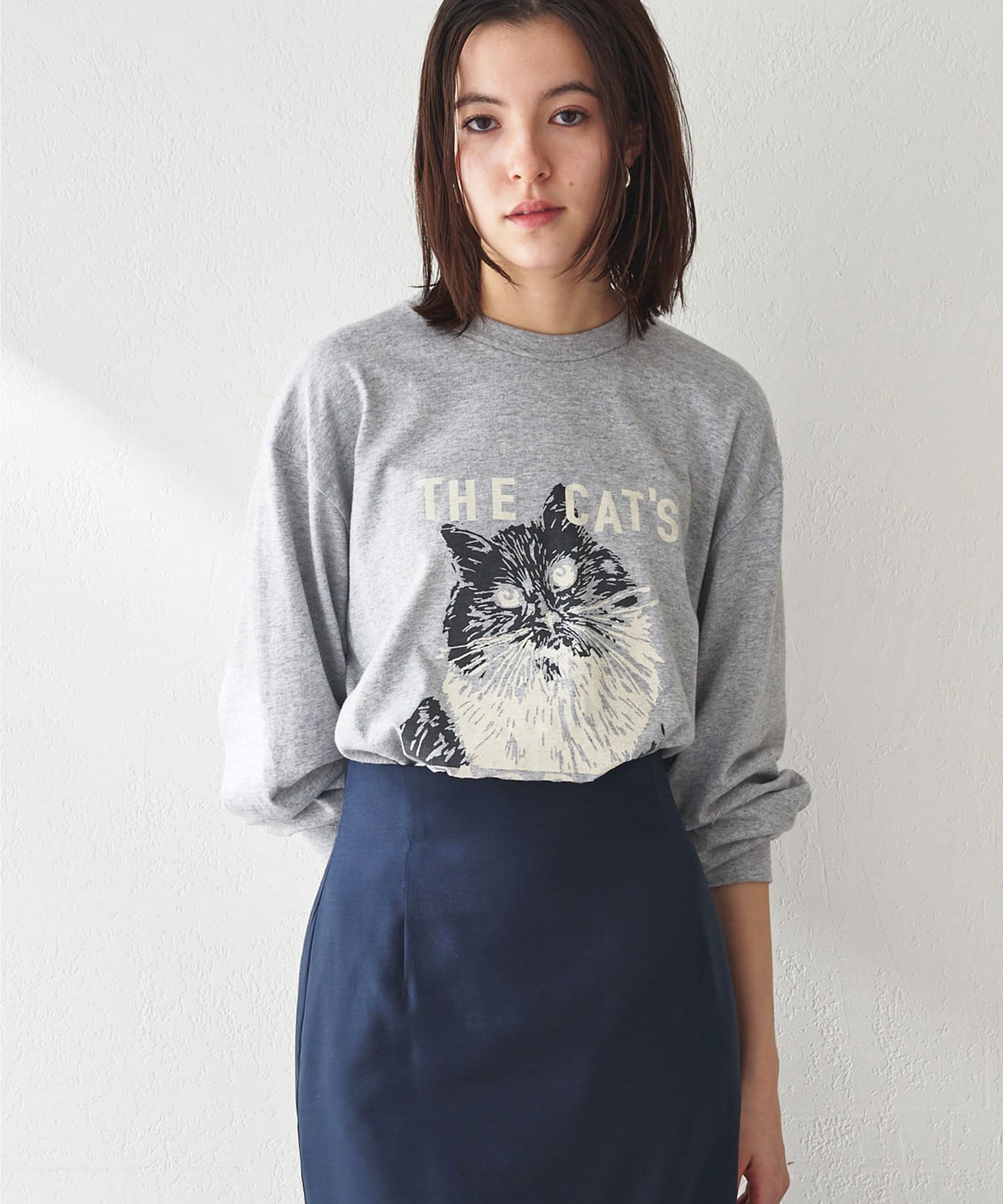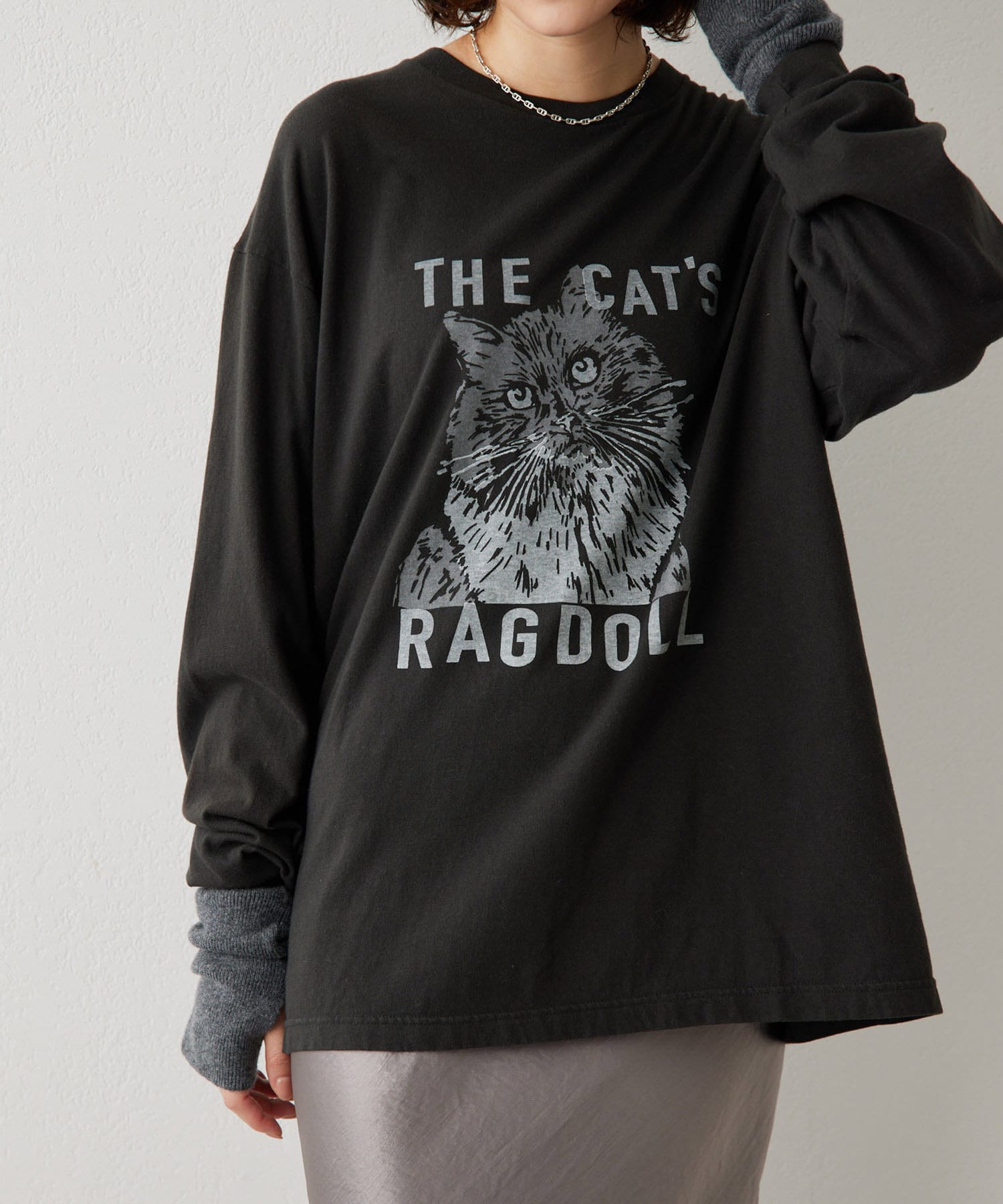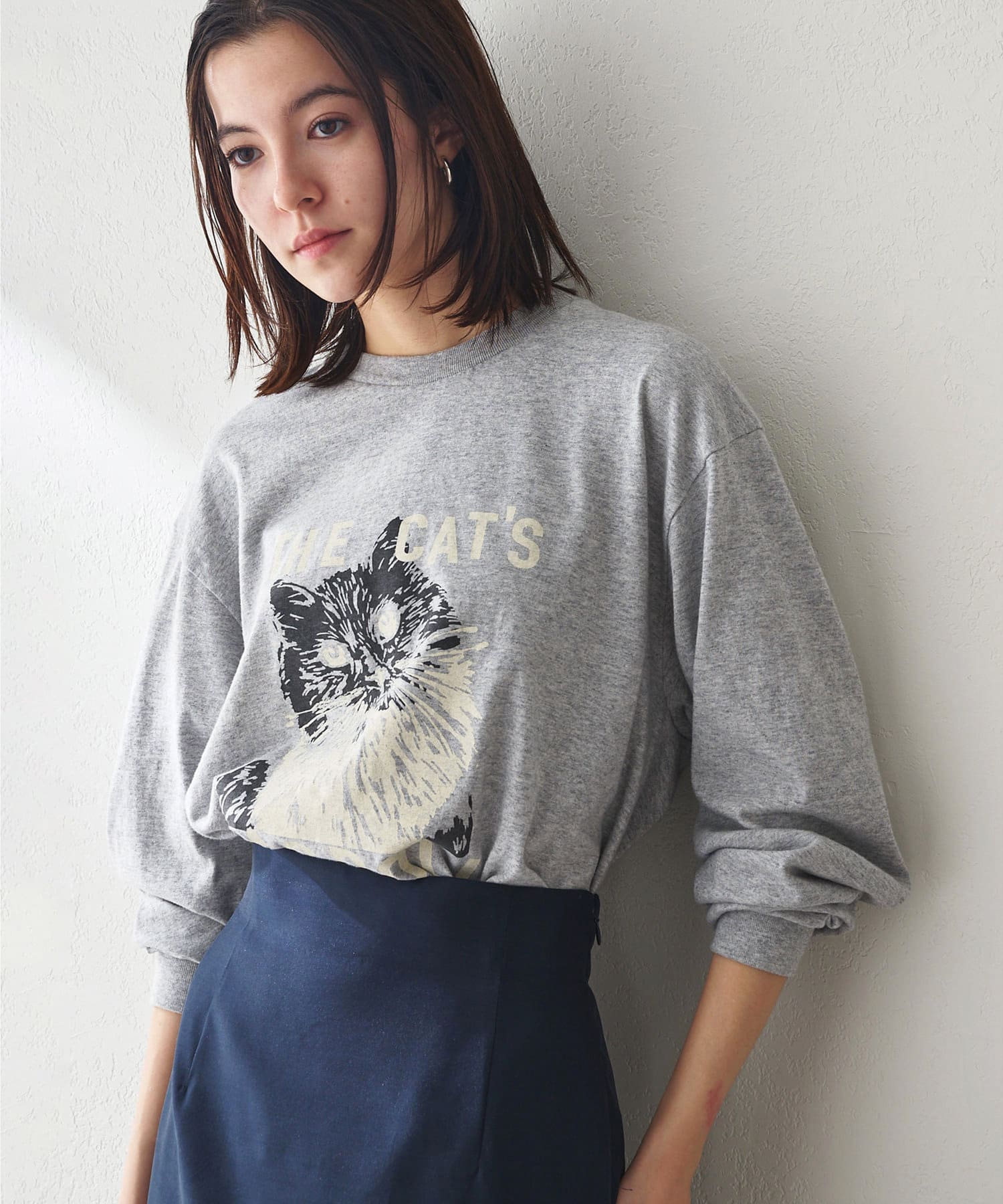 ■キャットプリントが目を惹くロングスリーブTシャツ。