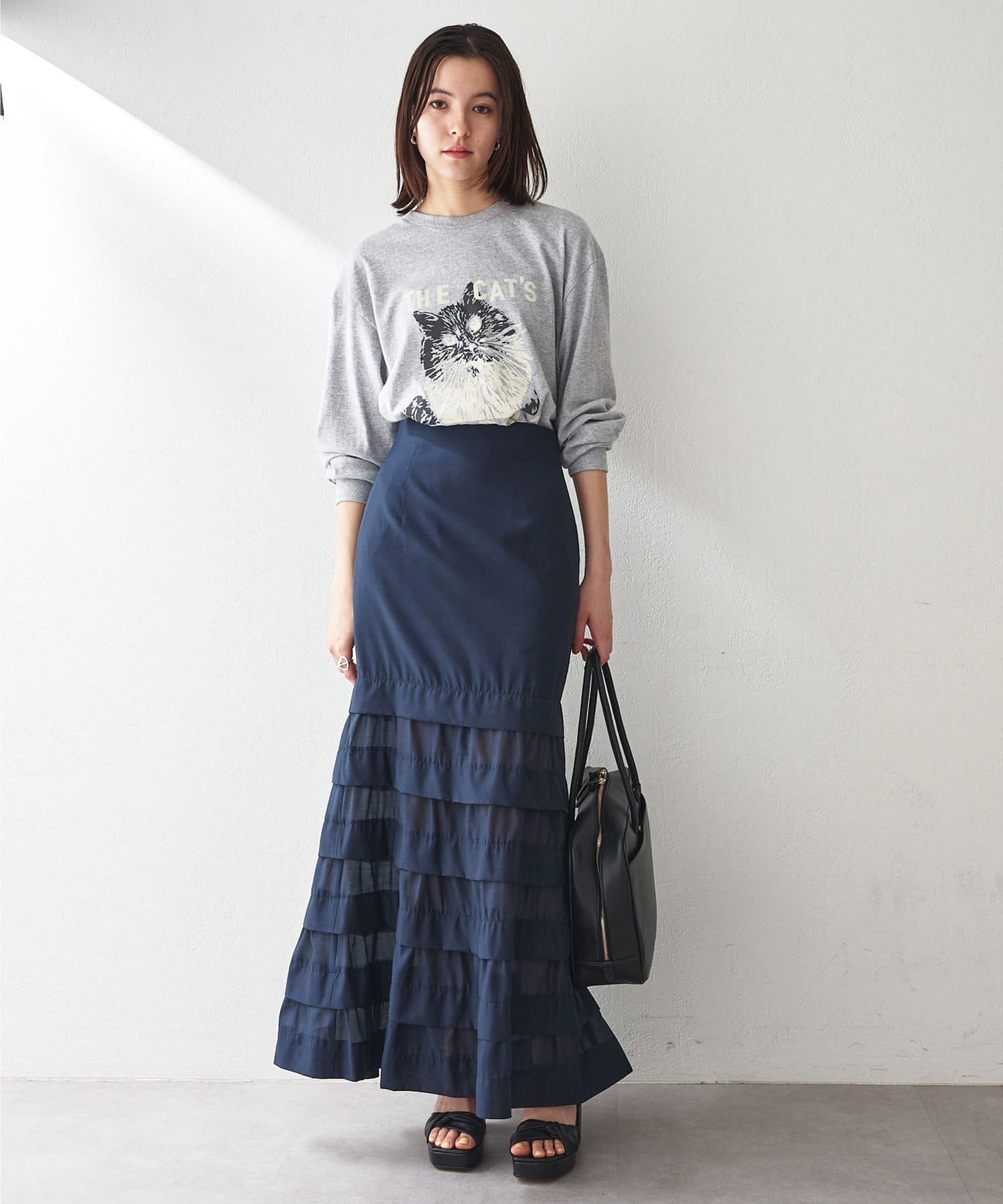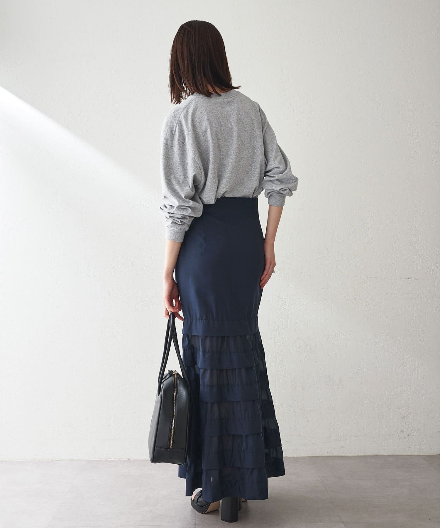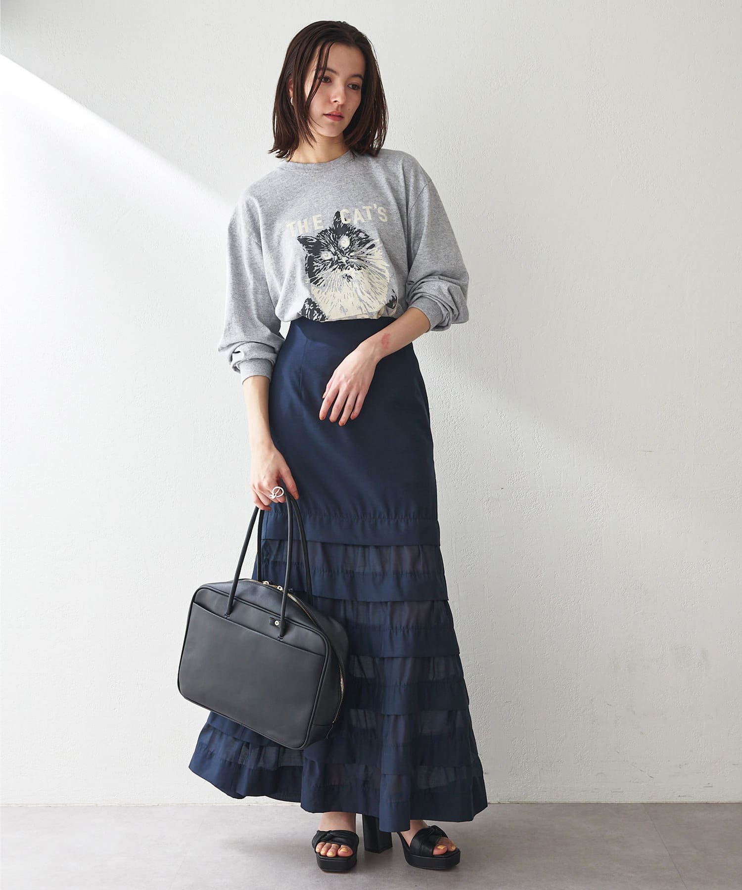■カジュアルなボトムはもちろん、きれいめなボトムやジャケットと合わせて大人っぽさをプラスするスタイルもおすすめ。