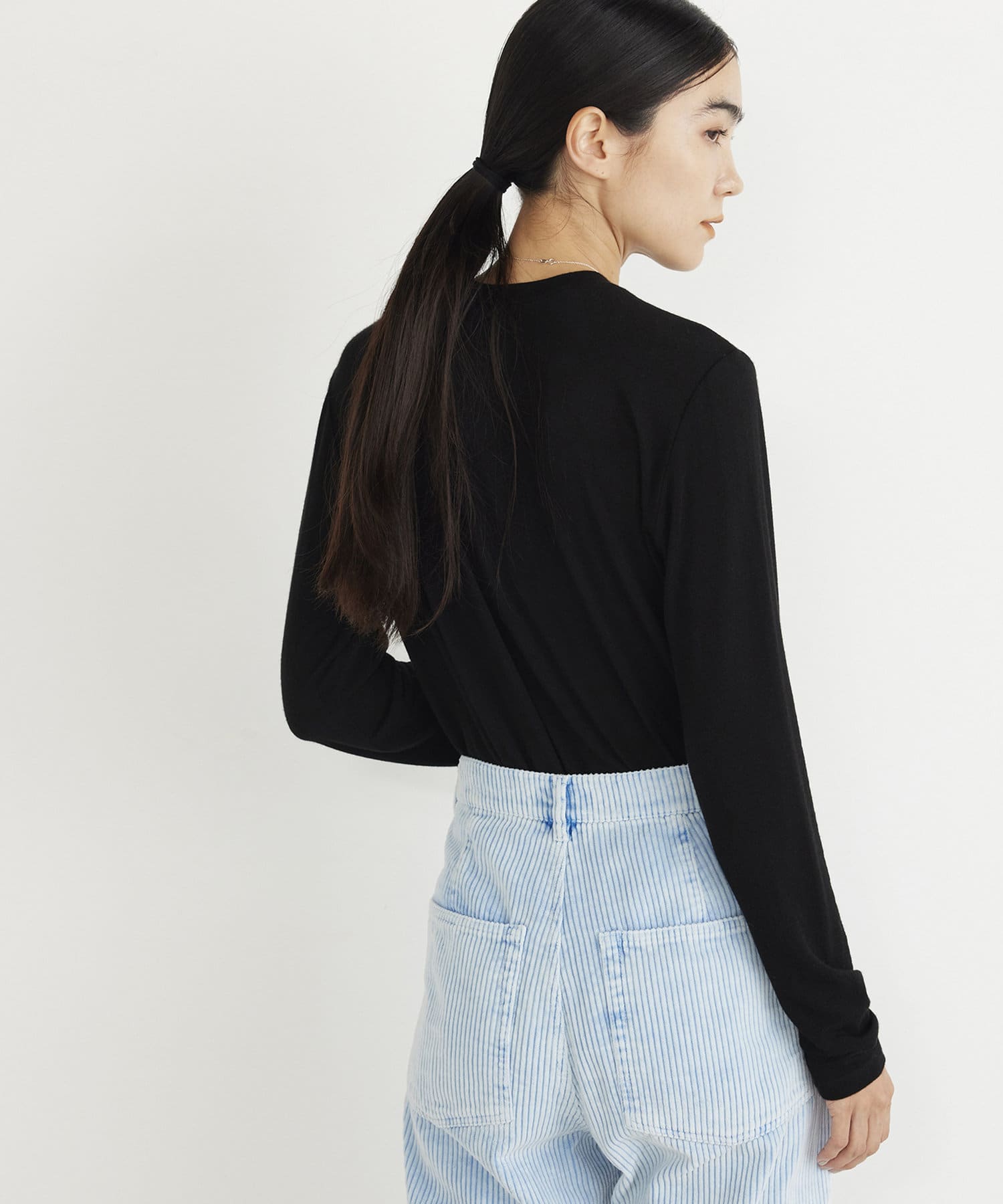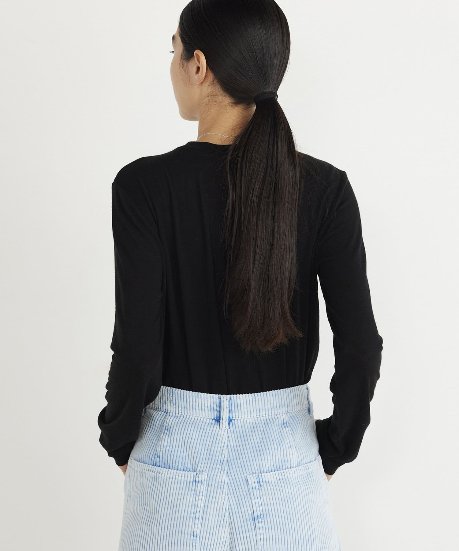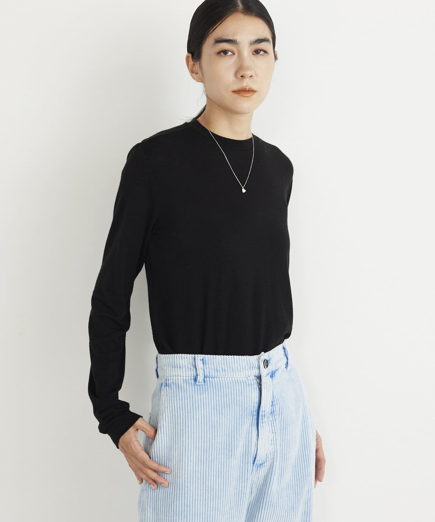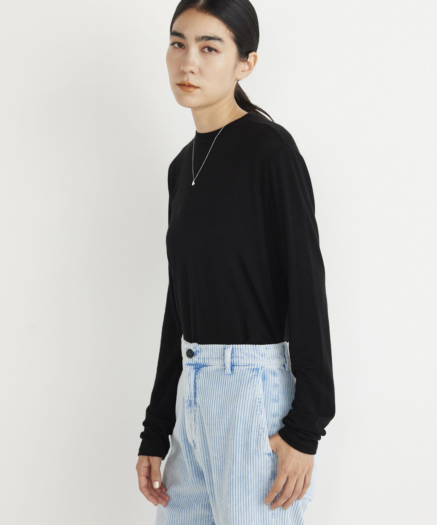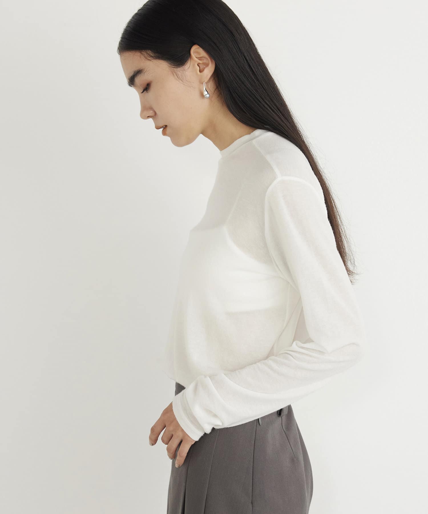 ■カシミヤをブレンドした素材を使用したロングスリーブカットソー。