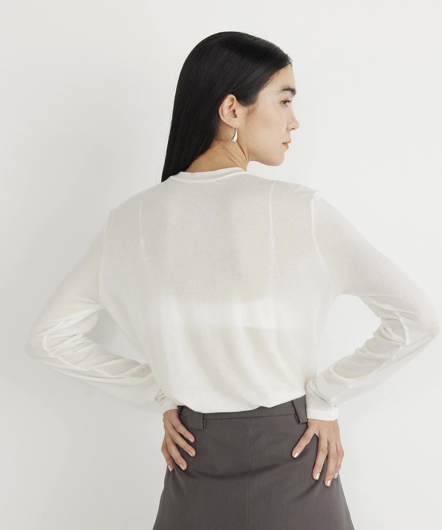 ■絶妙な透け感と身体に程よく馴染む落ち感のある風合いが女性らしさを演出。