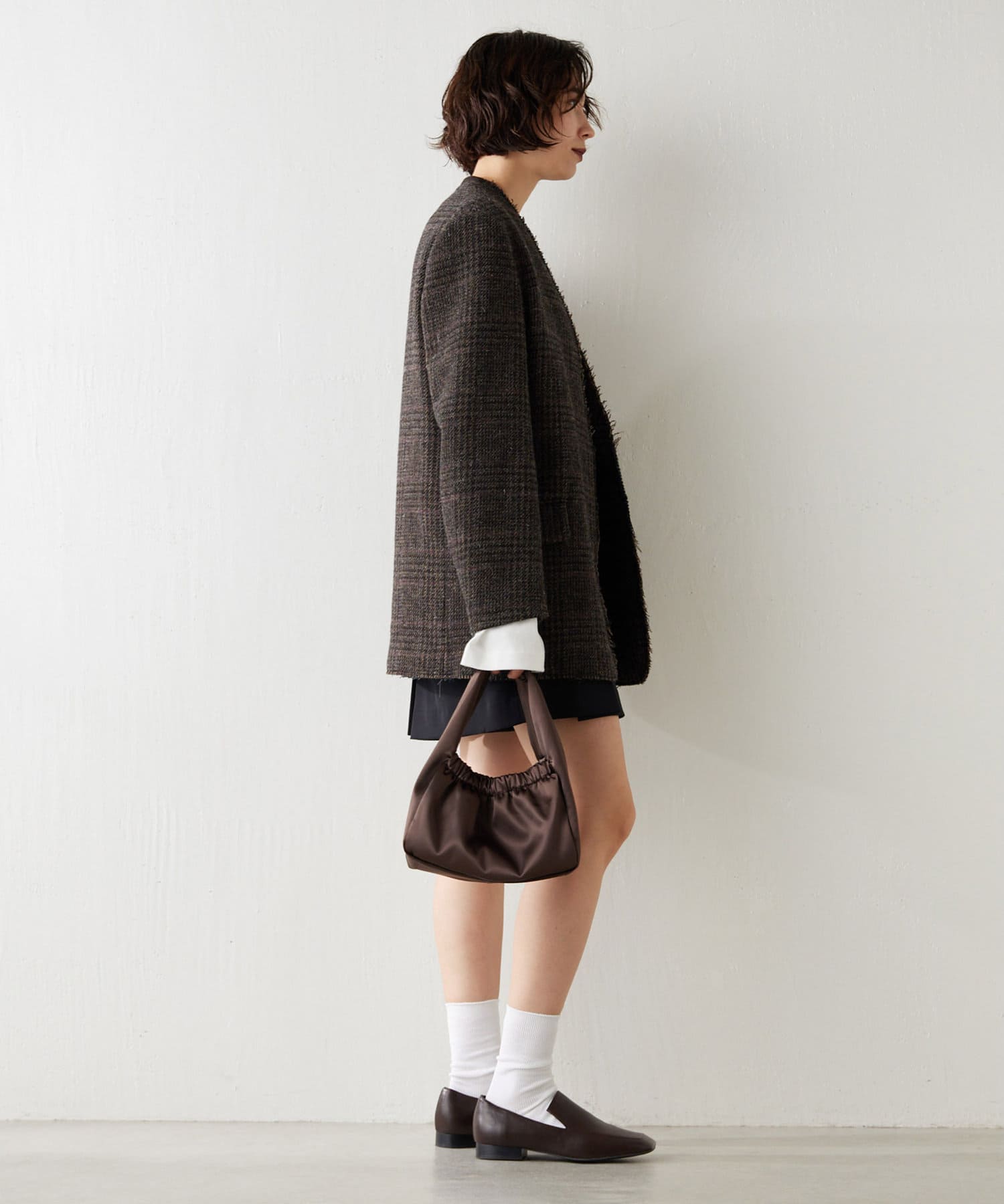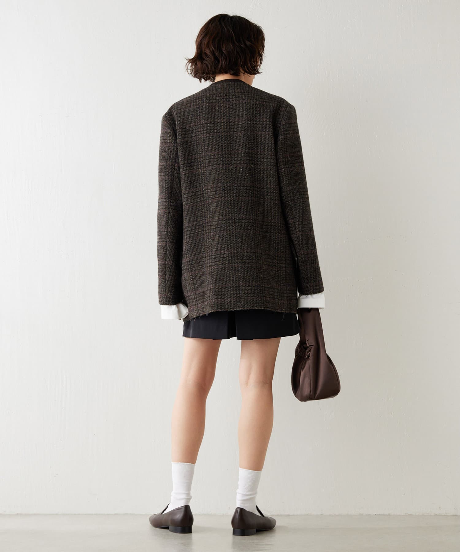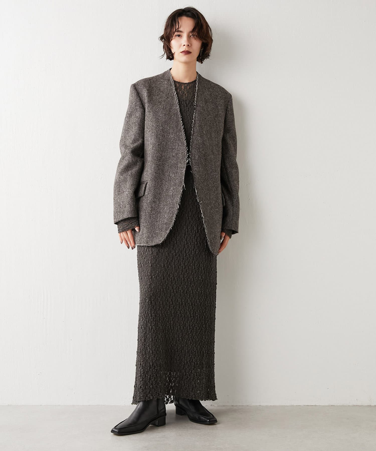 秋冬の着こなしをクラシカルに彩る、大人のノーカラージャケット