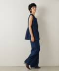 ビスチェのような上半身と、ハイウエストパンツがドッキングしたようなデザインで、とにかくスタイルアップ効果抜群です!ウエストをきゅっと見せてくれ、少しワイドなストレートシルエットがお尻や太ももの張りを目立たせずきれいに見せてくれます。