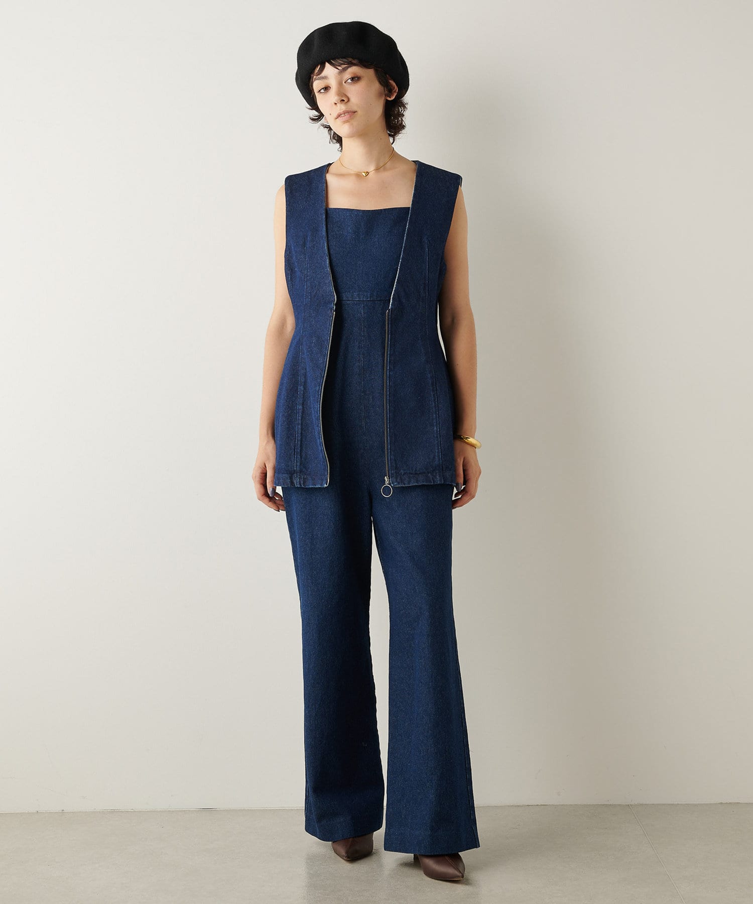 ■同素材のデニムビスチェサロペット(ブランド品番:WGZ1032109A0005)とセットアップでの着用もおすすめ。